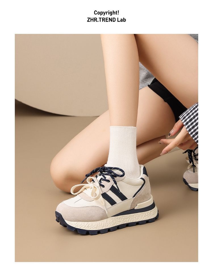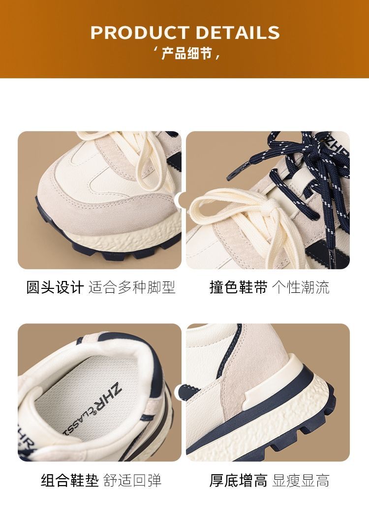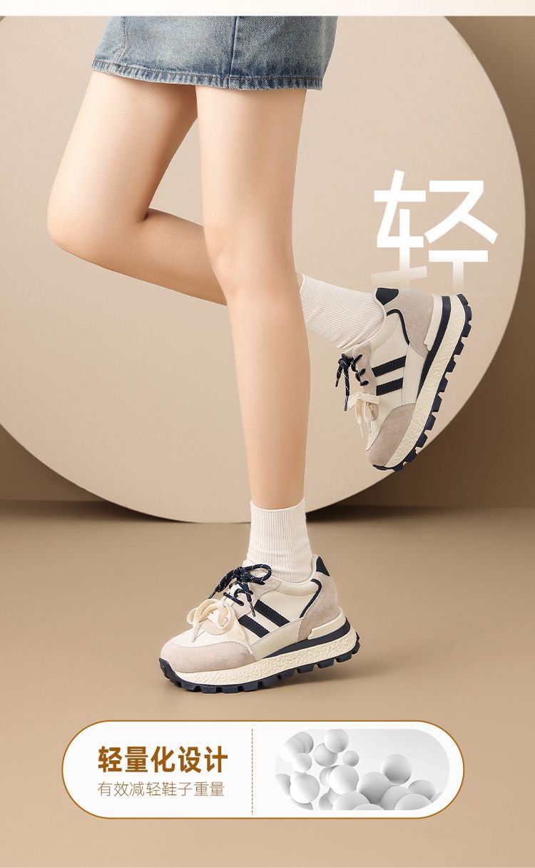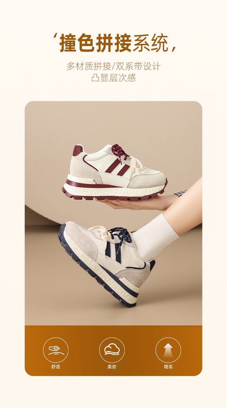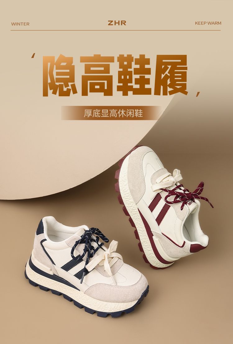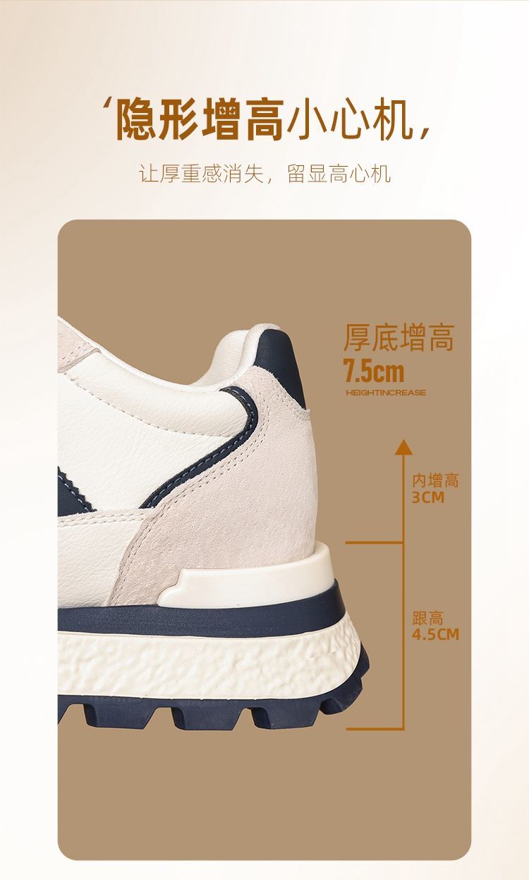 ZHR【7.5CM】隐形内增高二层猪皮真皮小白鞋2026春季新款德训鞋女