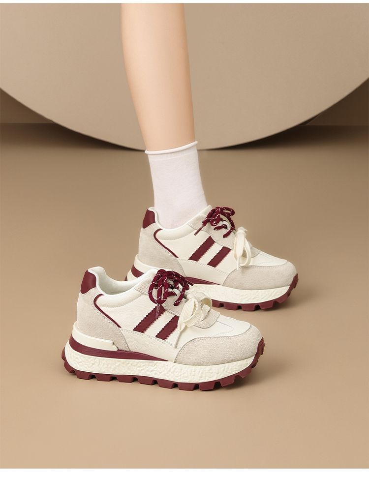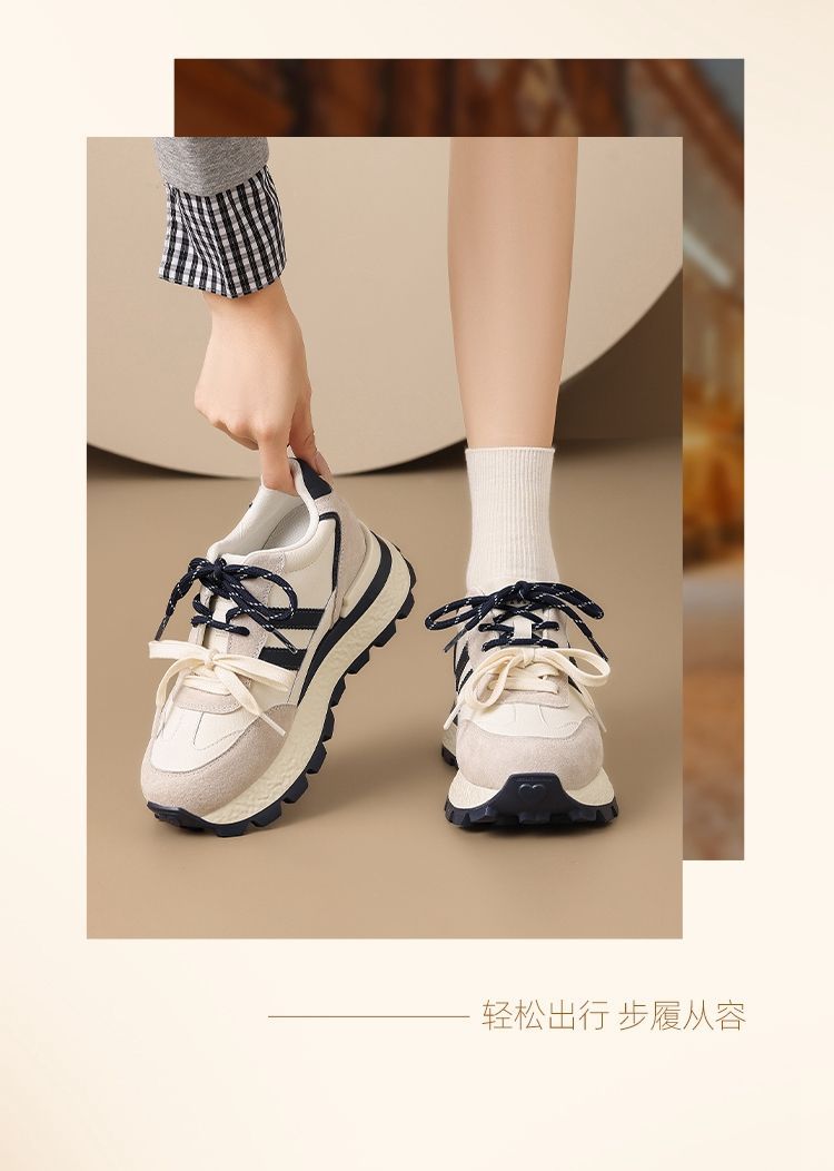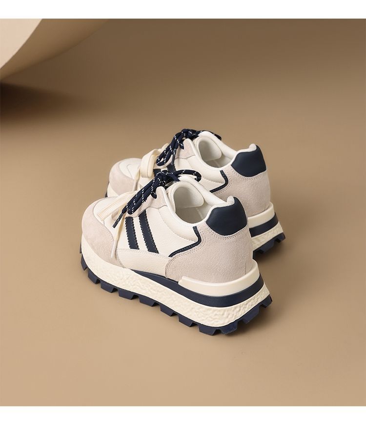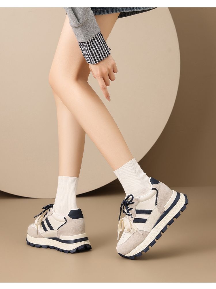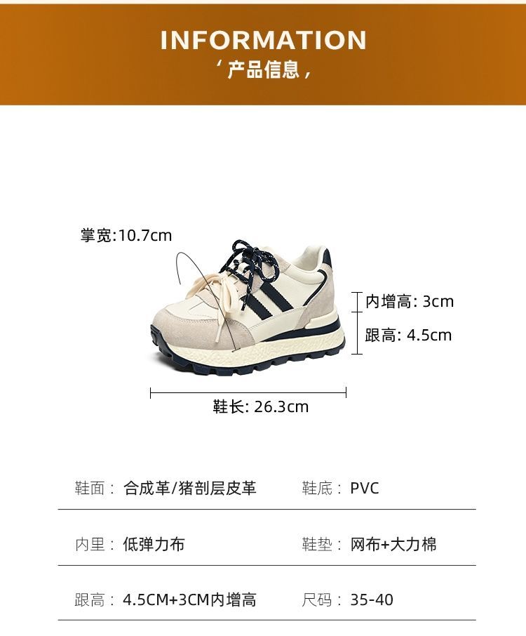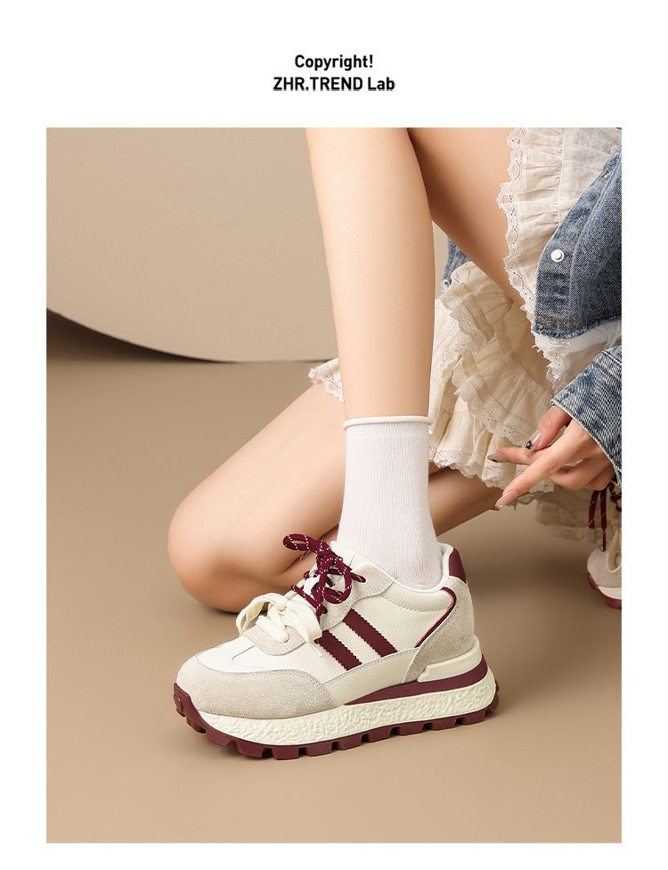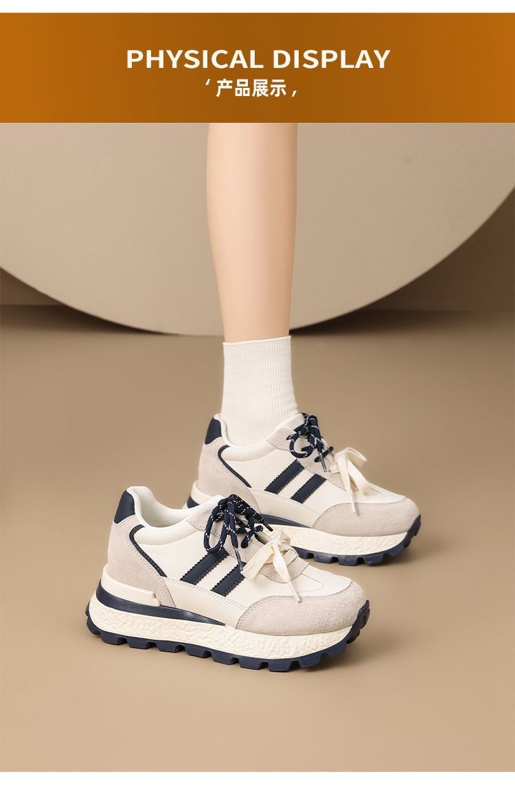 ZHR【7.5CM】隐形内增高二层猪皮真皮小白鞋2026春季新款德训鞋女