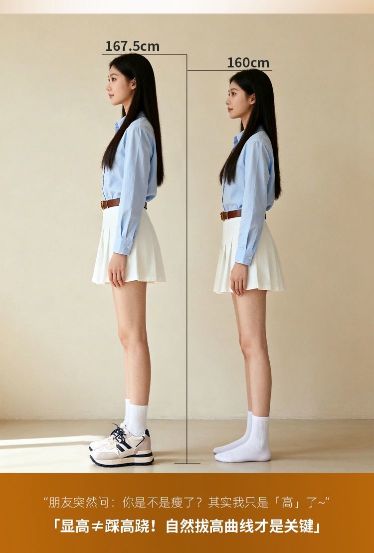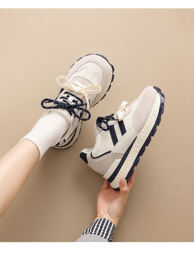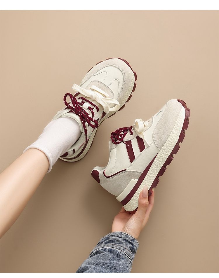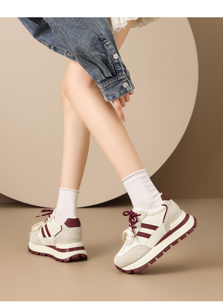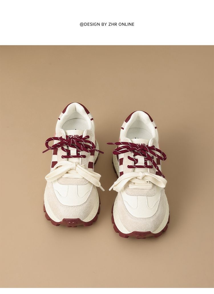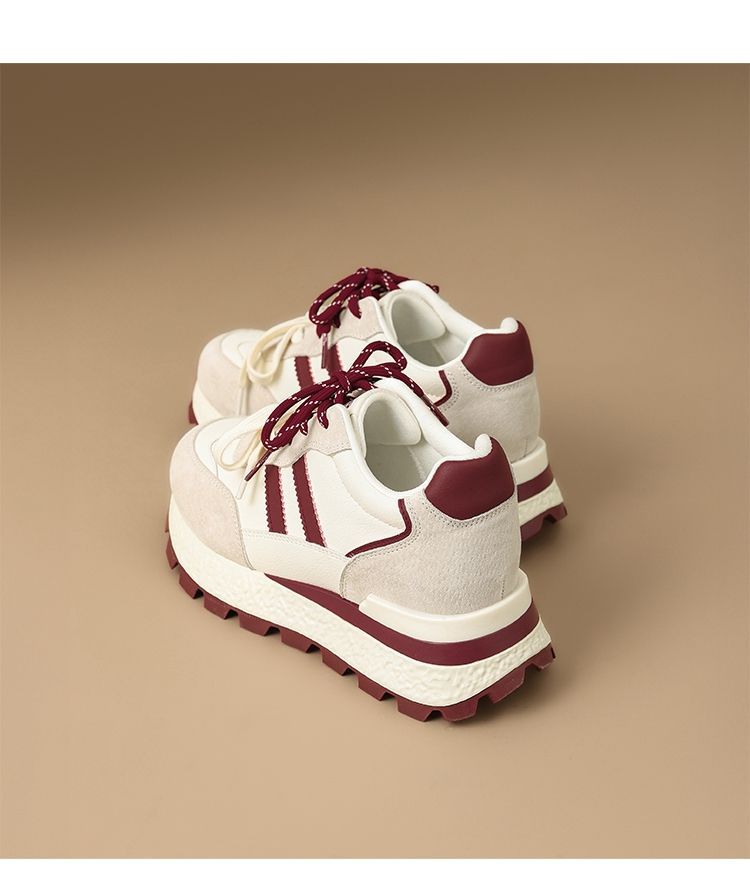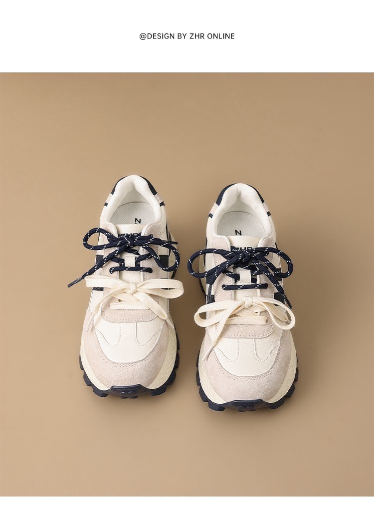 ZHR【7.5CM】隐形内增高二层猪皮真皮小白鞋2026春季新款德训鞋女