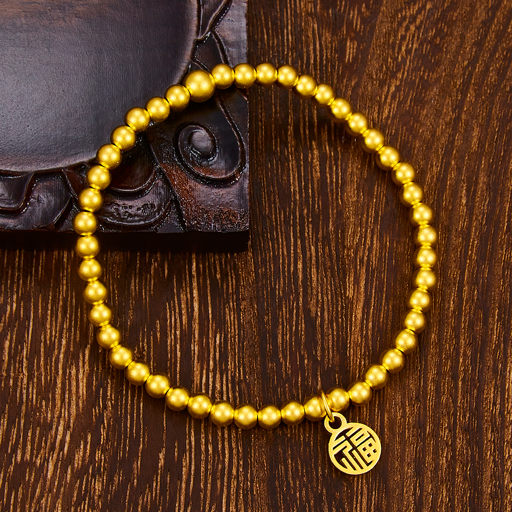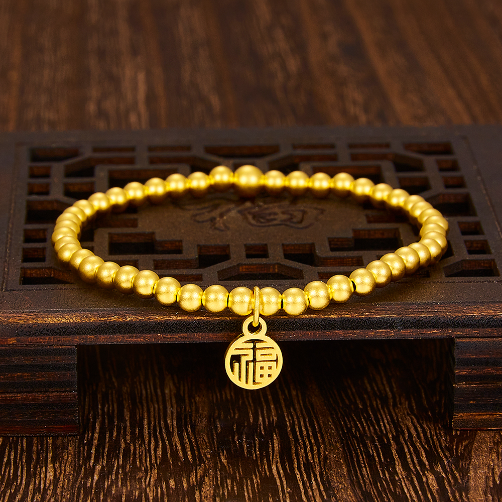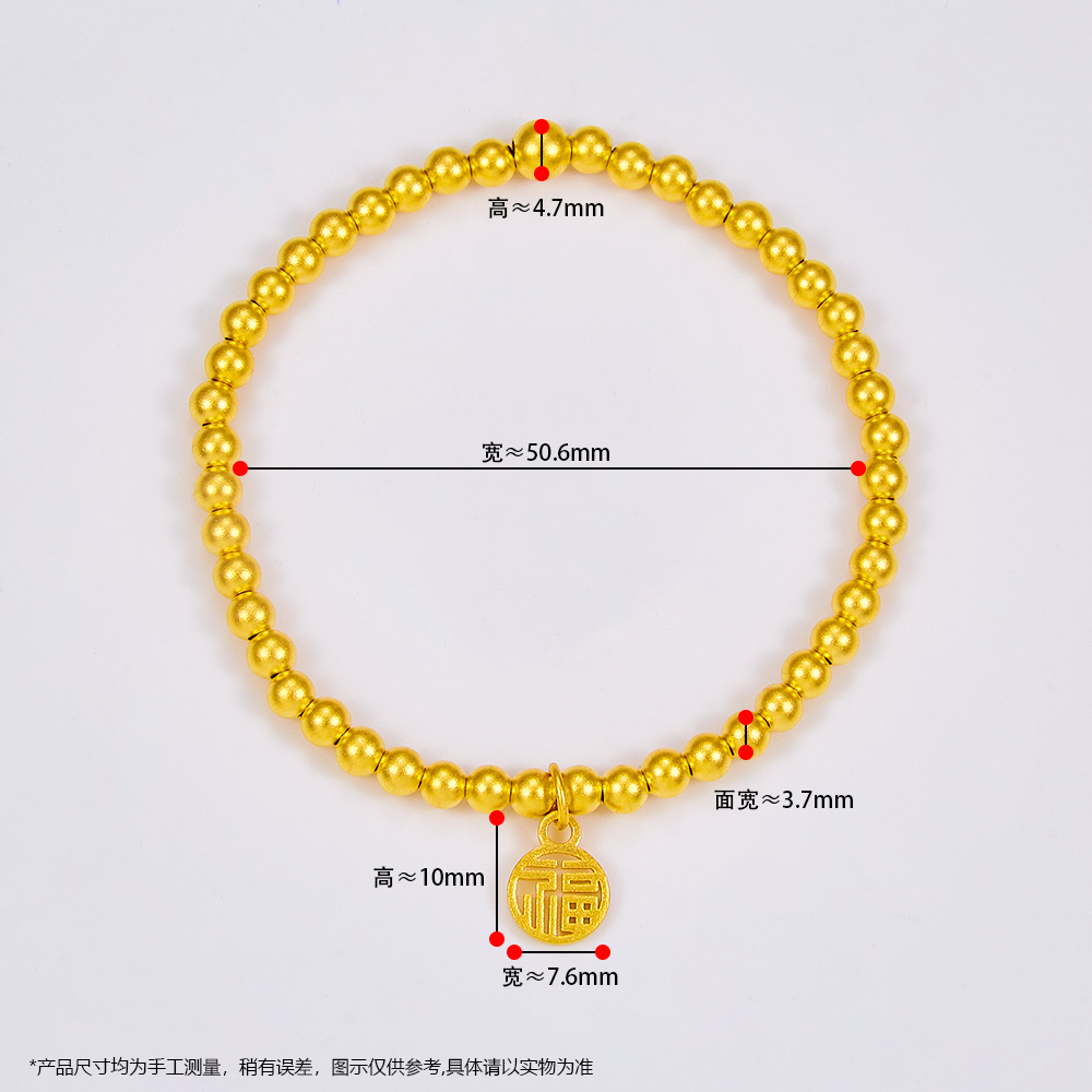 【限时克减150元】足金999.9 古法福字手串福牌手串圆珠手串(大珠约4.7mm,小珠约3.7mm,周长约16-17cm)(GFSCW00016)补差价)预售产品下单后不退款不退货不换货不补差价