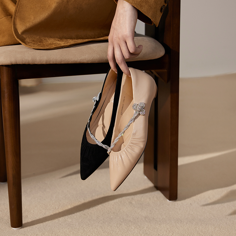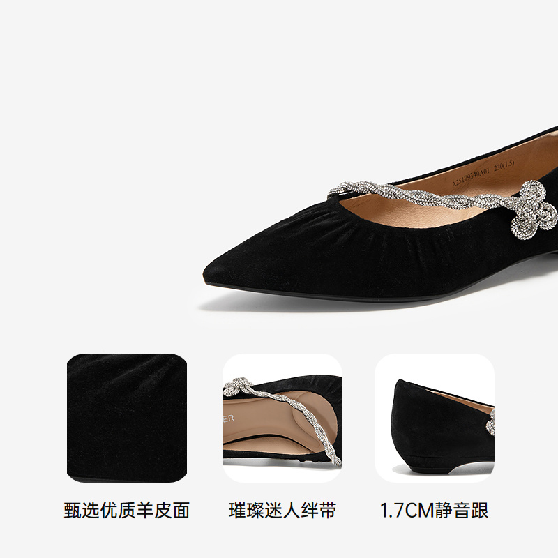 千百度CºBANNER2025新款羊皮低跟玛丽珍鞋A25179340