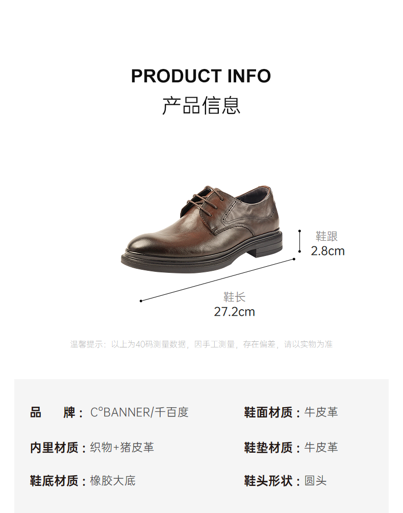 千百度2026春季男鞋防滑耐磨橡胶大底 商务正装A26171202