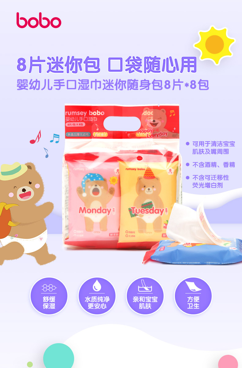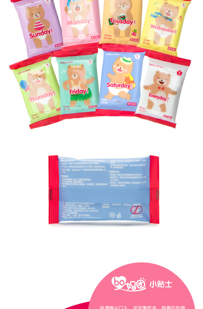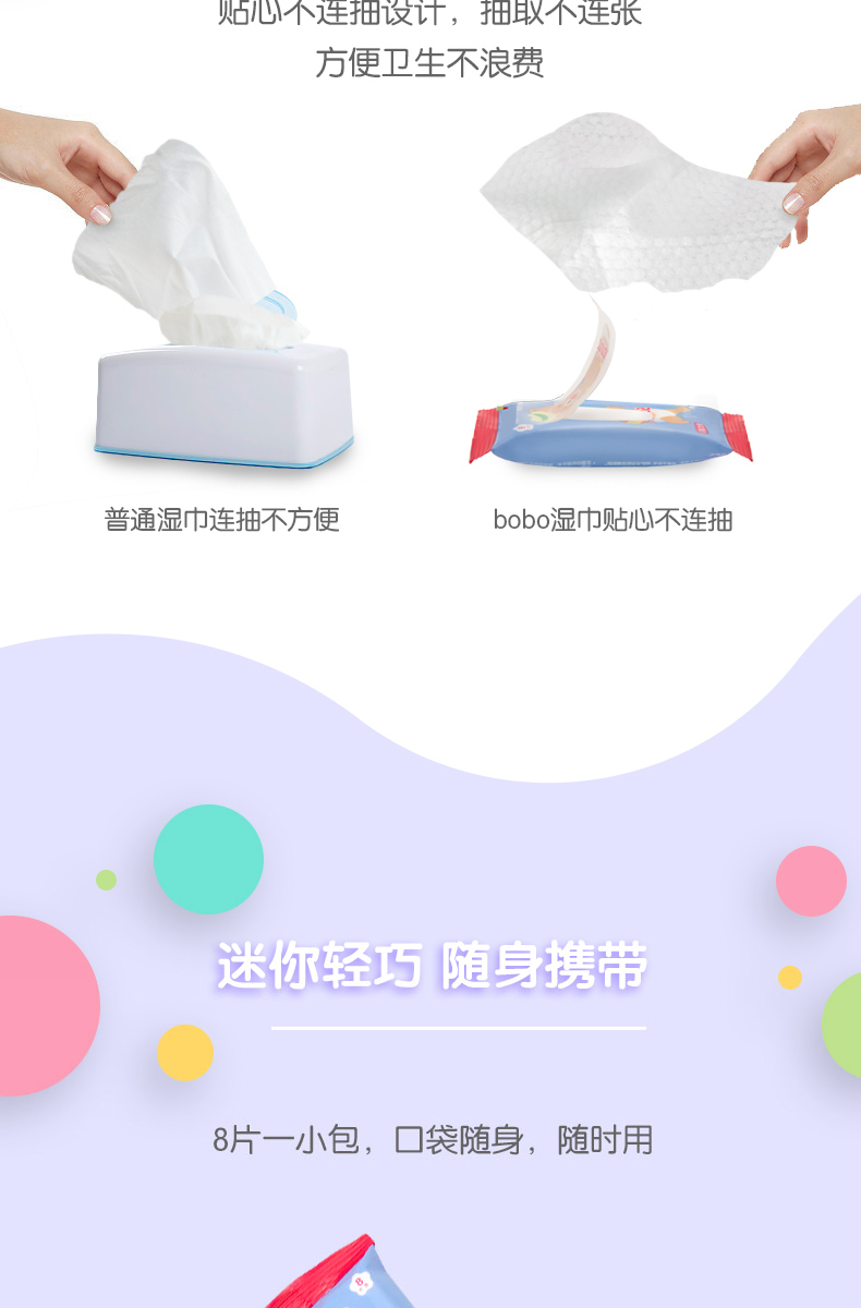 (捡漏)26.11月到期 bobo手口湿巾婴儿8抽*8包*3提共24包