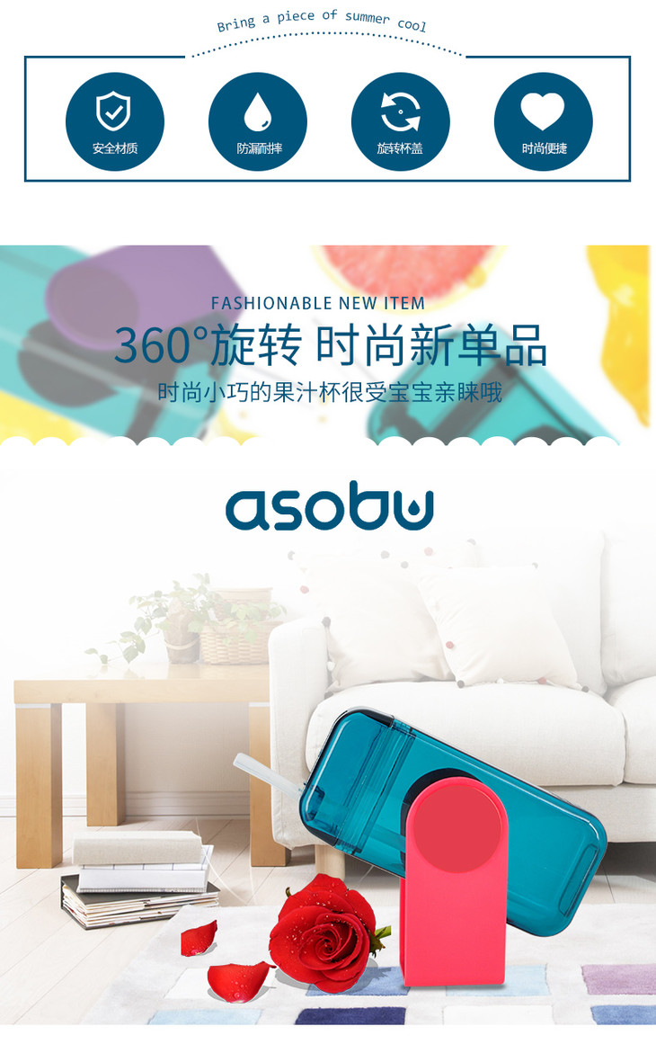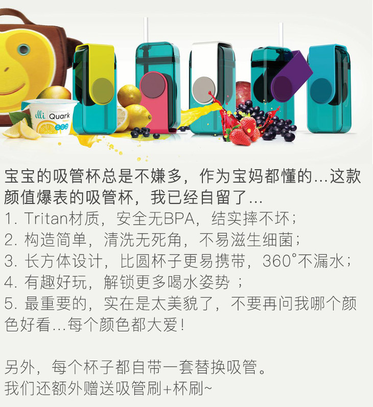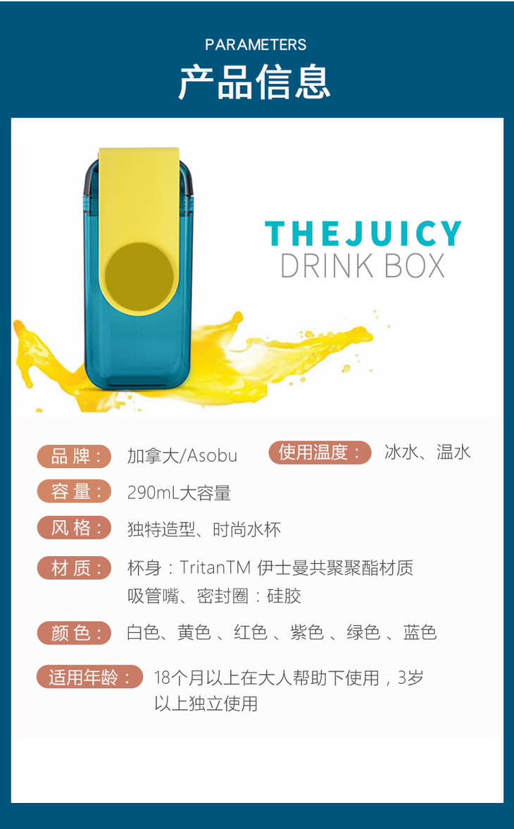 加拿大进口Asobu儿童防漏防摔吸管杯290ml宝宝果汁杯喝水杯