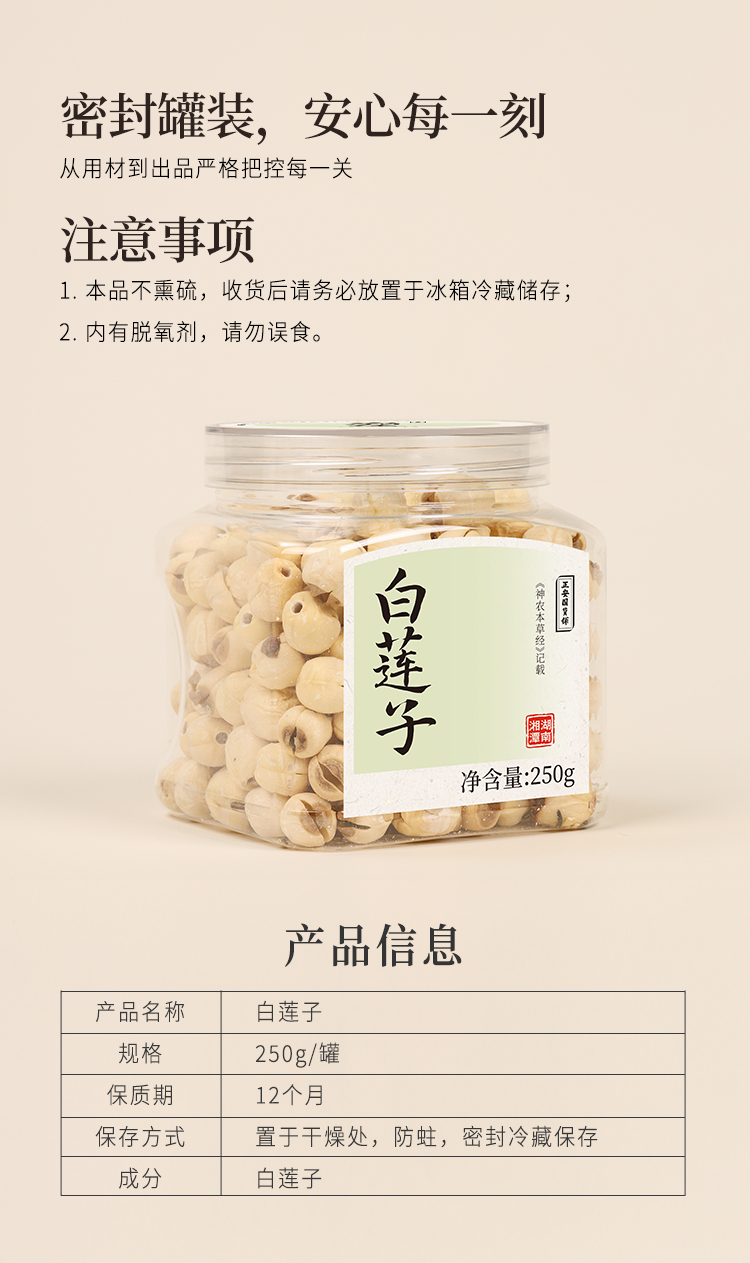 正安原材·湖南湘潭白莲子 应季采挖去绿芯 粒大饱满 口感粉糯清甜 250g/罐【冷藏保存】