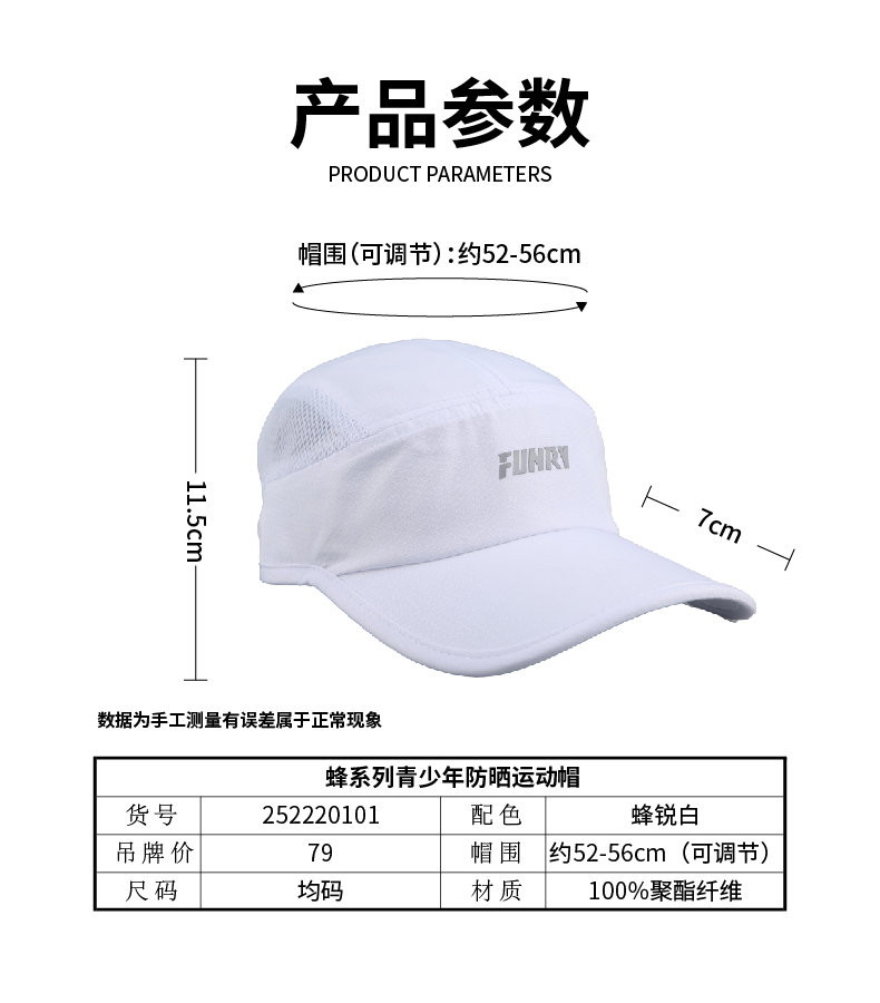 【UPF50+】蜂锐儿童防晒帽户外跑步健身速干鸭舌帽青少年