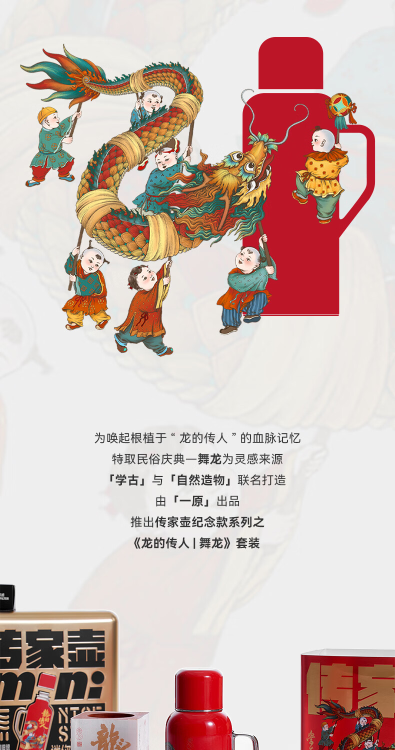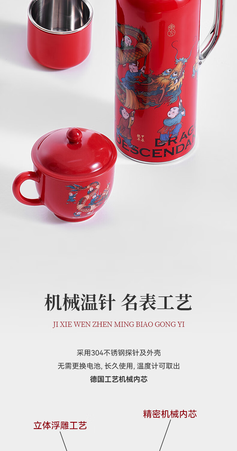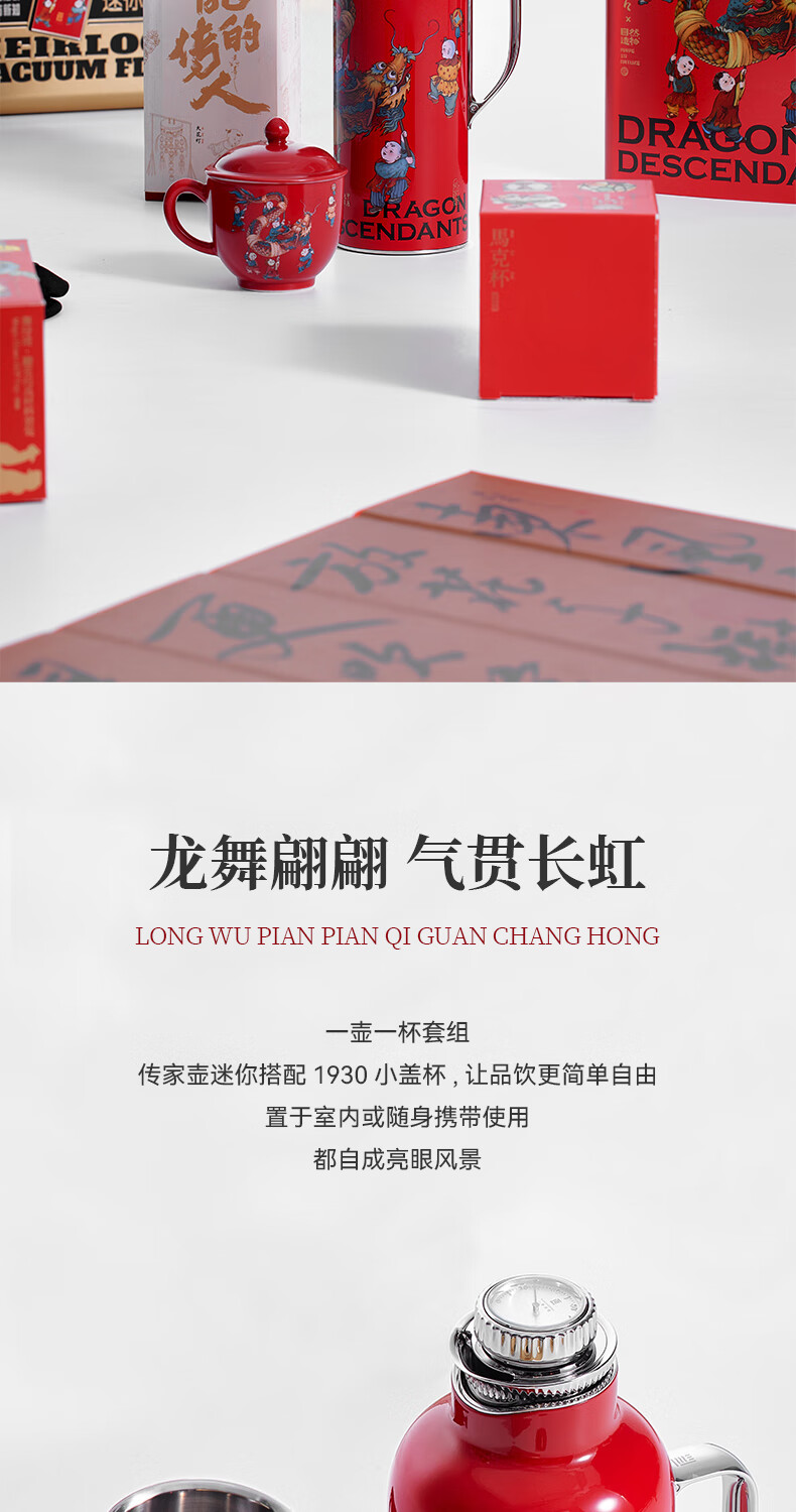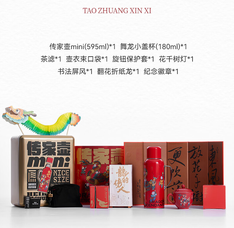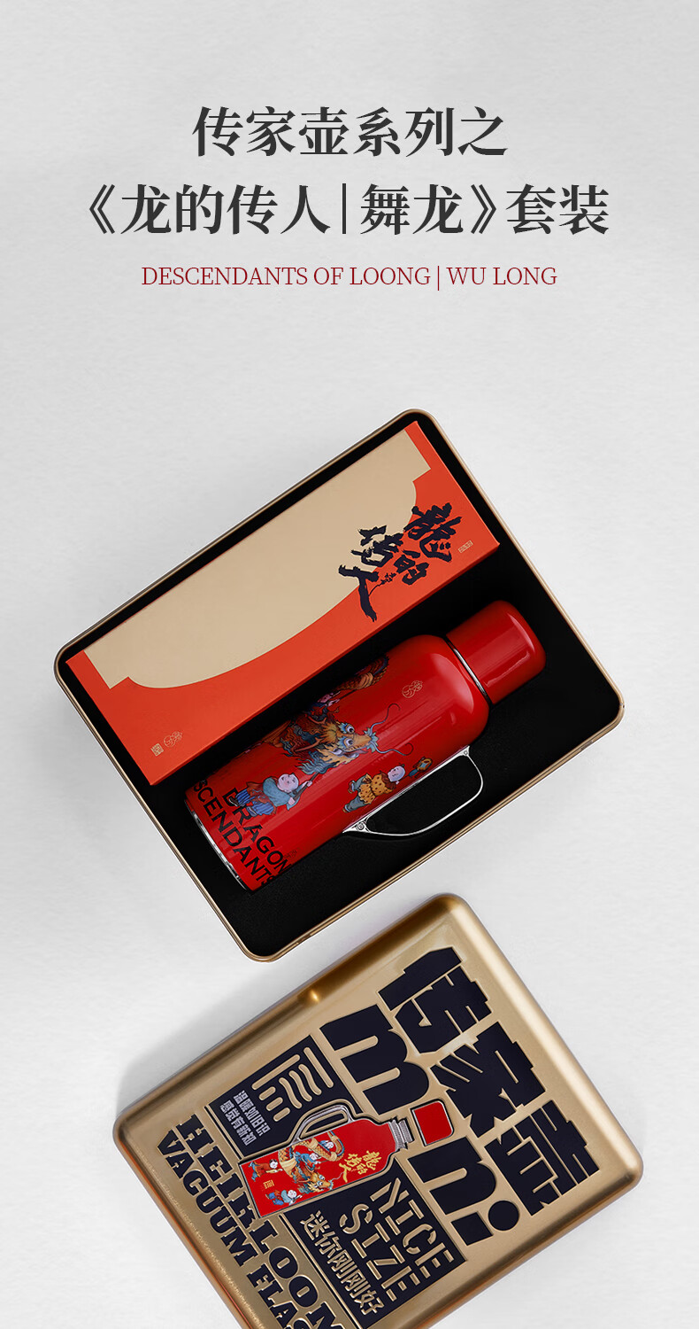 学古一原传家壶迷你舞龙·龙年限定礼盒 舞龙保温壶595ml 红色 595ml