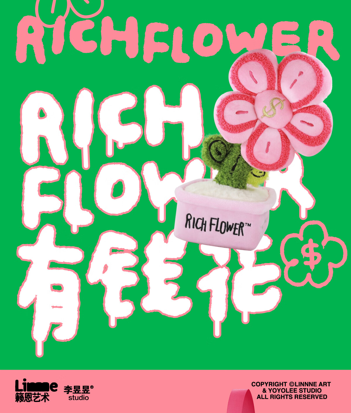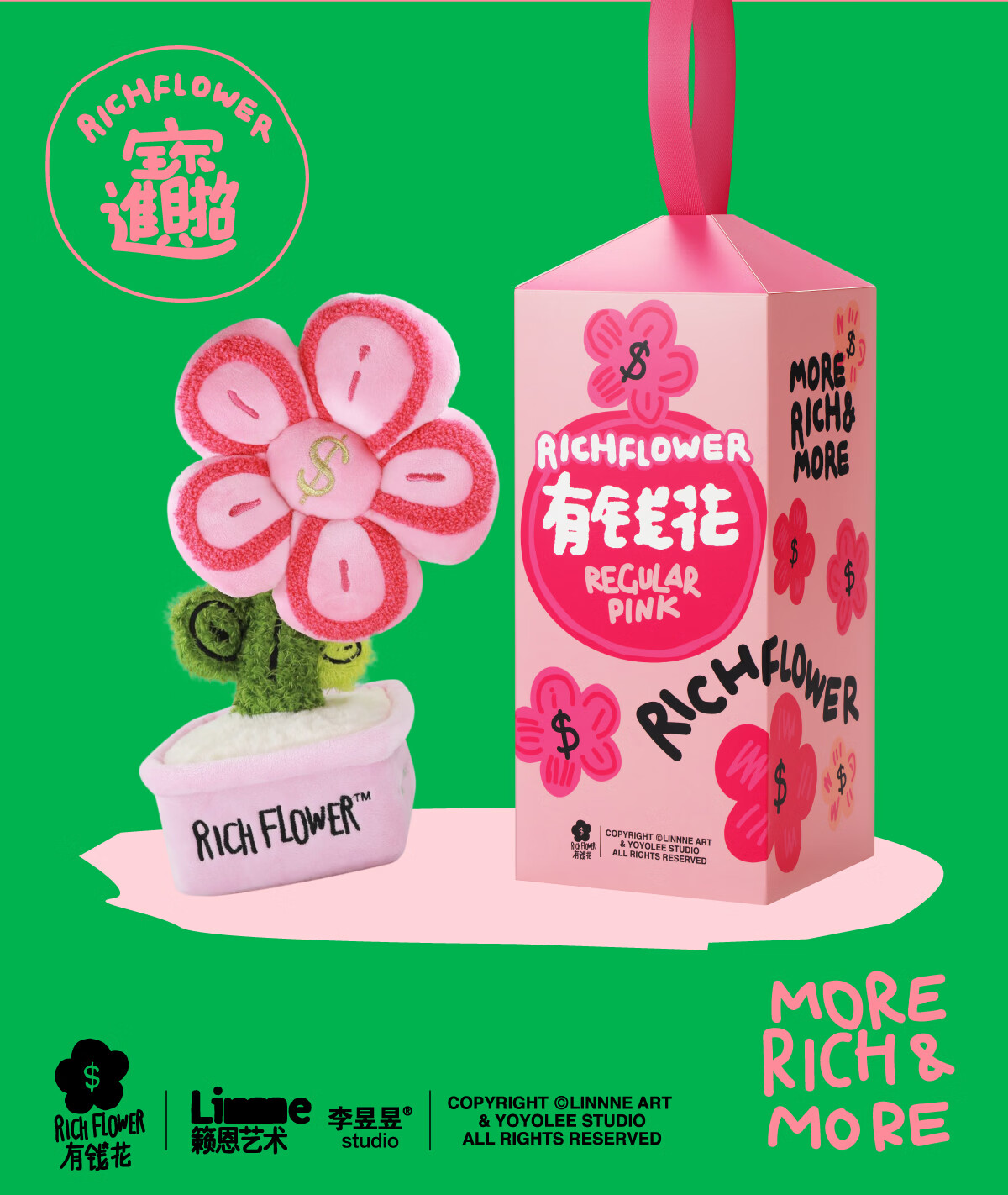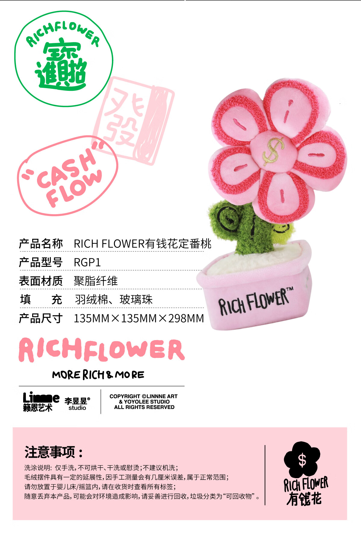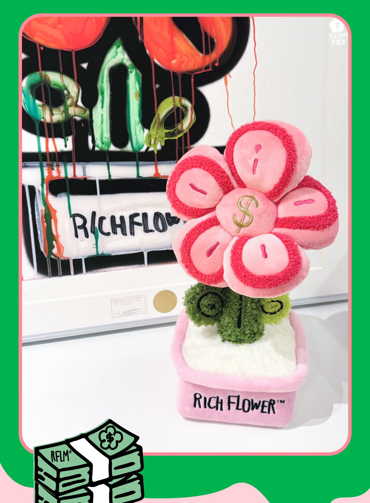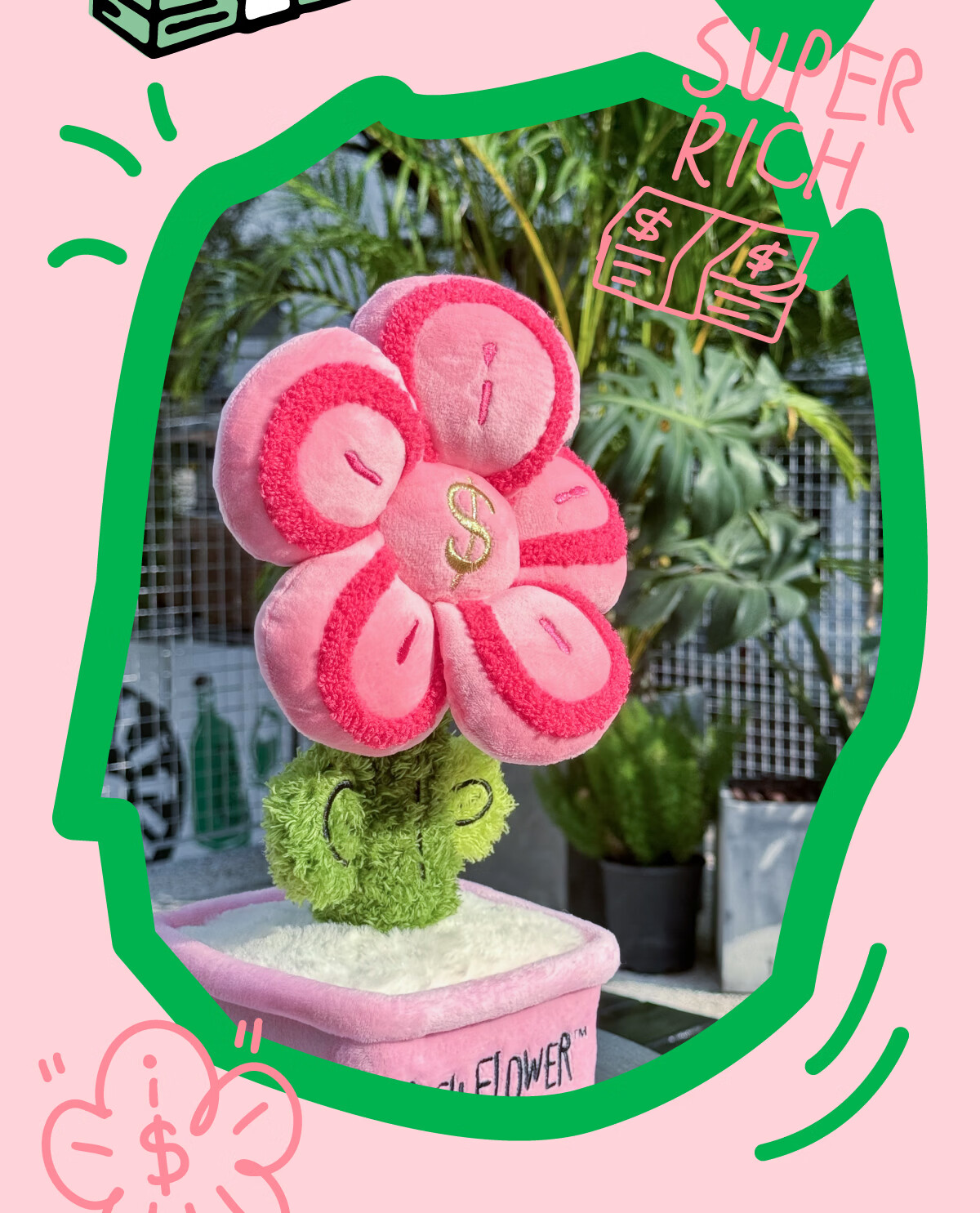 RICH FLOWER 有钱花 毛绒摆件 30CM 粉色 毛绒桌面摆件客厅装饰生日新年礼物送礼礼品