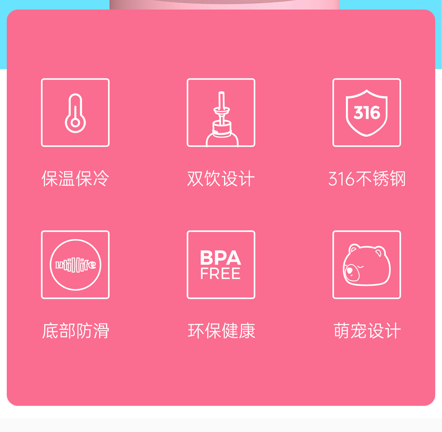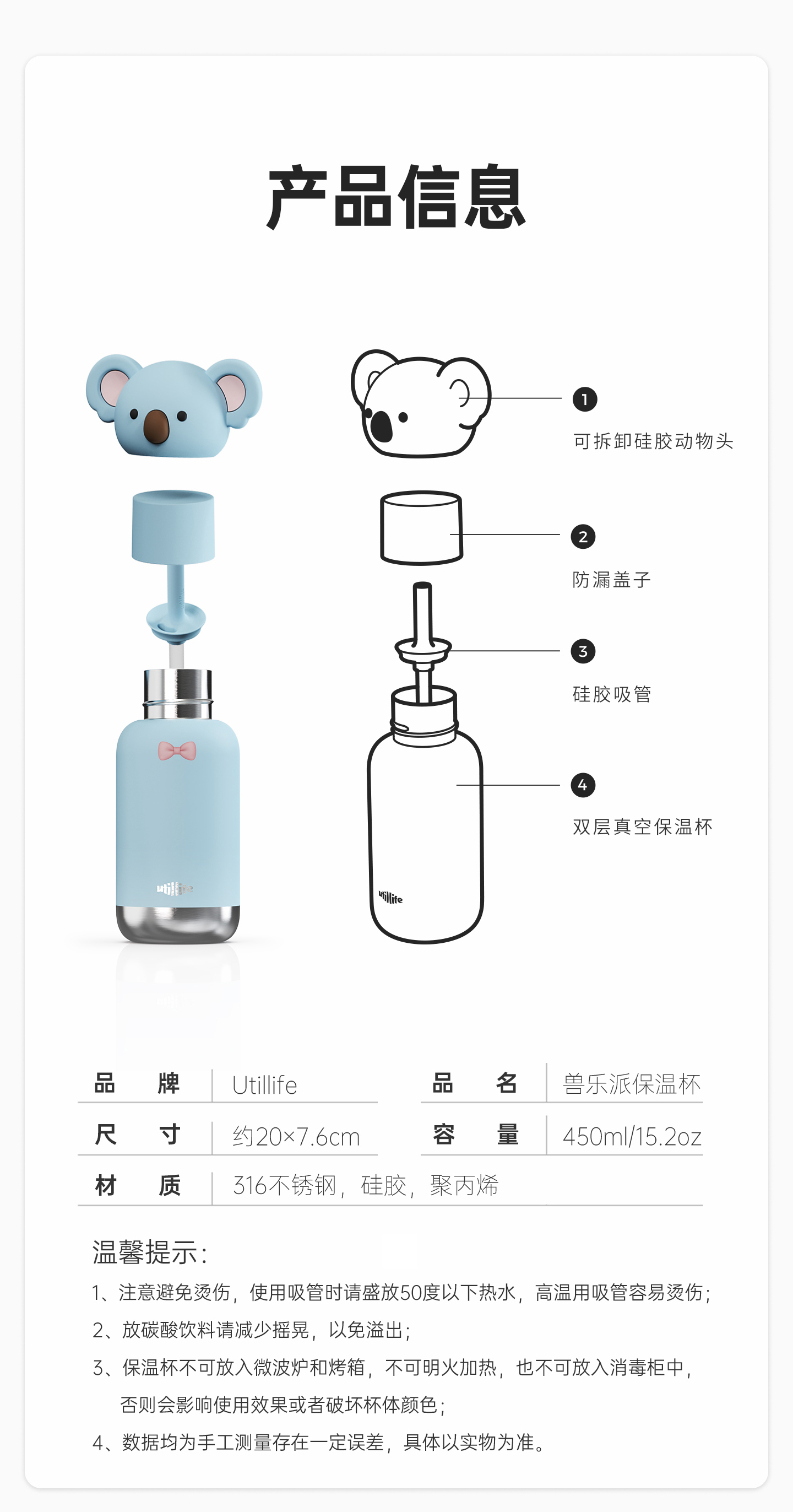 Utillife/兽乐派 保温杯450ml不锈钢女动物卡通水杯高颜值