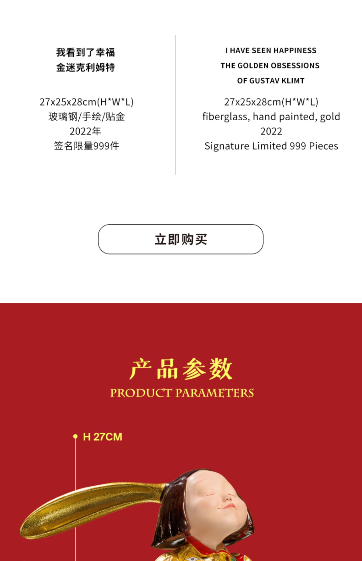 稀奇艺术 《我看到了幸福》金迷克里姆特 雕塑