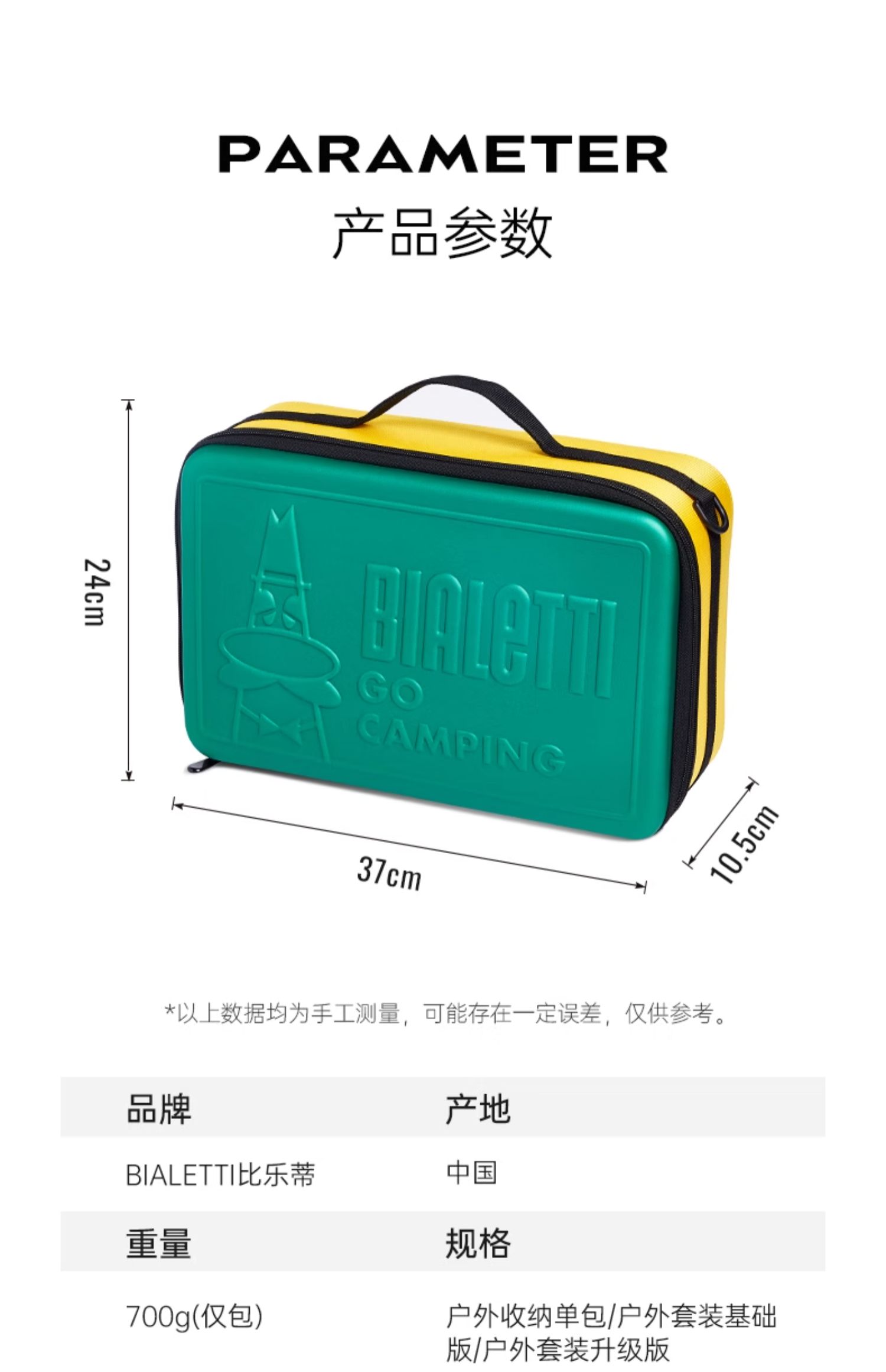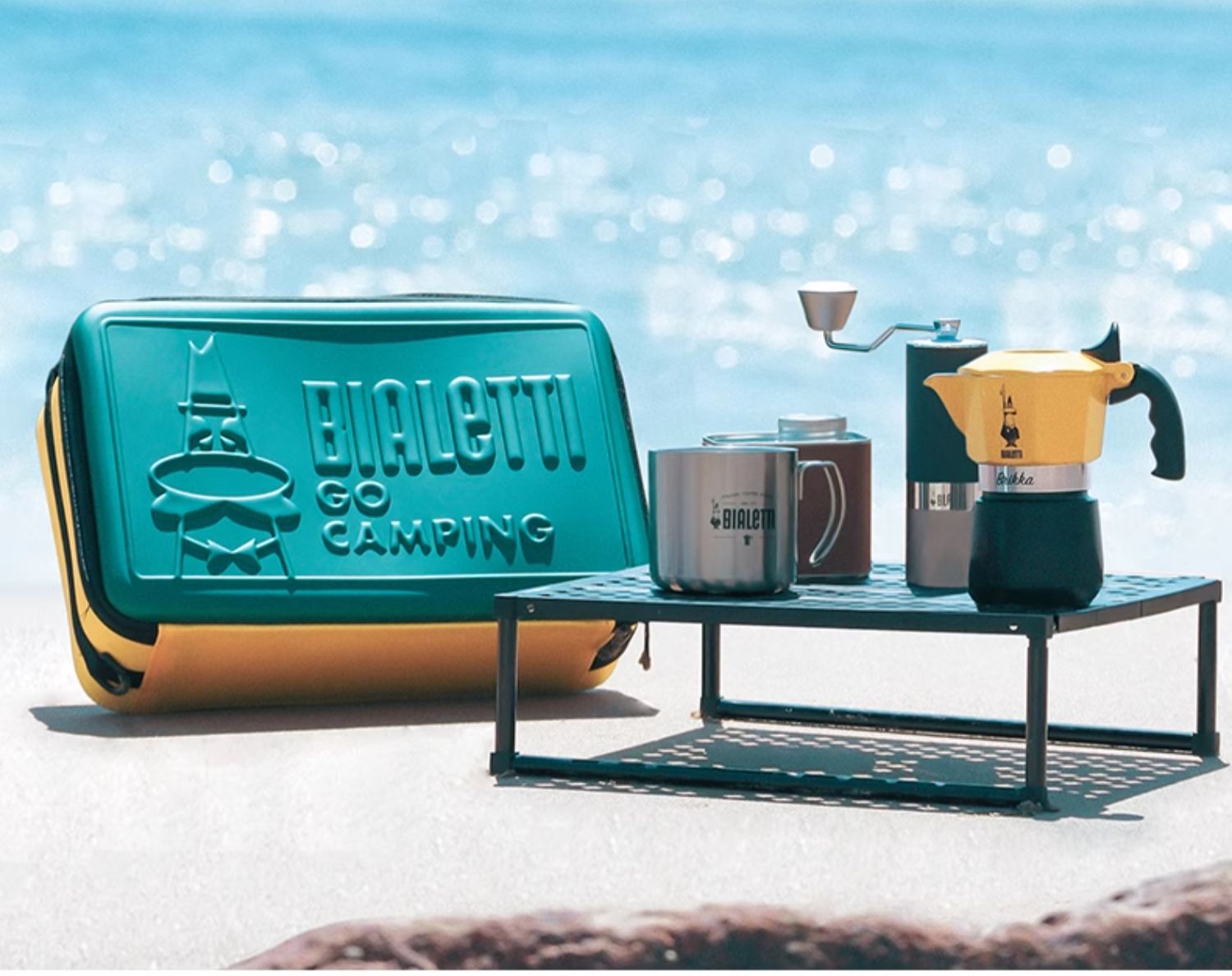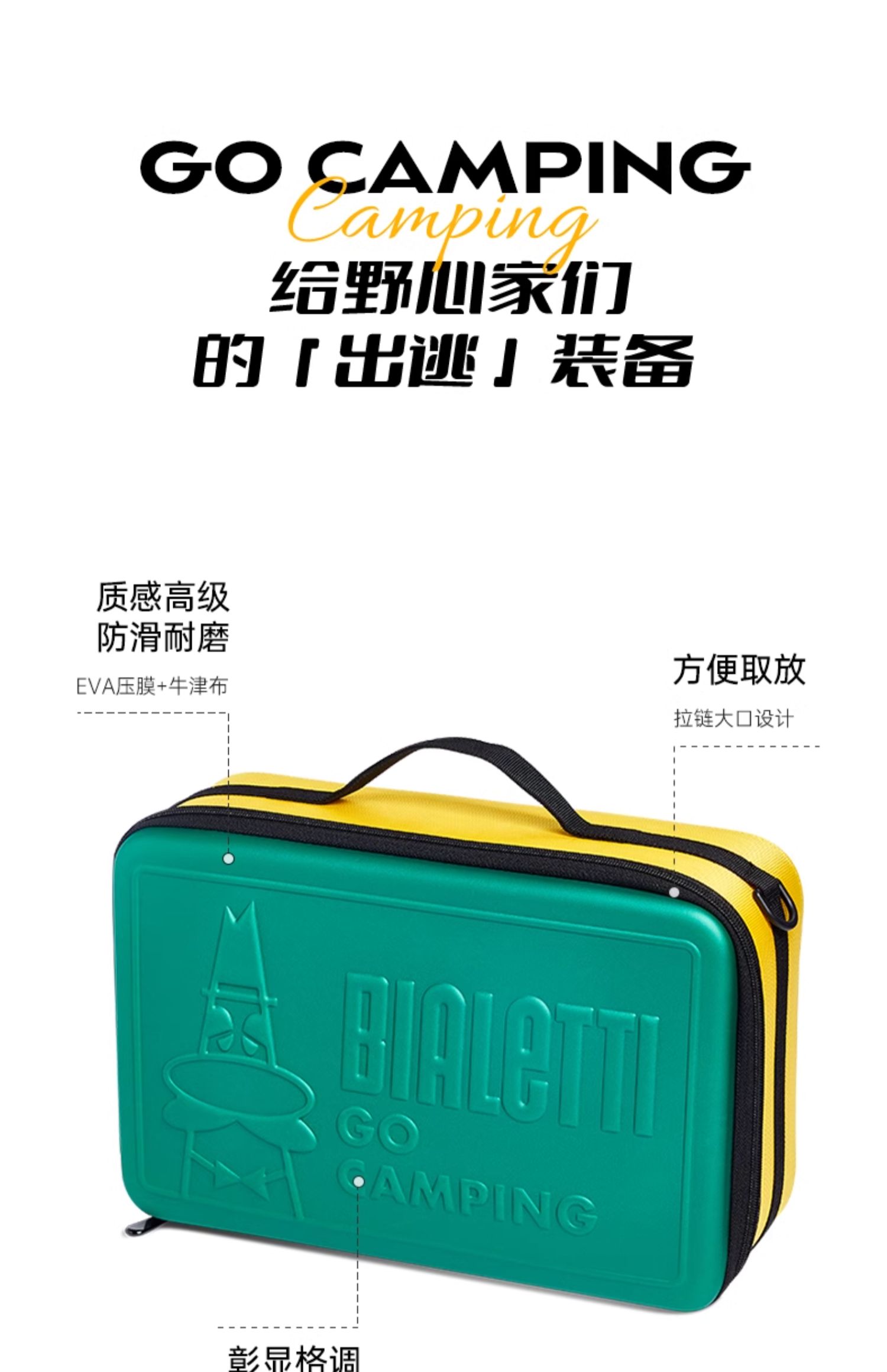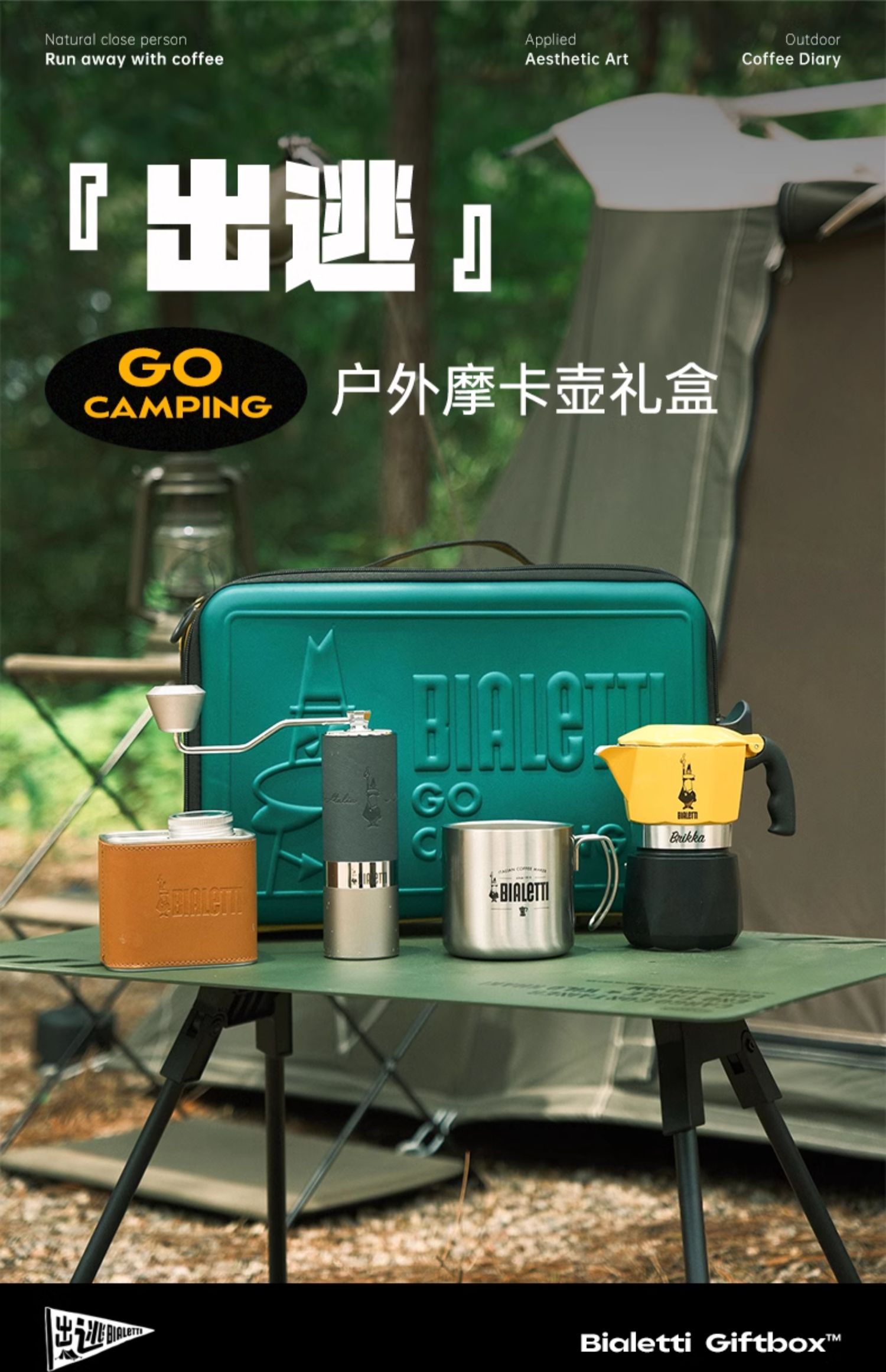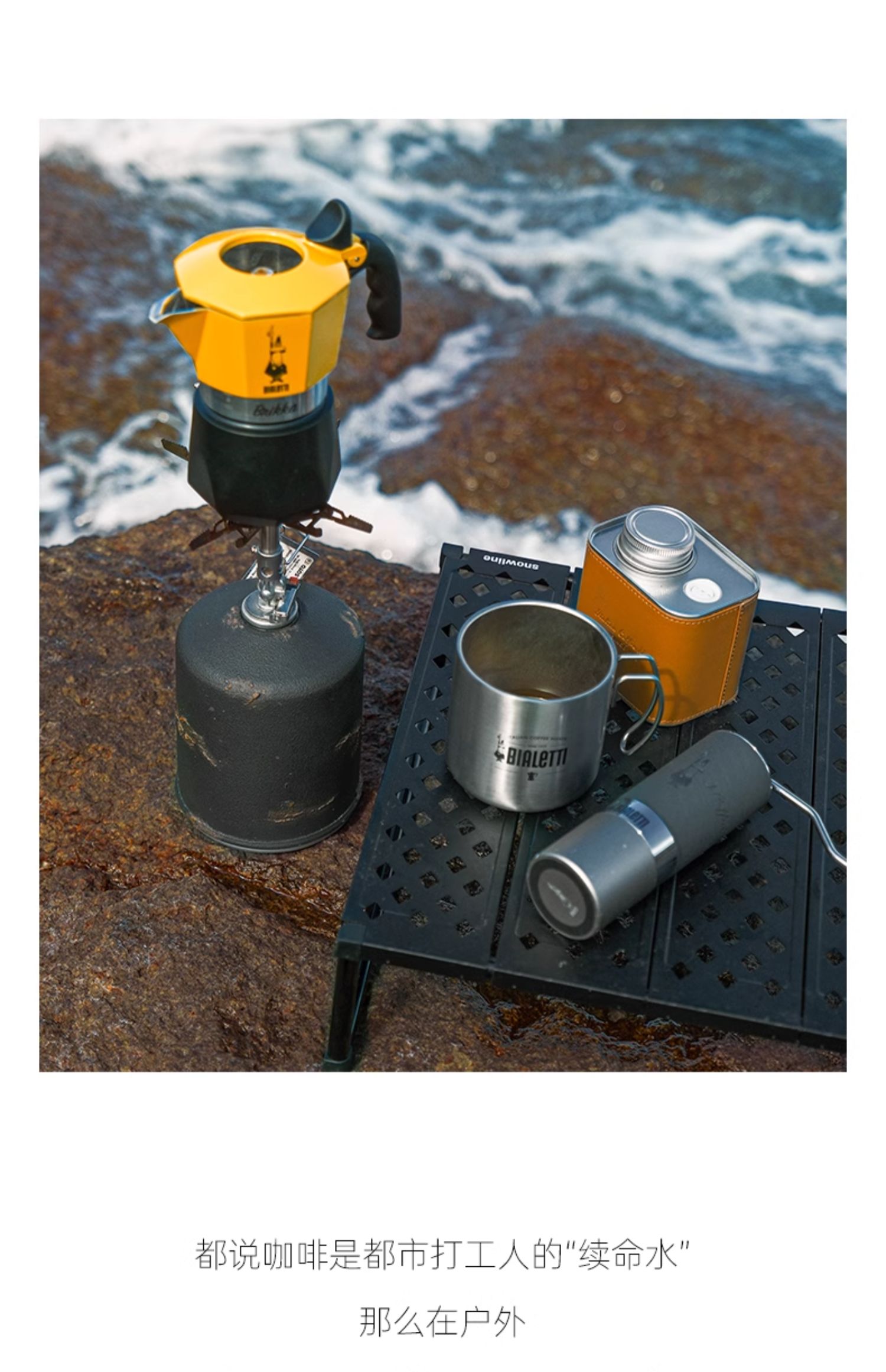 比乐蒂(Bialetti)摩卡壶户外露营套装 咖啡壶咖啡杯磨豆机礼盒套组收纳包双阀组合 黄色2杯份基础版 4件套 100ml