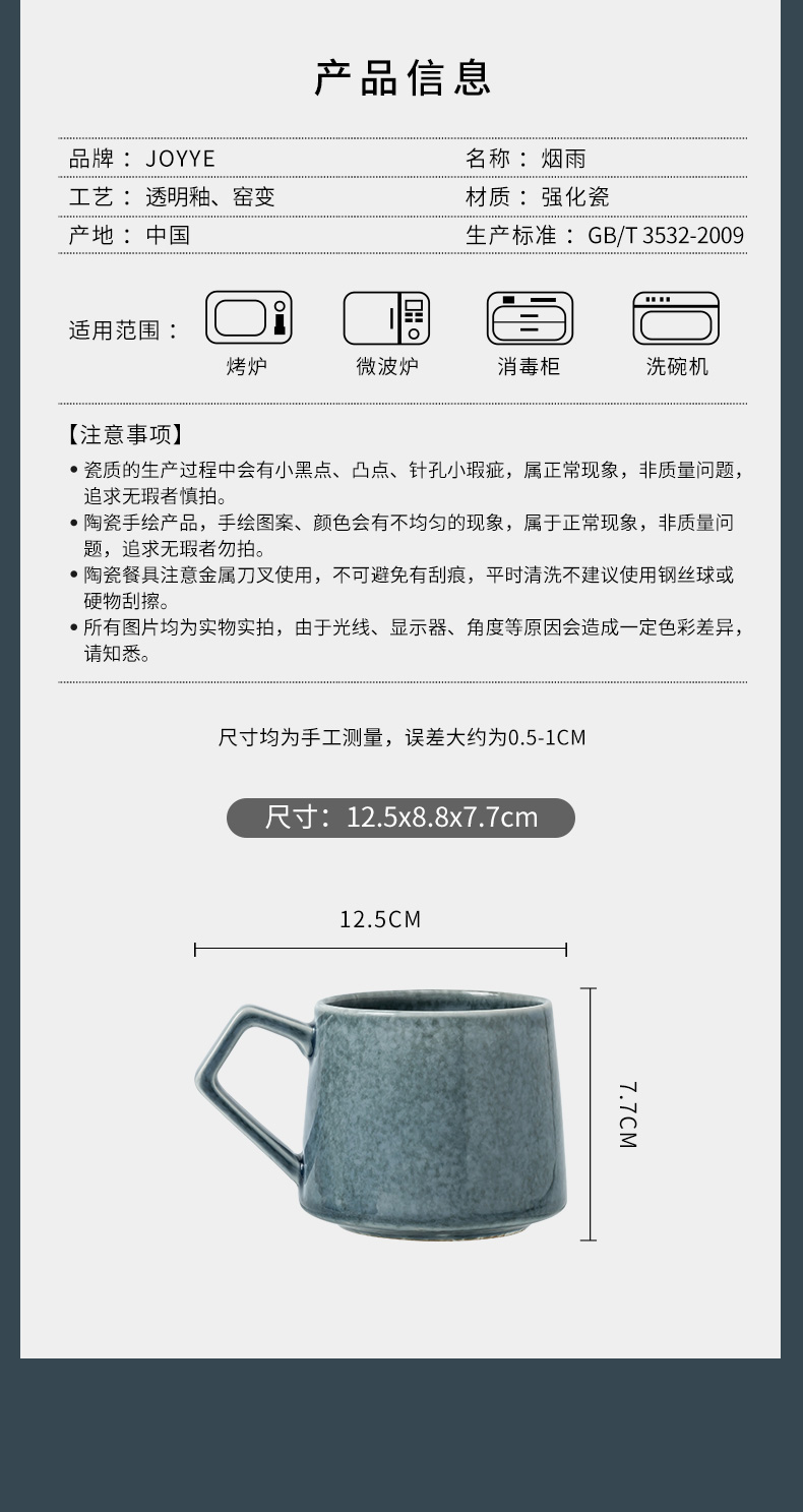 JOYYE卓艺烟雨陶瓷杯TMC0120052咖啡杯男生陶瓷马克杯小精致森系简约清新杯子