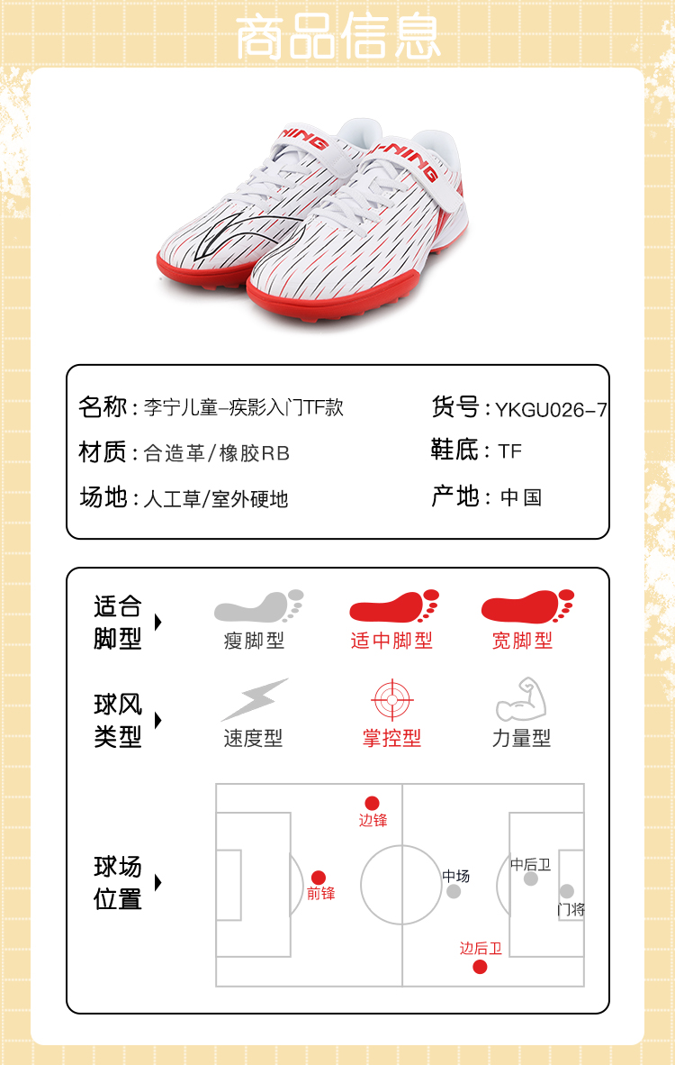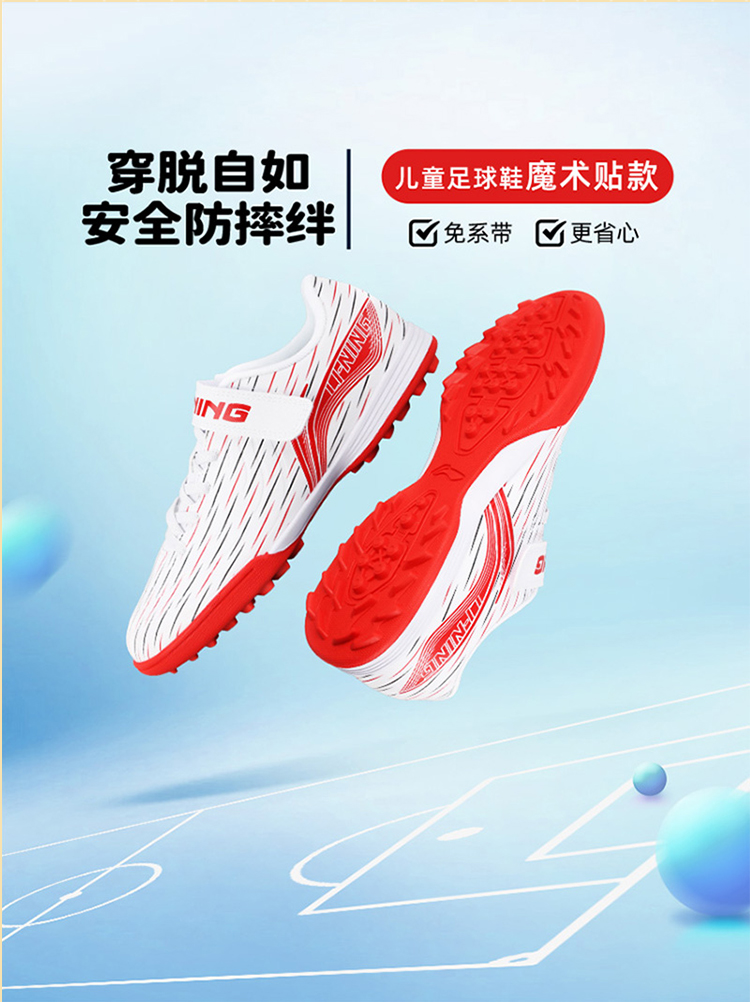 小李子李宁儿童足球鞋魔术贴TF碎钉学生训练球鞋校园比赛男女孩