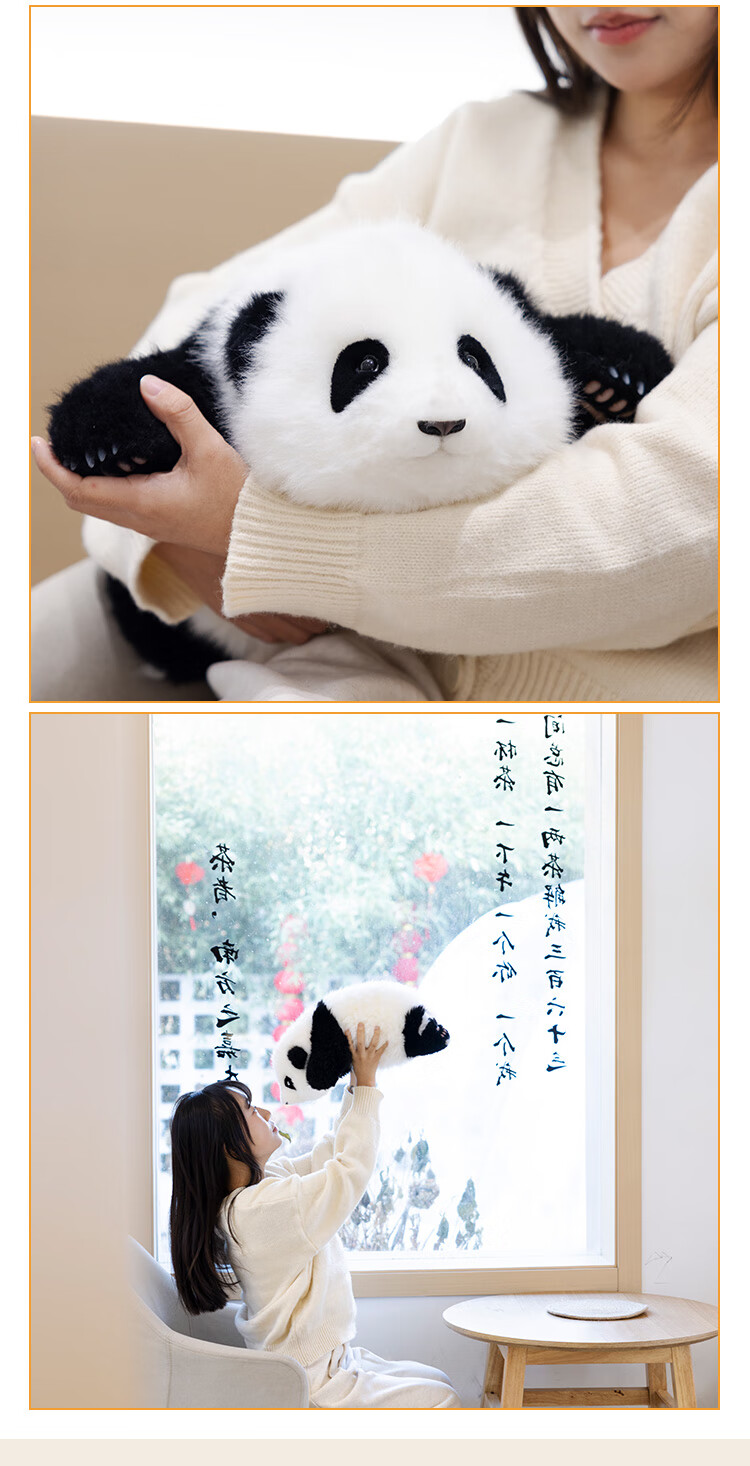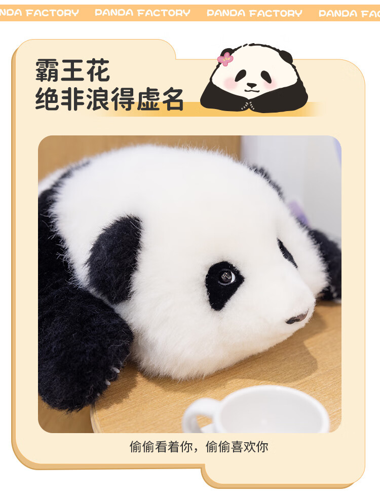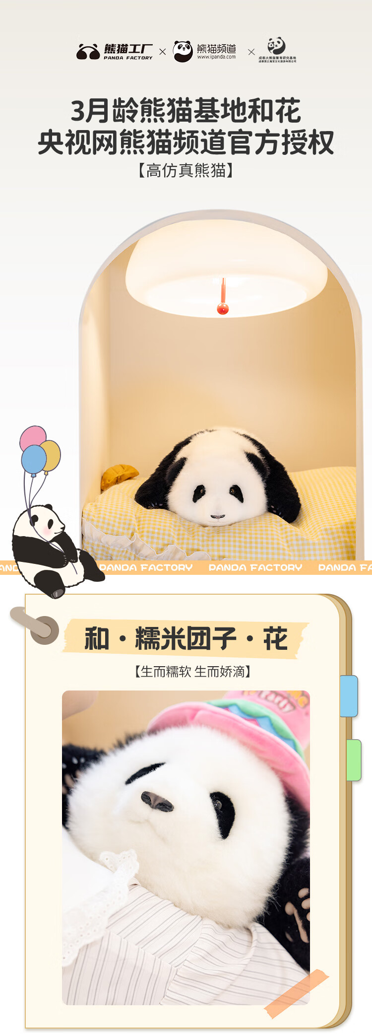 熊猫工厂 仿真熊猫玩偶 3月龄 和花 仿真熊猫玩偶情人节礼物可爱儿童毛绒玩具公仔 熊猫基地硅凝胶款 长42*宽38*高18