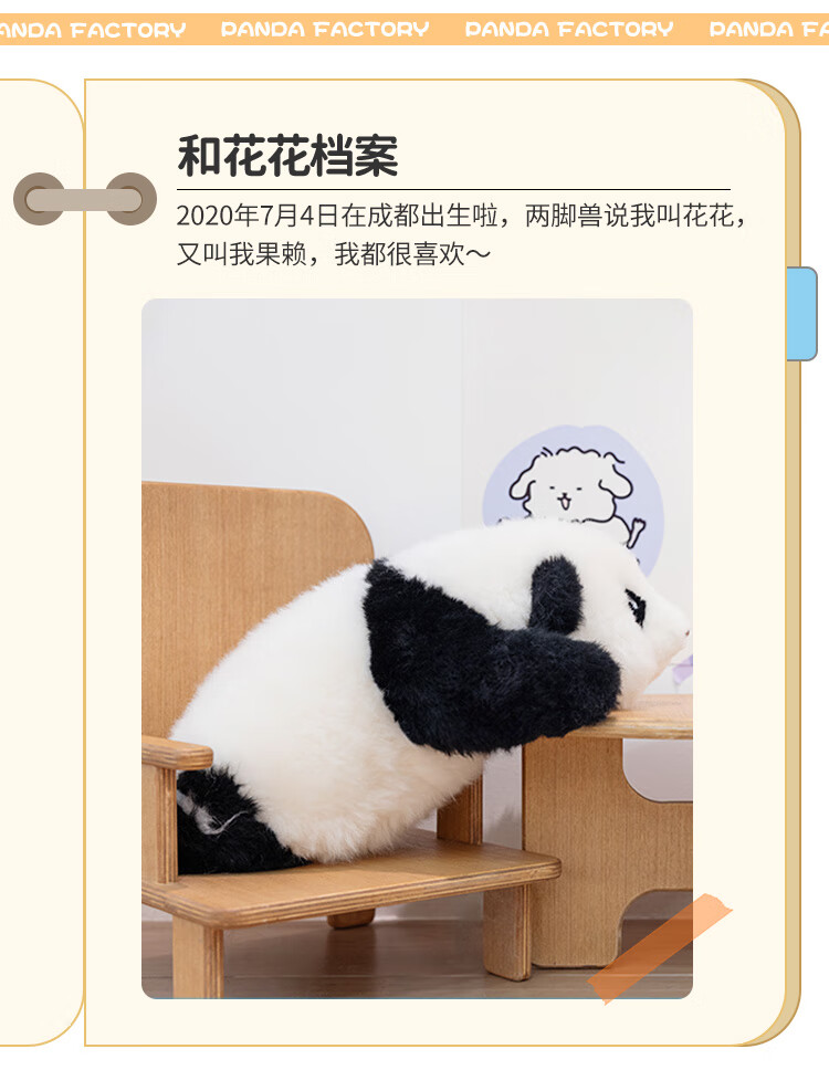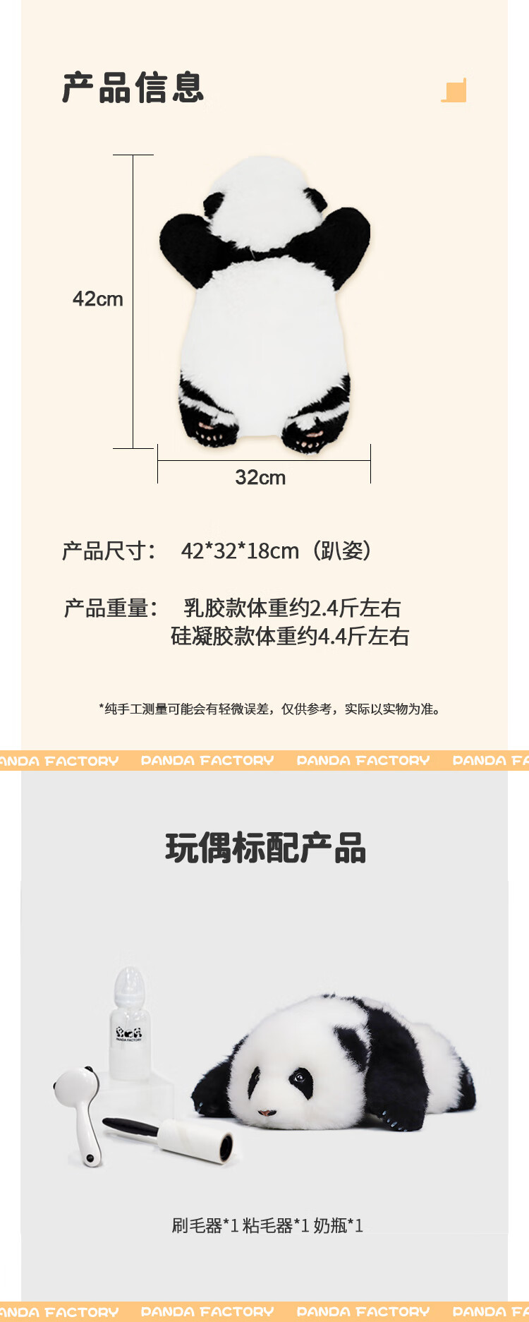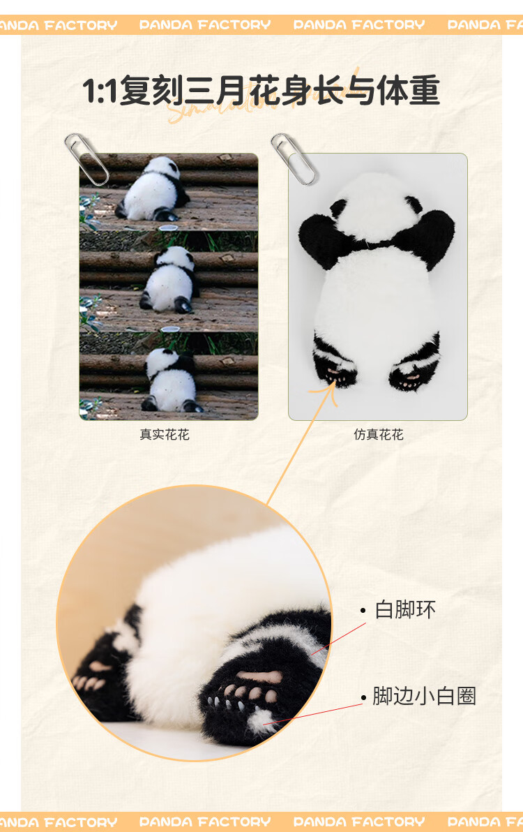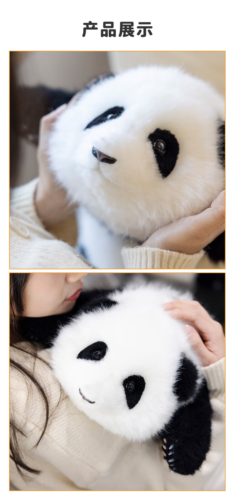 熊猫工厂 仿真熊猫玩偶 3月龄 和花 仿真熊猫玩偶情人节礼物可爱儿童毛绒玩具公仔 熊猫基地硅凝胶款 长42*宽38*高18