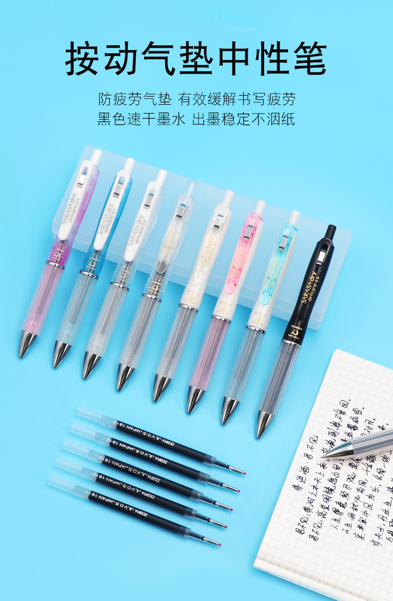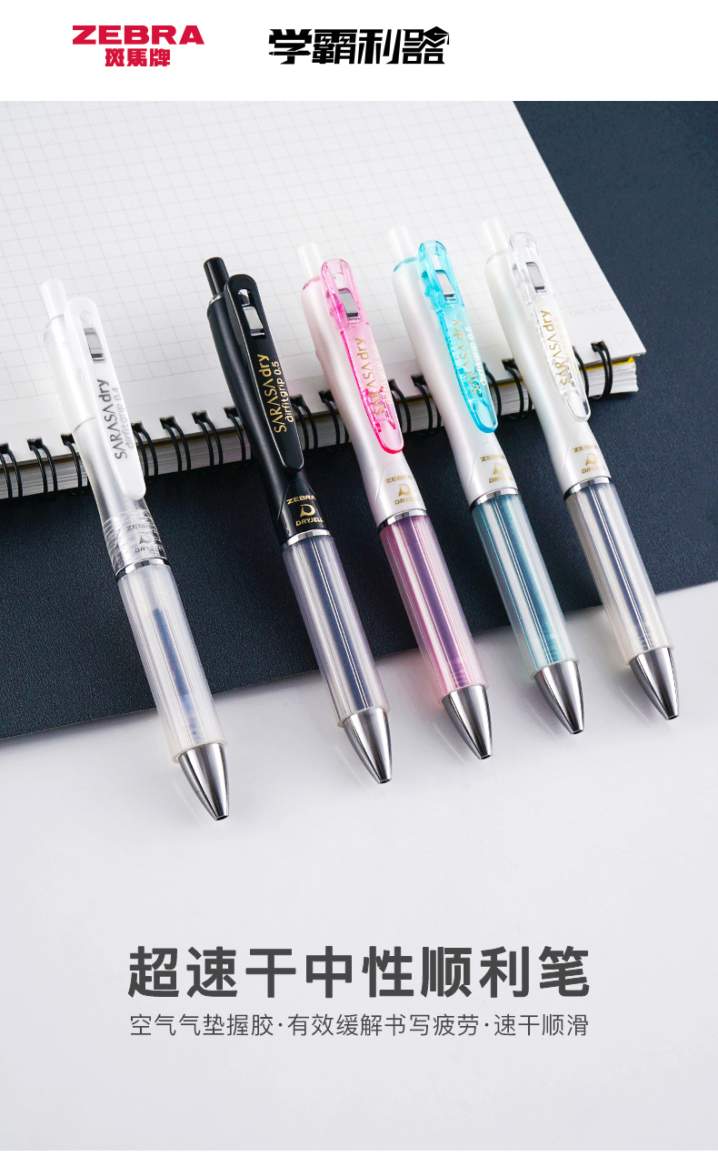 斑马中性笔JJZ49-C按动气垫不易疲劳水性笔学生用考试黑笔商务办公签字笔