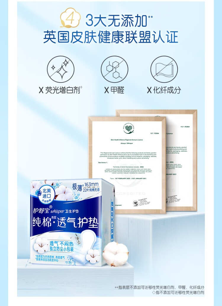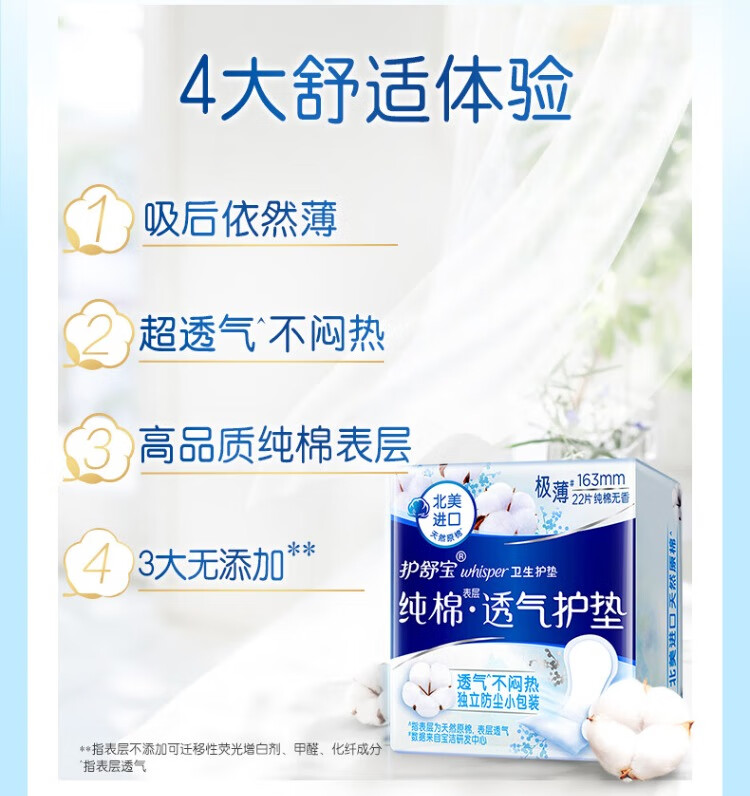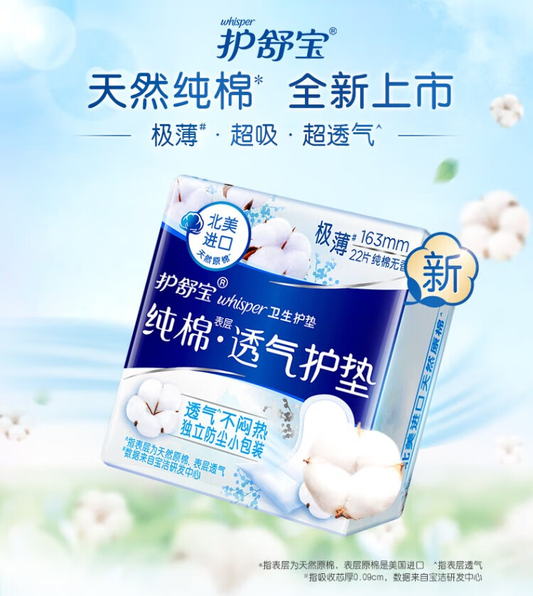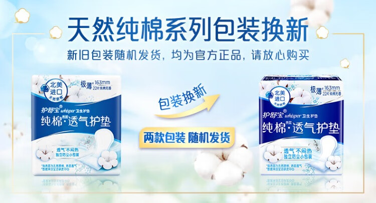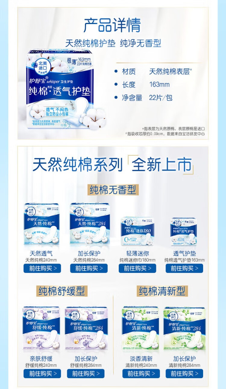 护舒宝纯棉护垫无香型日用163mm22片/包