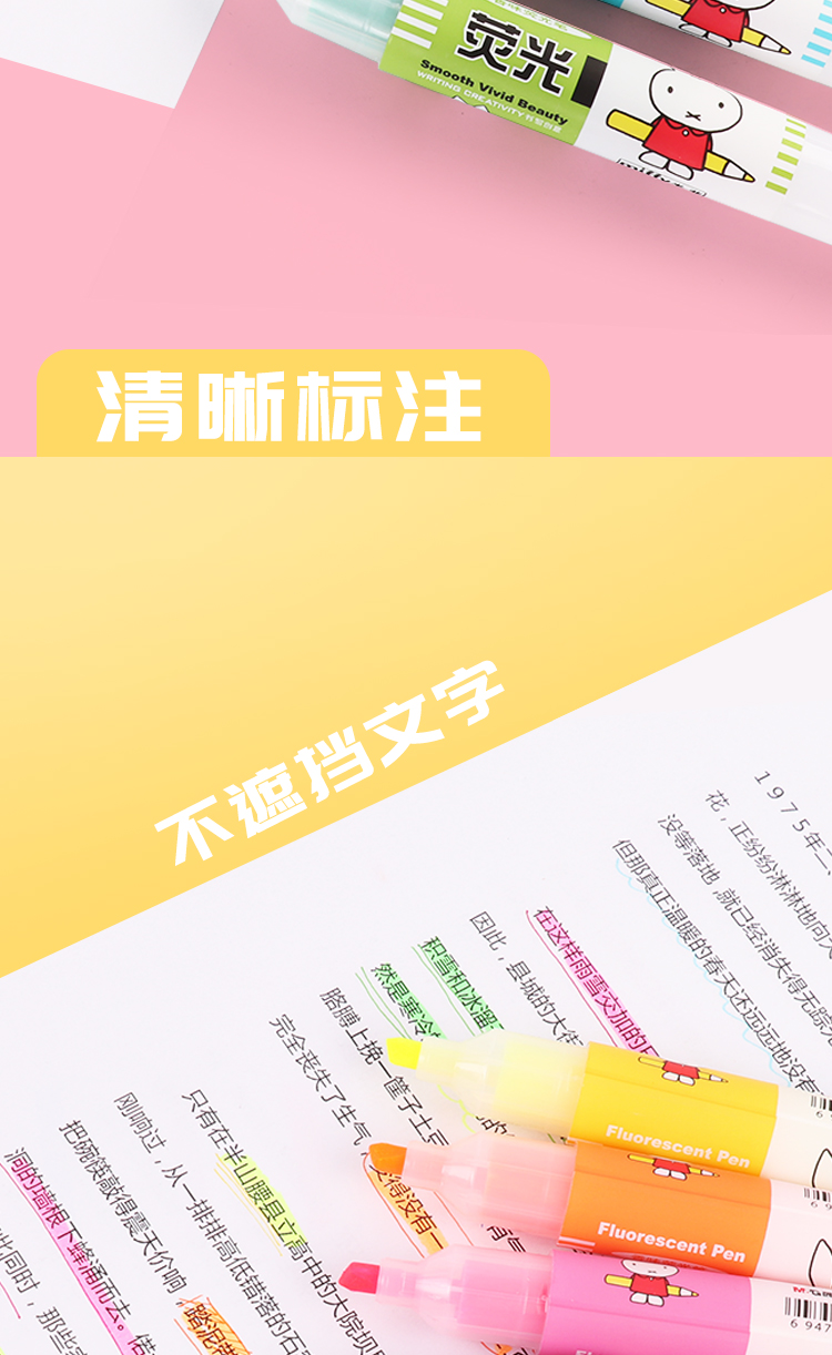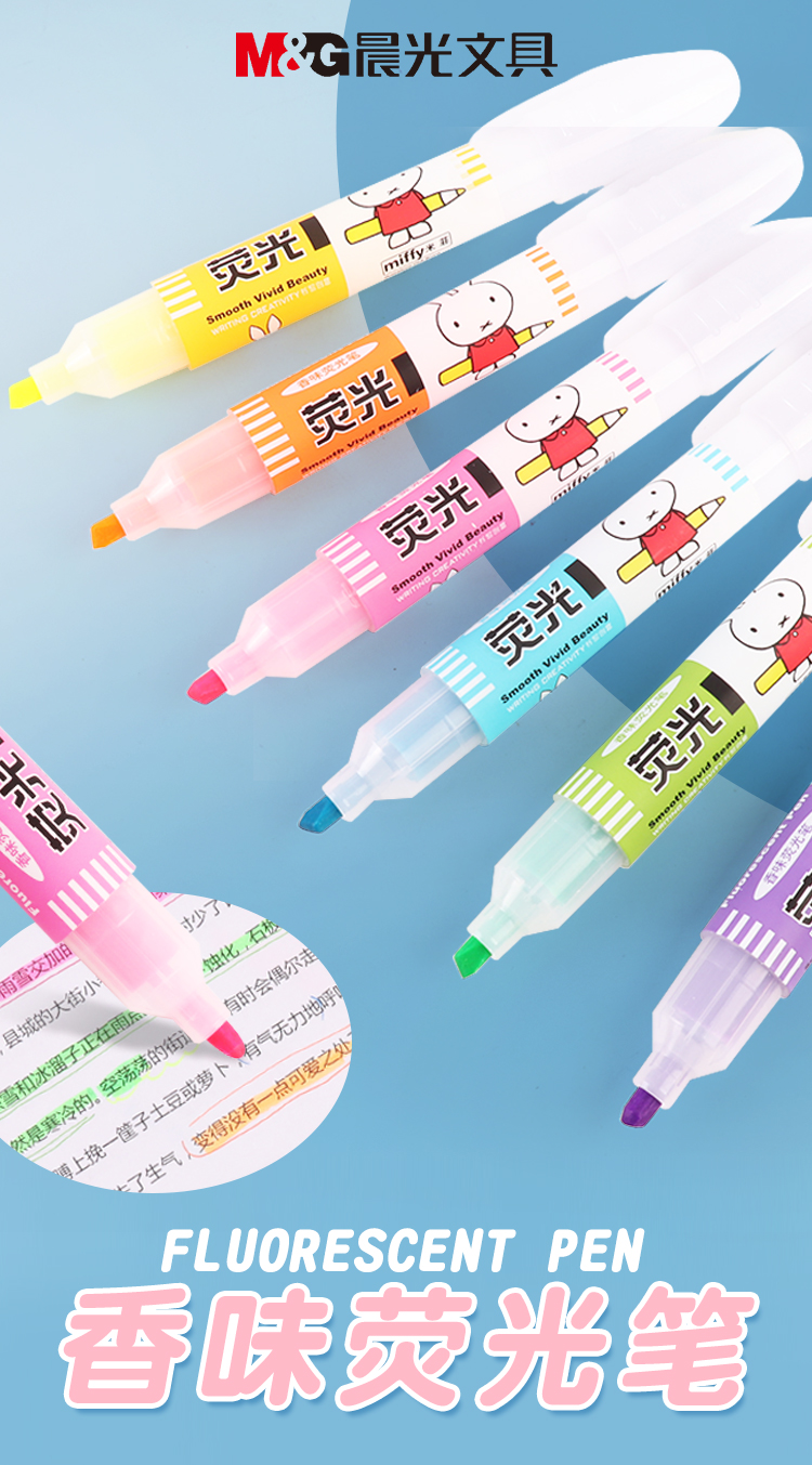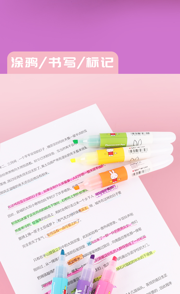 晨光荧光笔米菲MF5301标记笔彩色学生用文具记号笔划重点