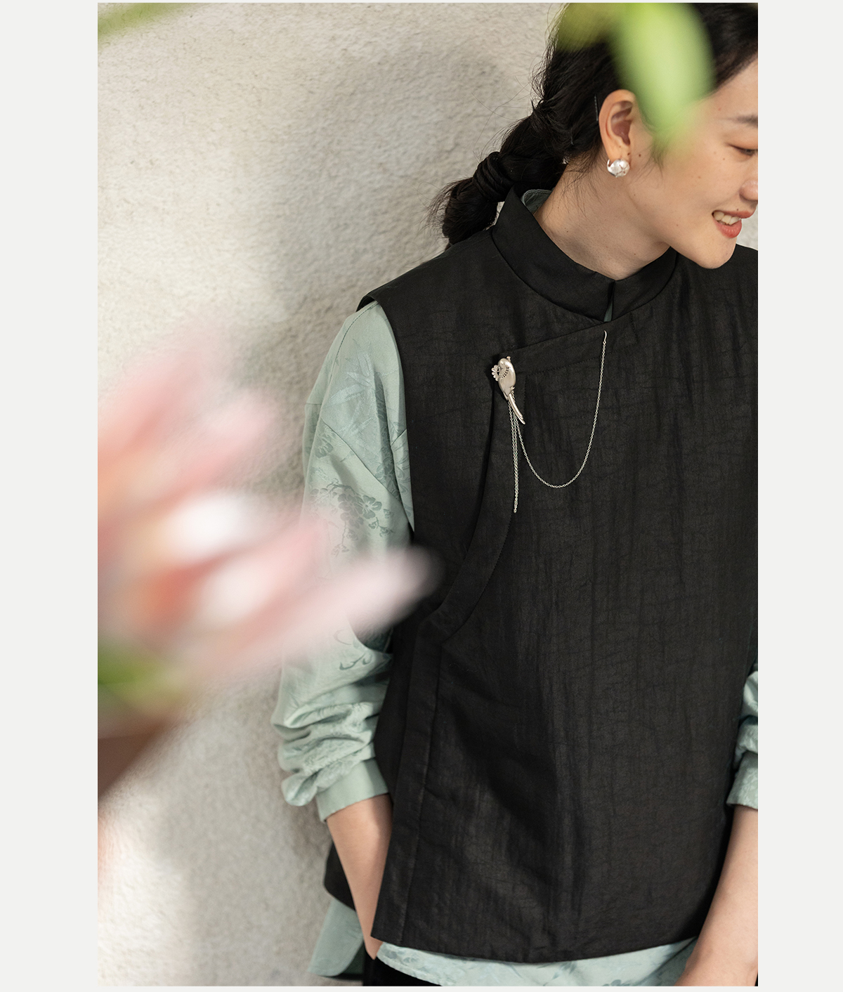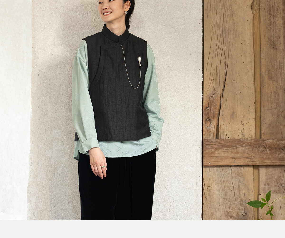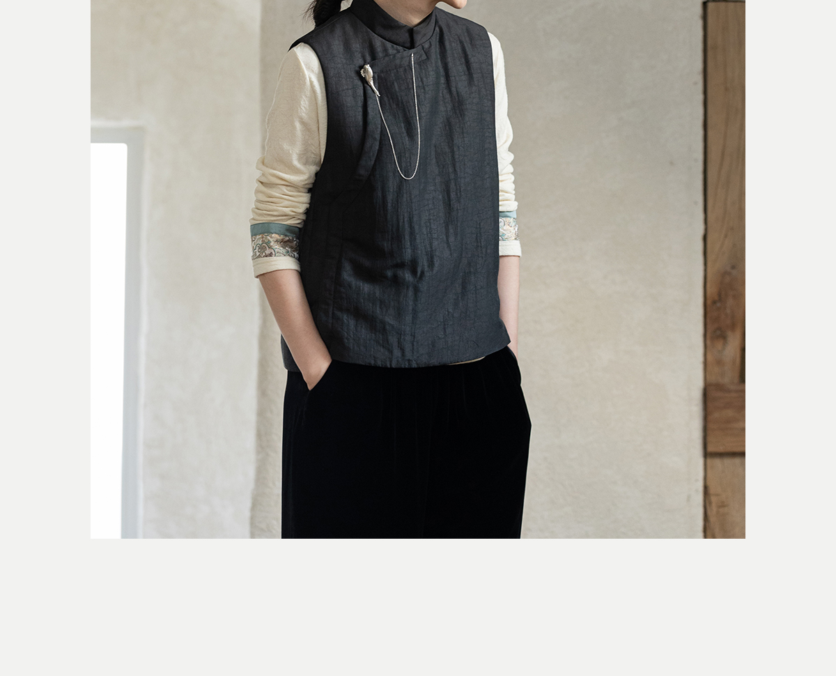 牧衣游原创 重磅25姆米香云纱龟裂纹马夹复古文艺新中式开衫 岁缂
