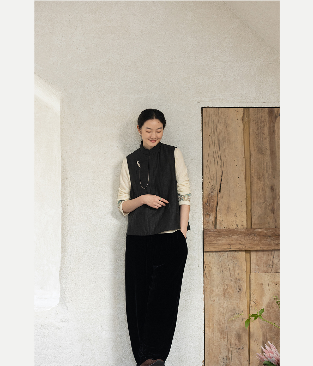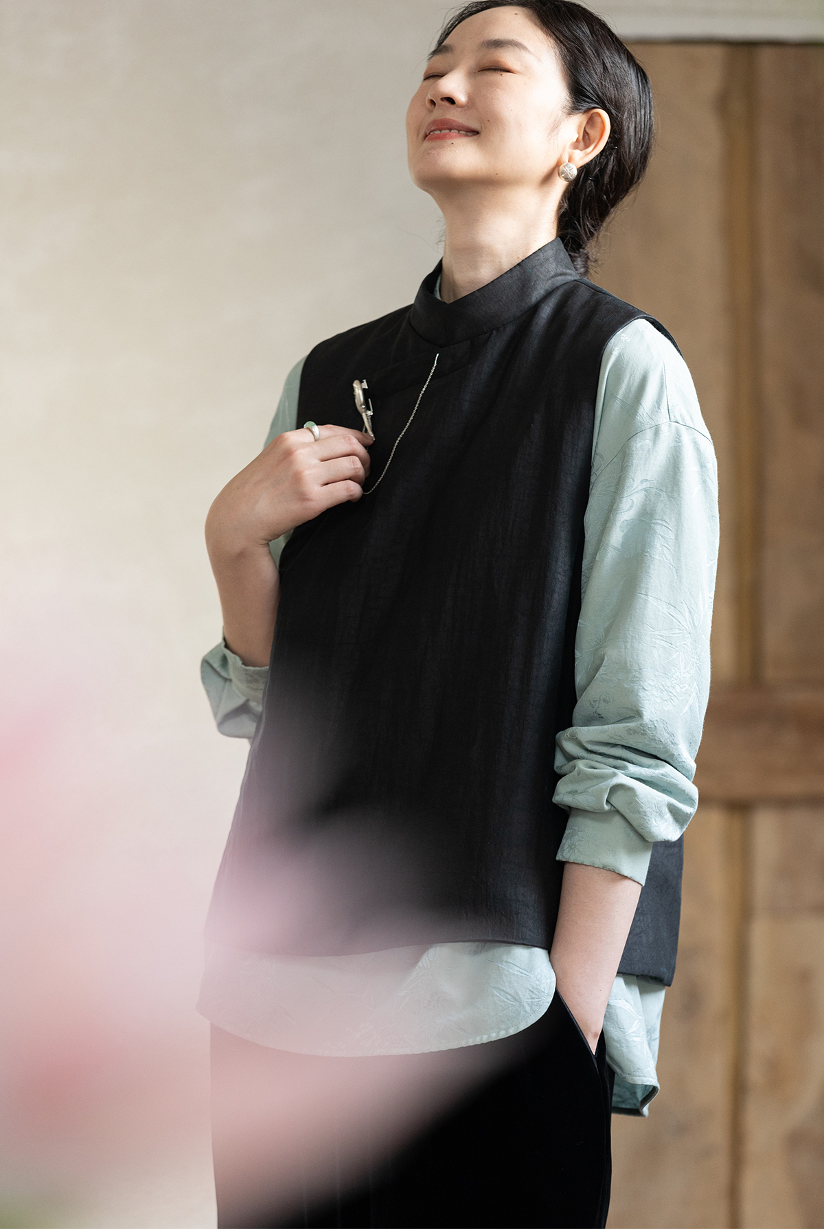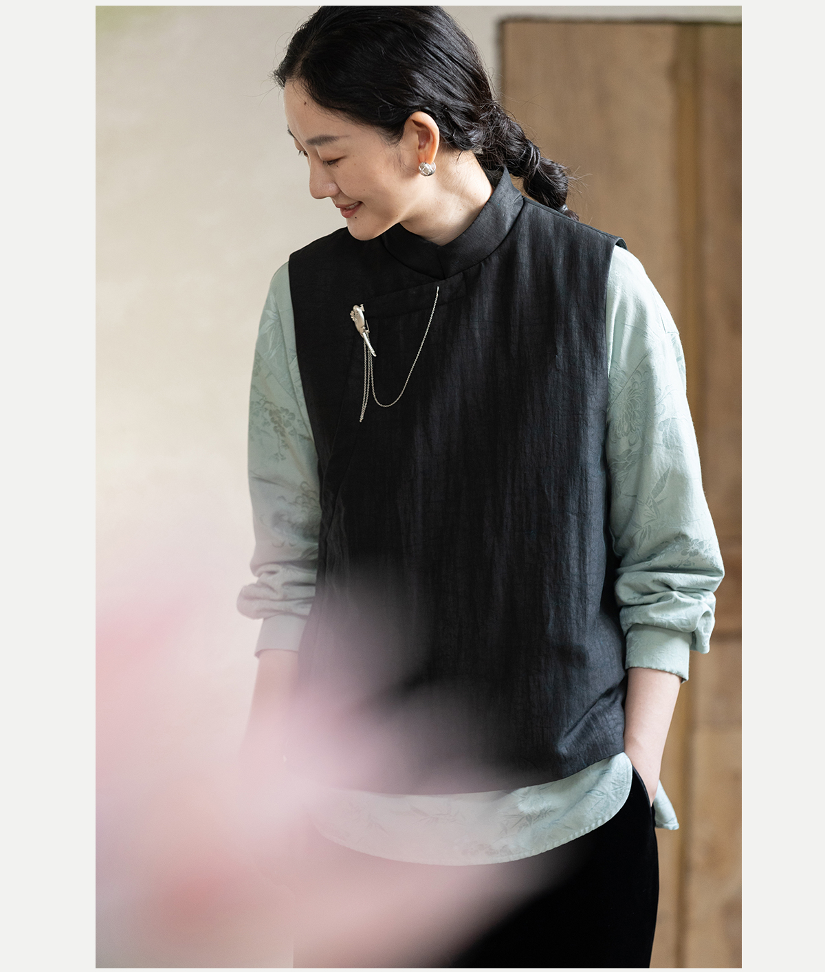 牧衣游原创 重磅25姆米香云纱龟裂纹马夹复古文艺新中式开衫 岁缂