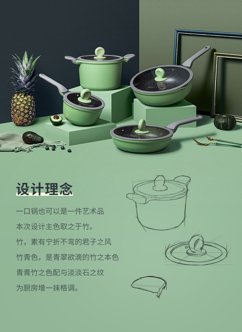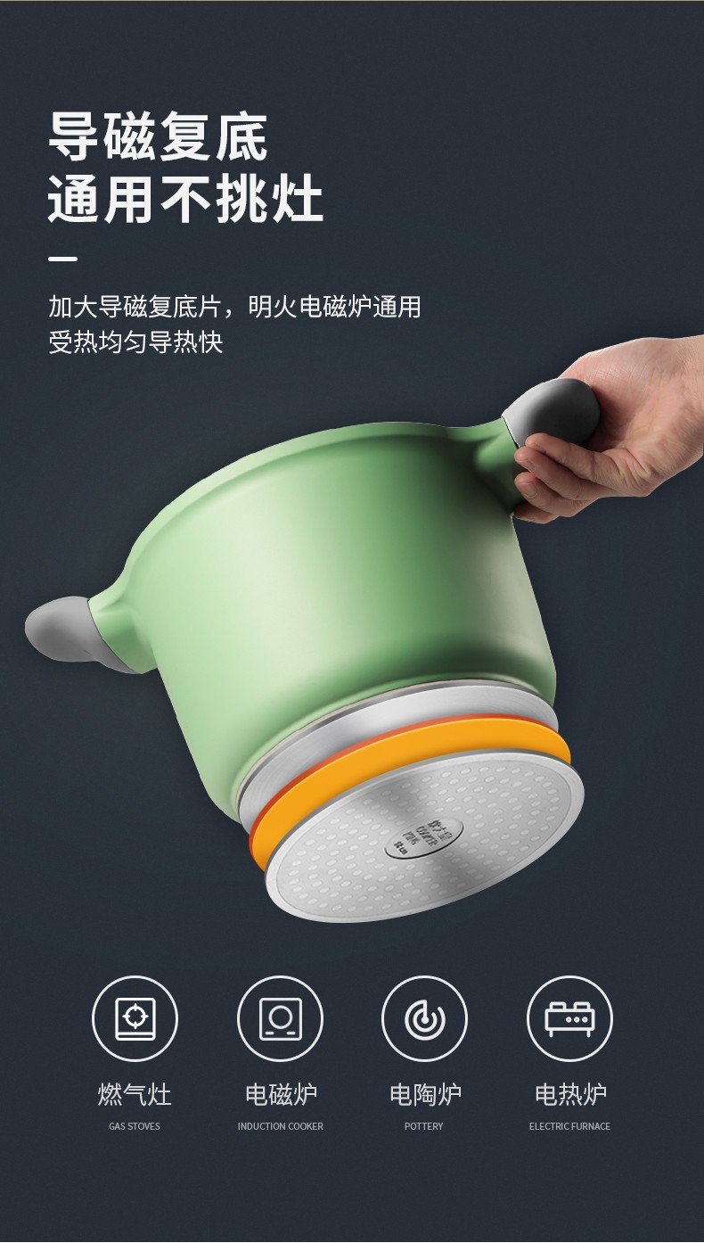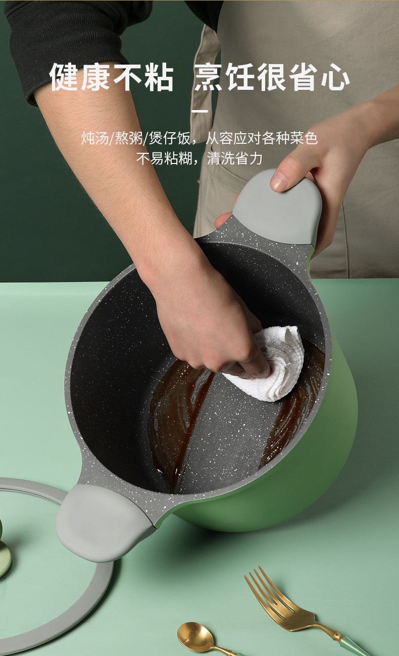 炊大皇汤锅22cm不粘锅麦饭石色炖肉煲汤锅平底家用锅具电磁炉燃气煤气灶明火通用竹青石系列TG22ZQ
