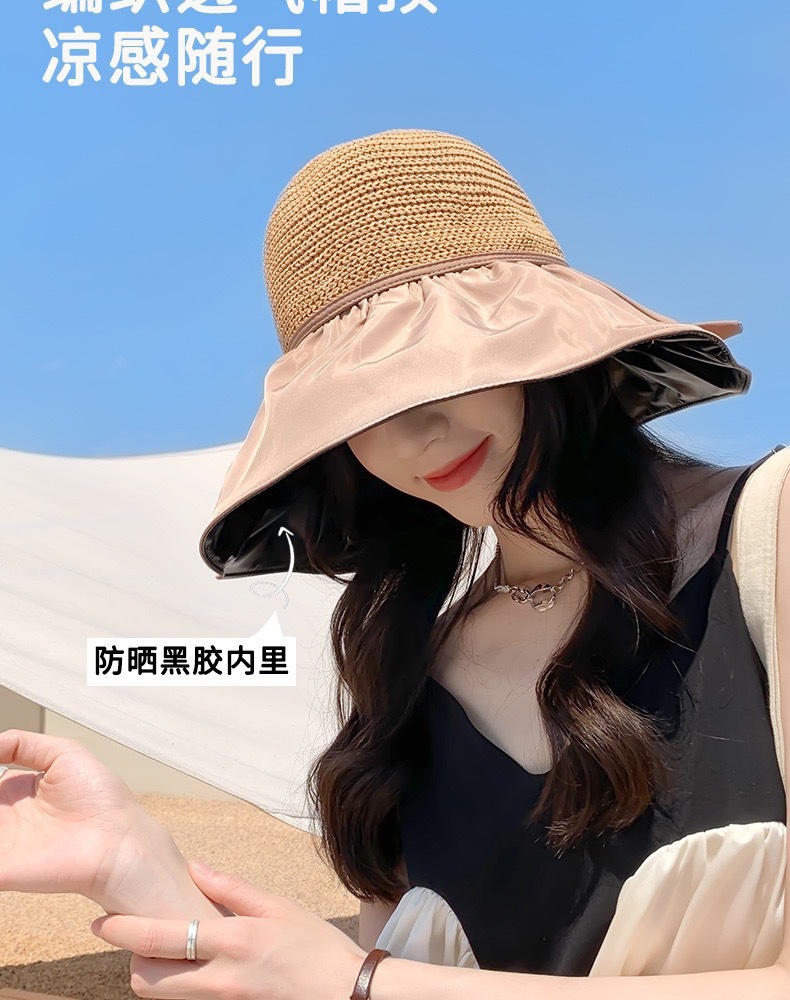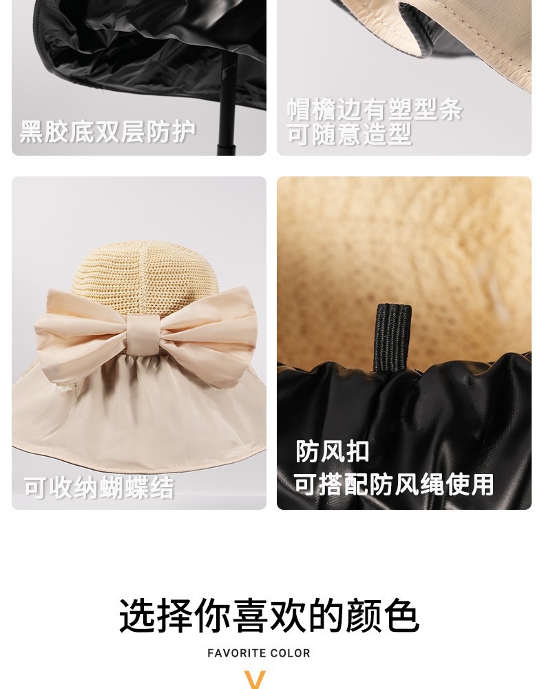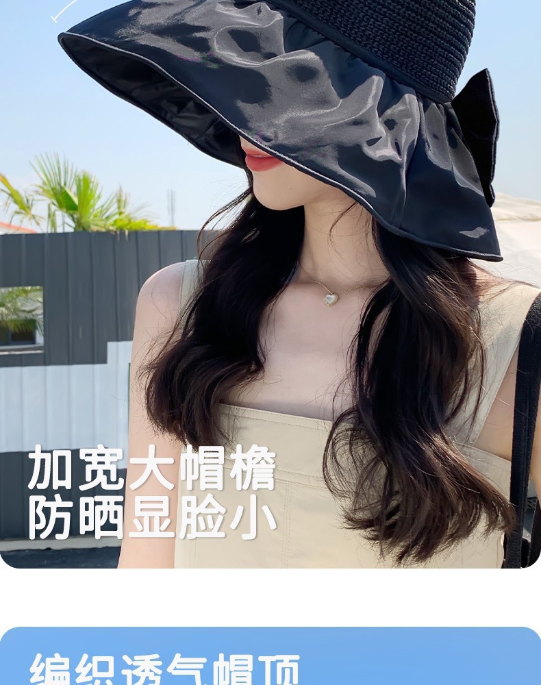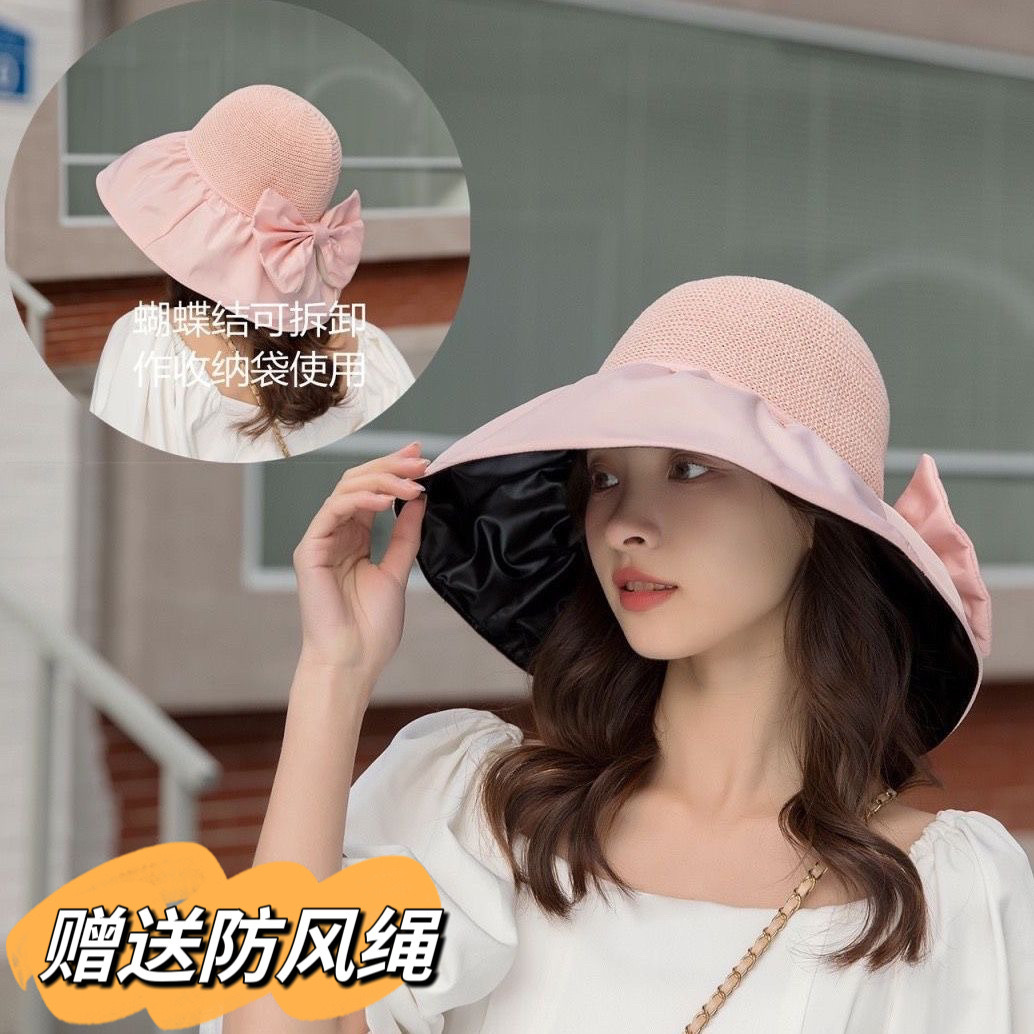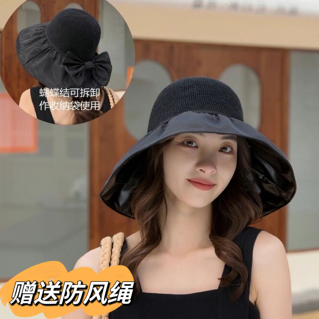 夏季女士遮阳帽便携收纳袋款黑胶渔夫帽子户外防紫外线大檐太阳帽2025新款小红书爆款