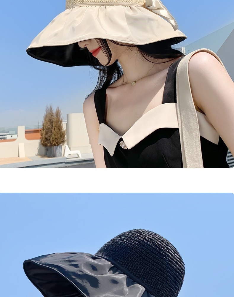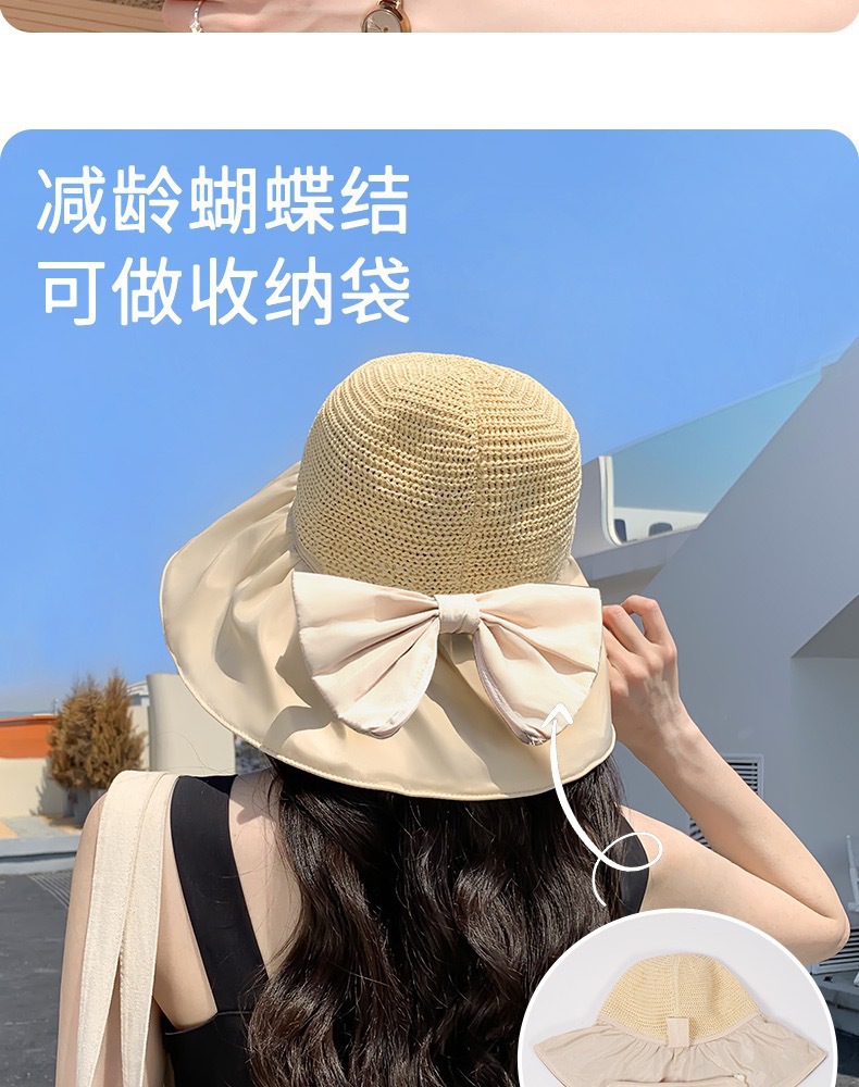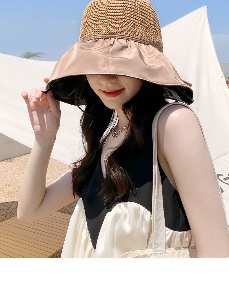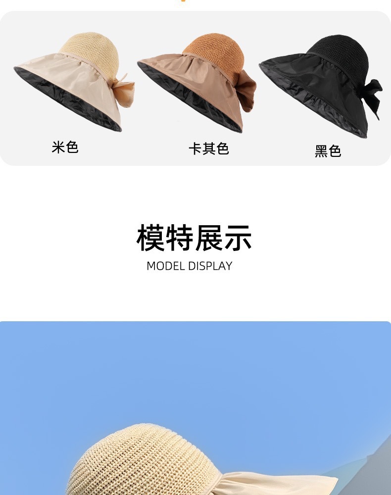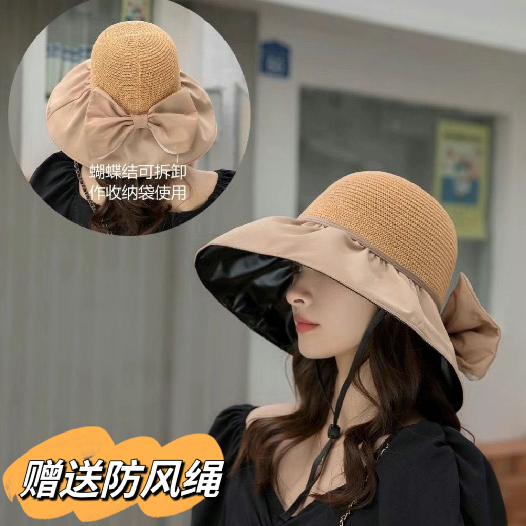夏季女士遮阳帽便携收纳袋款黑胶渔夫帽子户外防紫外线大檐太阳帽2025新款小红书爆款
