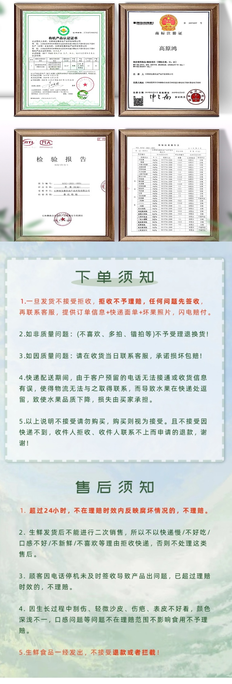 此产品为生鲜,不支持7天无理由退换货。收到货有任何问题,12小时内坏果拍照+订单信息+快递面单,联系客服赔偿处理