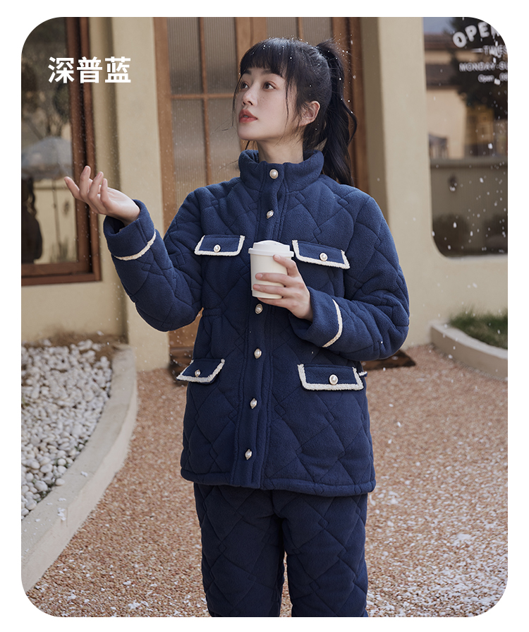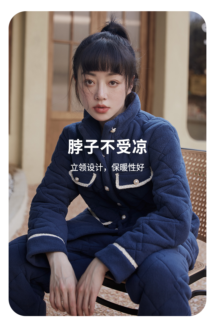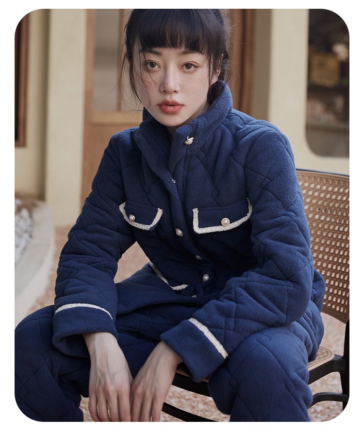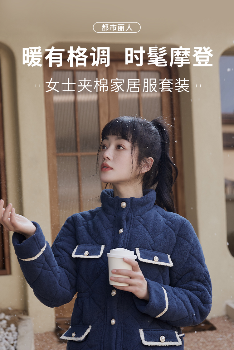 都市丽人舒适外出女士睡衣高端臻品米粒绒夹棉家居服LH21N1