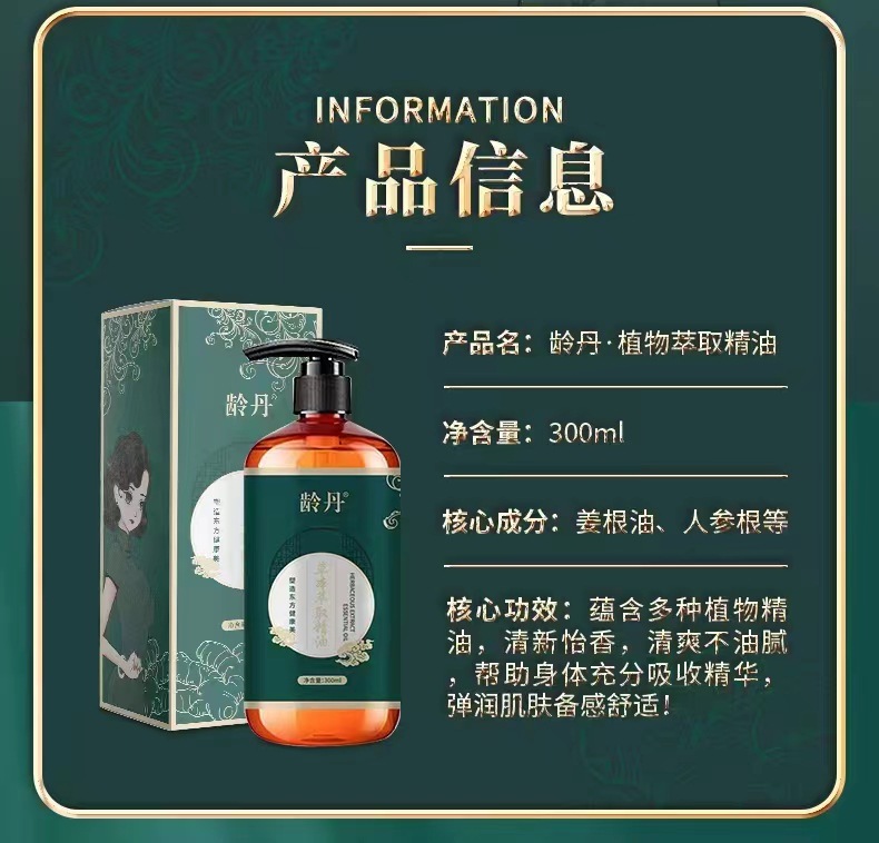 龄丹植物萃取精油暴汗塑形健身紧致肌肤去湿排酸抖音爆款新款新品
