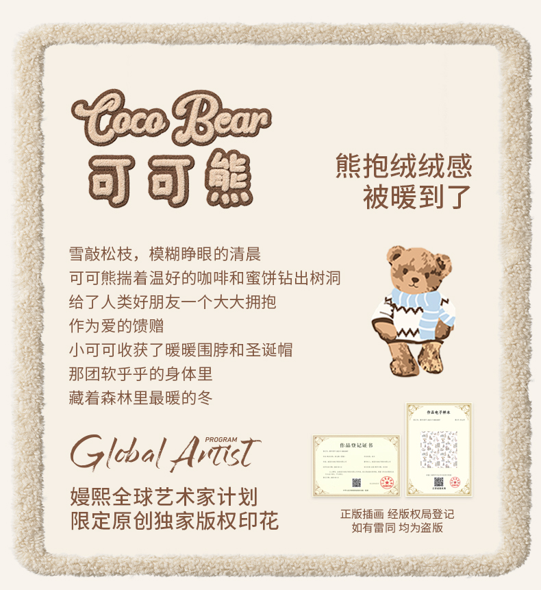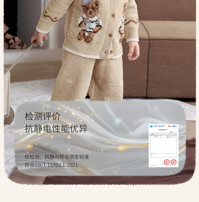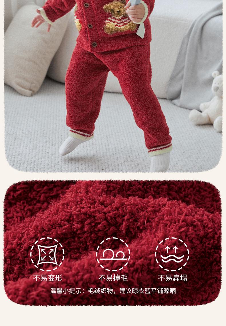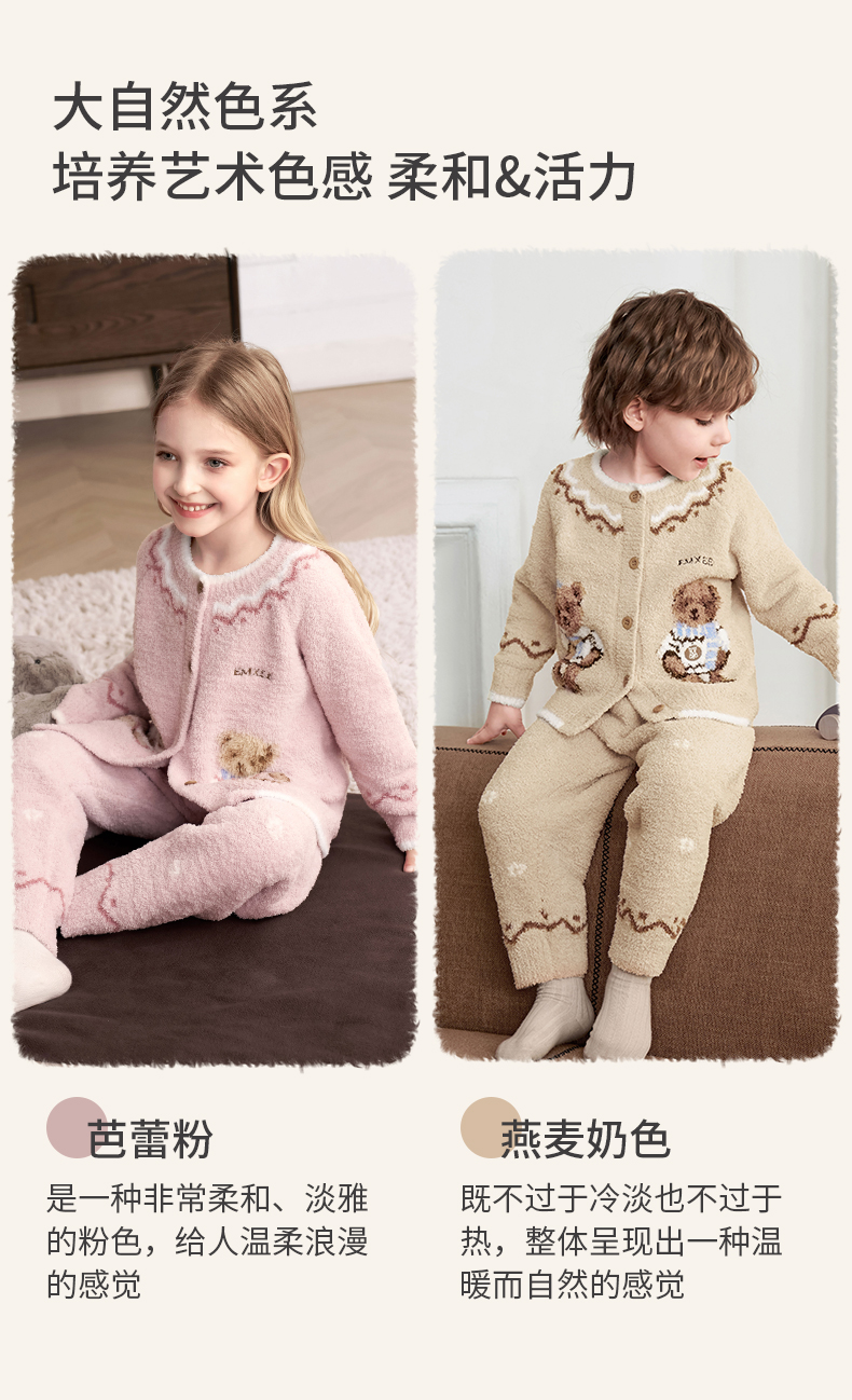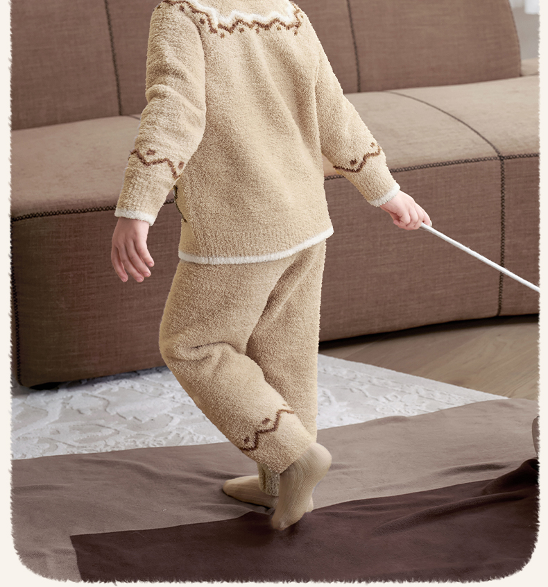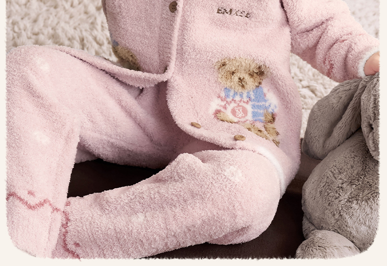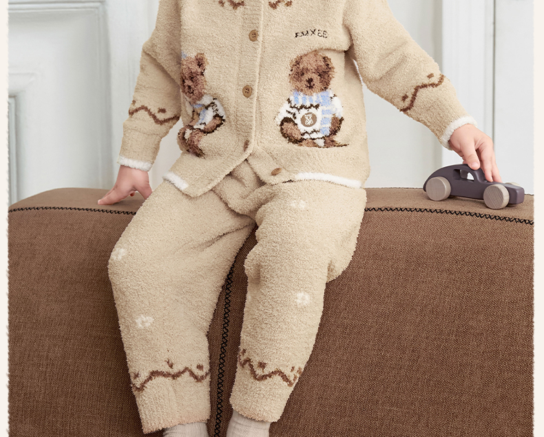 【宝宝服饰】嫚熙儿童家居服可可熊半边绒套装宝宝加厚加绒保暖睡衣套装秋冬