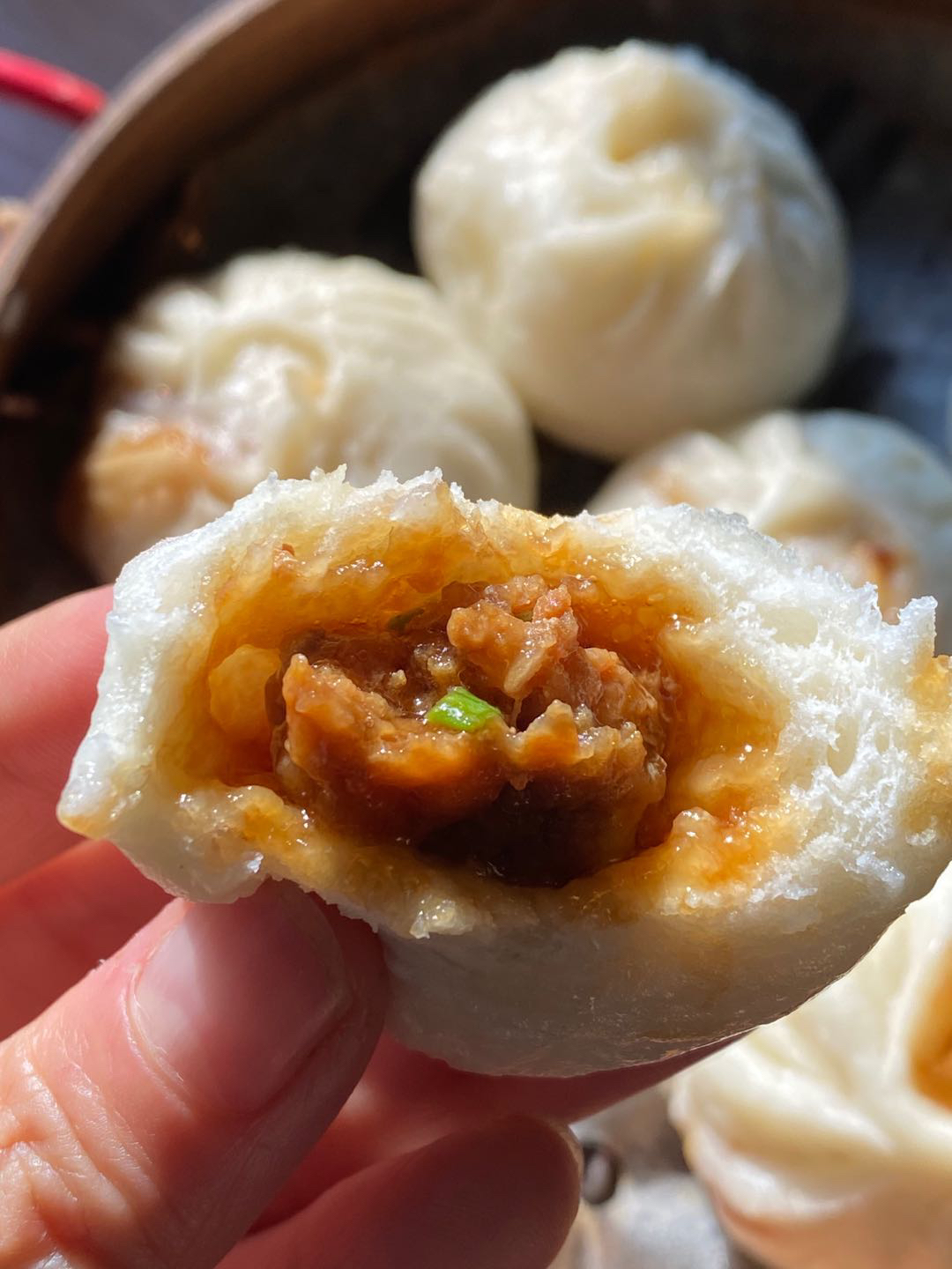 【口感】传统老面发酵,面皮松软不失嚼劲,猪腿肉内馅,肉香满口,最经典最好吃!