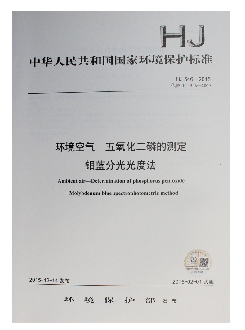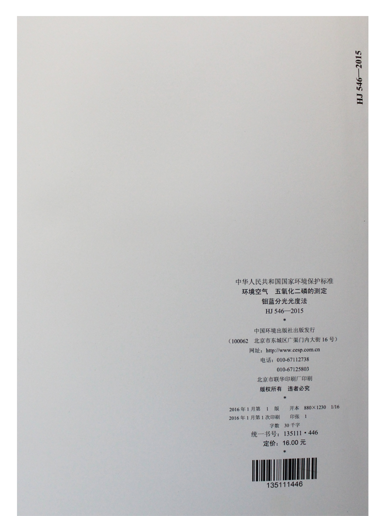 HJ 546-2015代替HJ 546-2009 环境空气 五氧化二磷的测定 钼蓝分光光度法 GB 环境保护中国环境出版社135111446