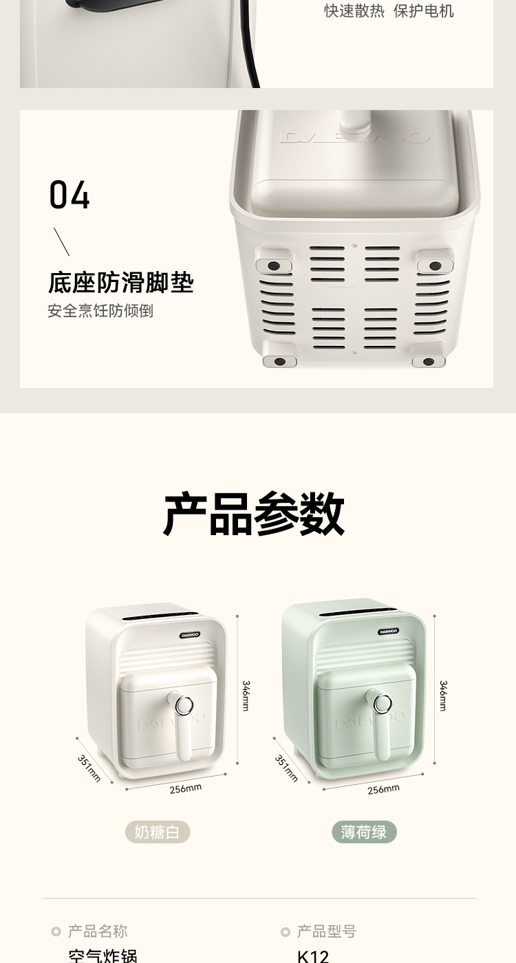 大宇空气炸锅K12方方家用多功能全自动5L大容量