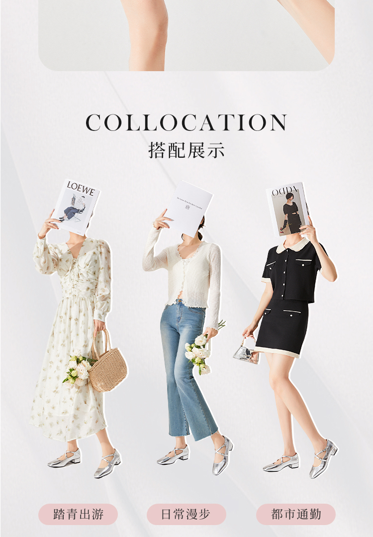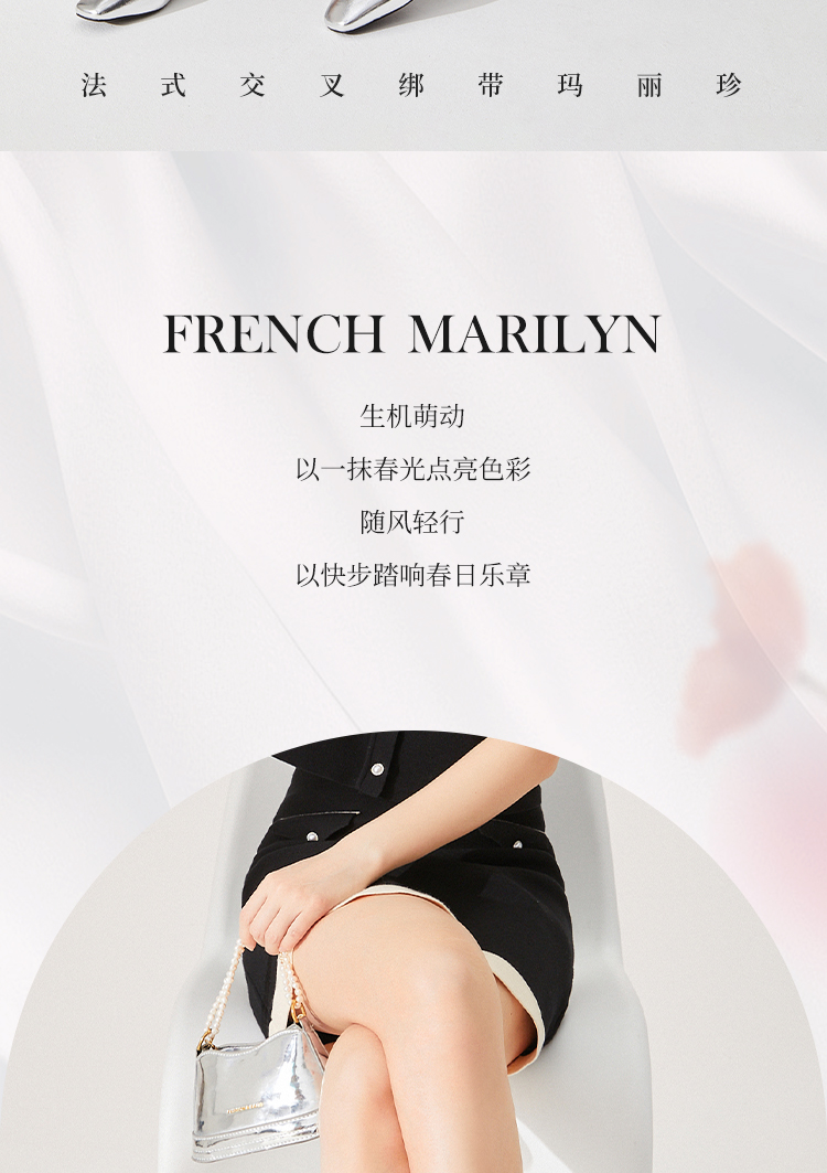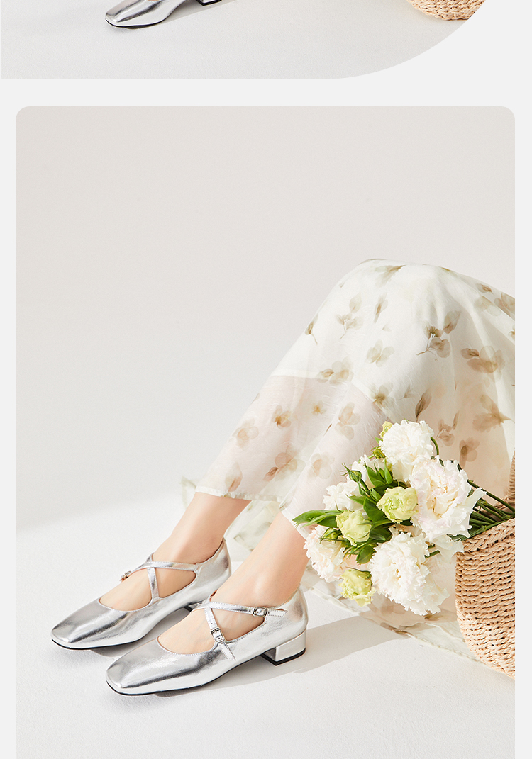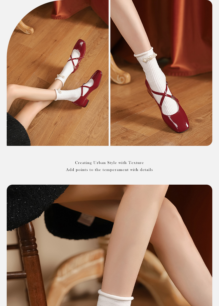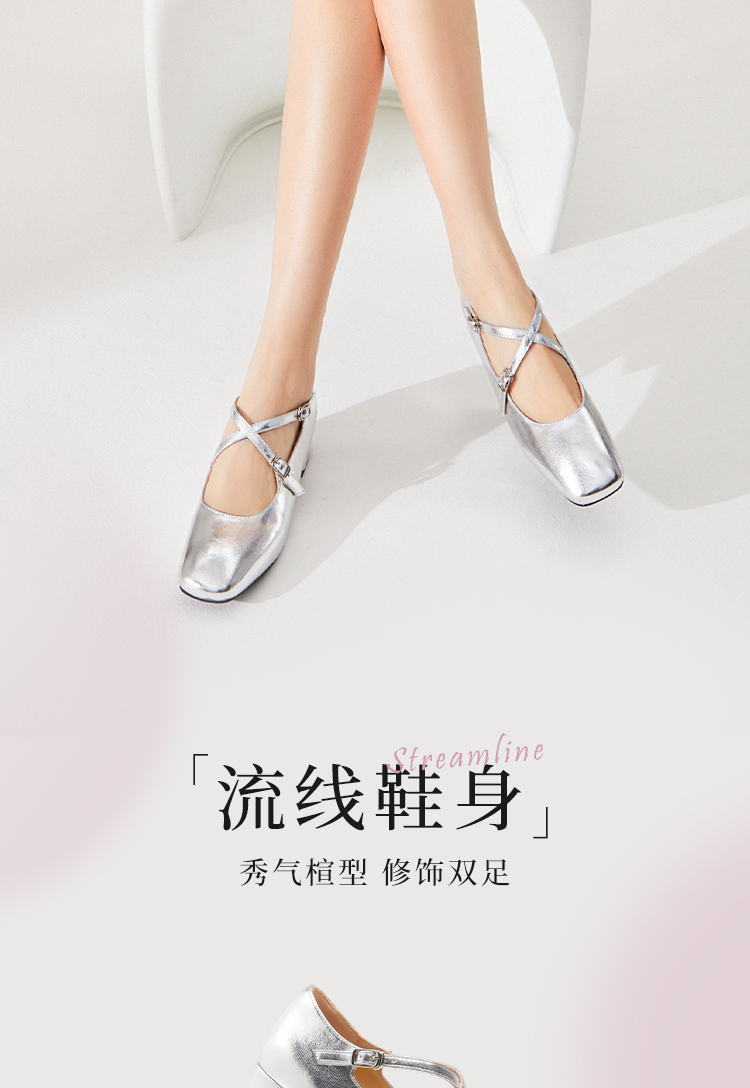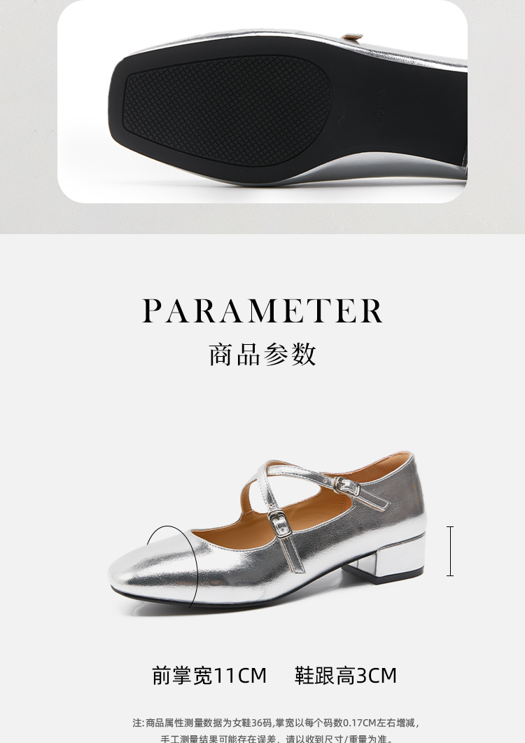 西遇法式粗跟单鞋女新款方头交叉绑带漆皮低跟浅口鞋D1333559