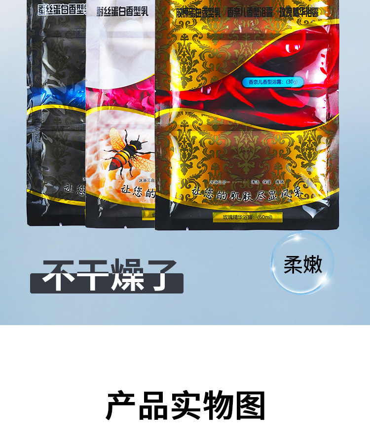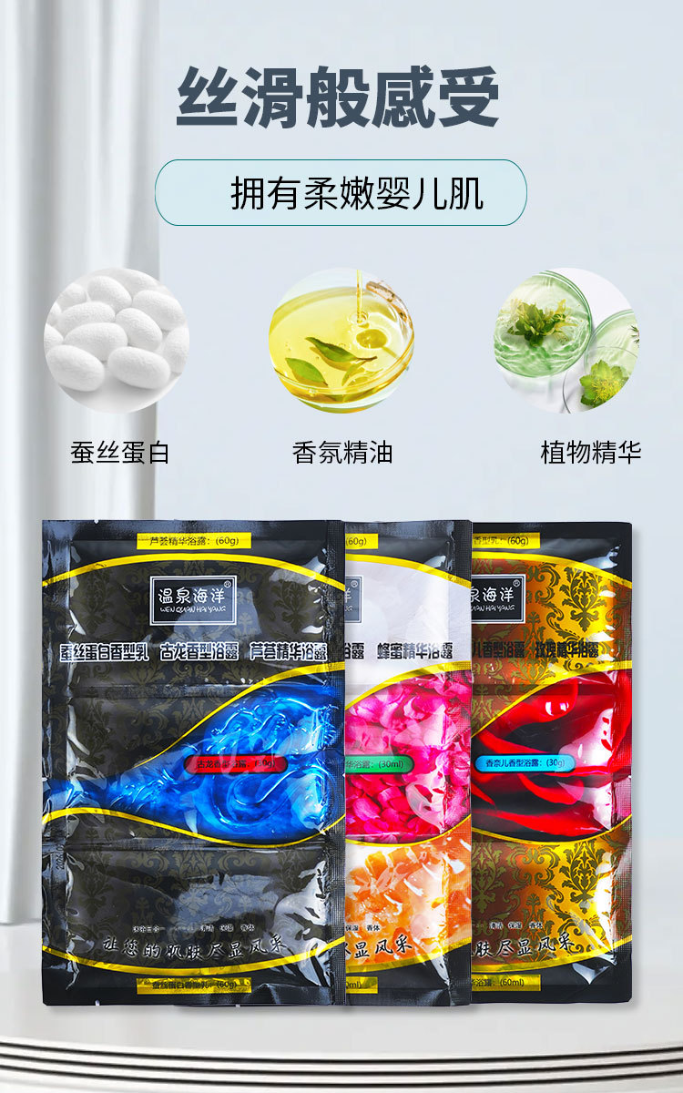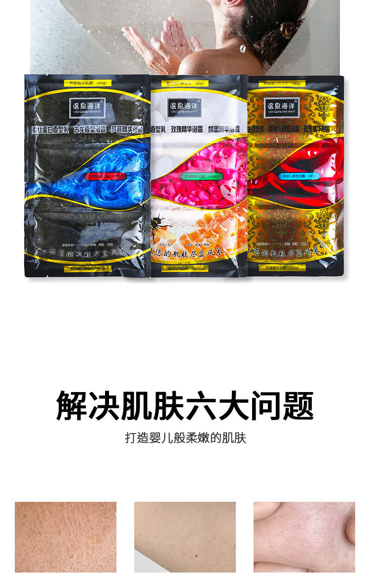 温泉海洋三合一蚕丝蛋白奶膏玫瑰精油蜂蜜精华浴搓澡浴池洗浴用品