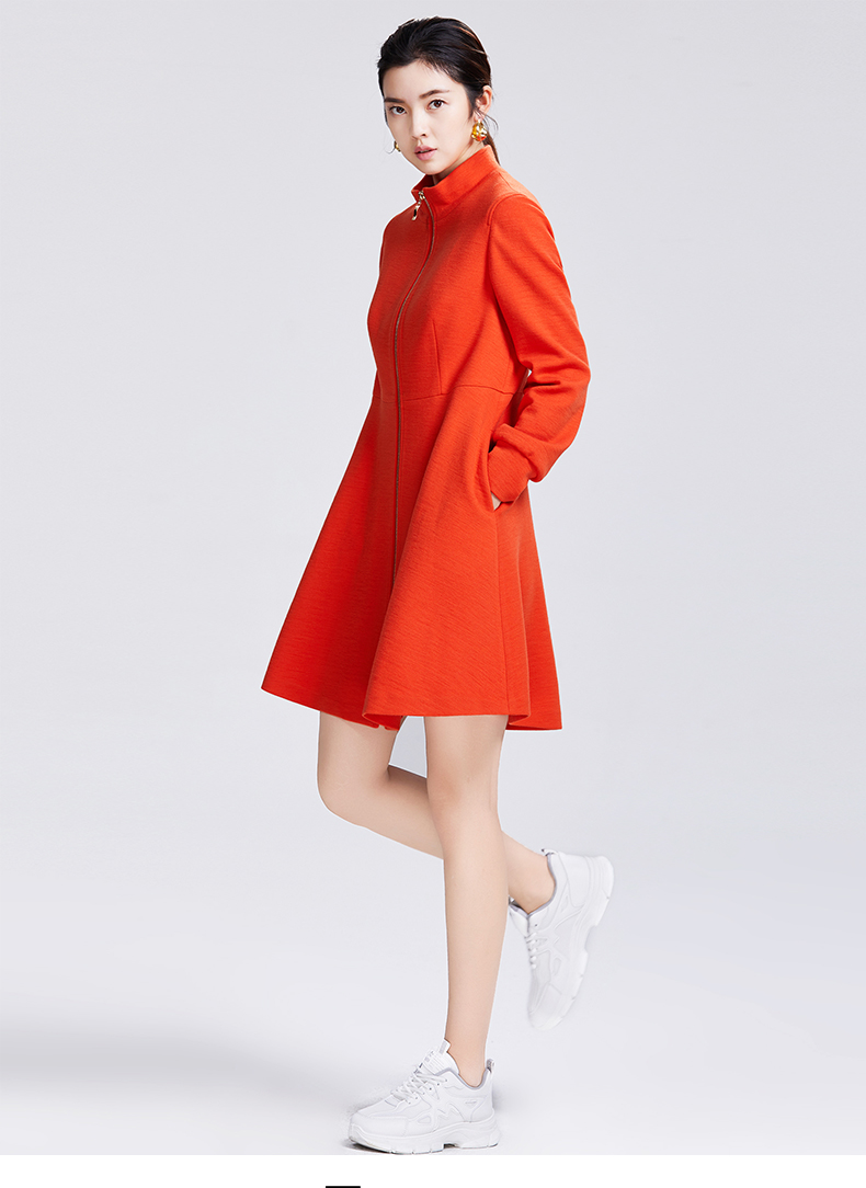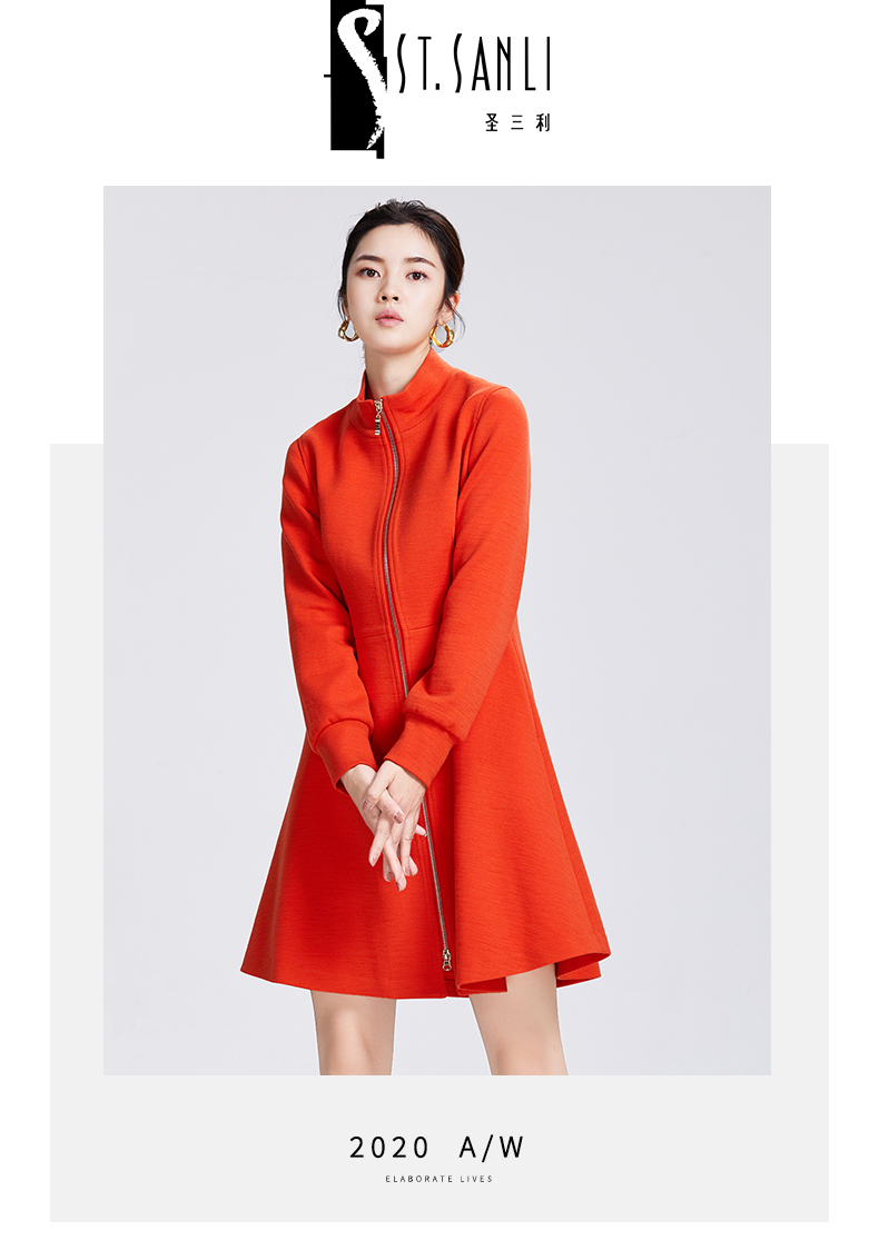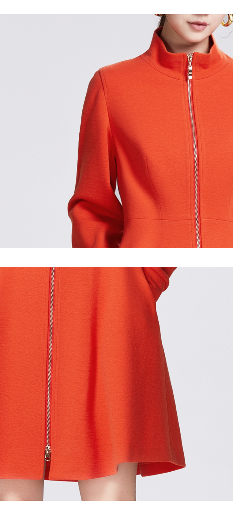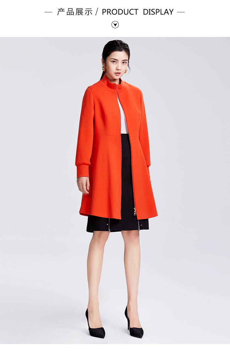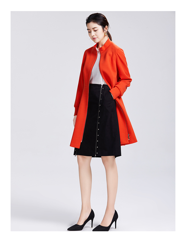 圣三利中长款伞摆羊毛针织女士风衣外套SL2031103