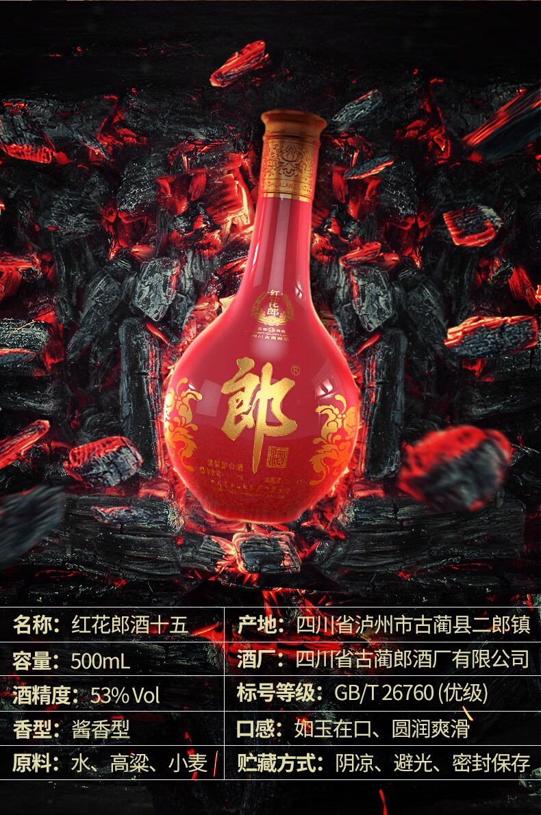 郎酒 红花郎15酱香型白酒53度500ml单瓶装