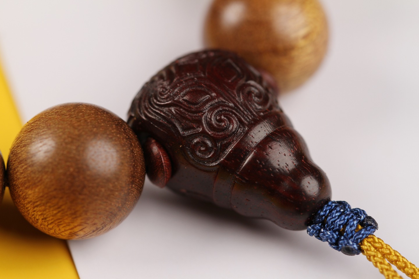 搭配:紫檀饕餮三通/紫檀碟片/紫檀南瓜珠挖/牛皮隔片复古/紫檀小葫芦
