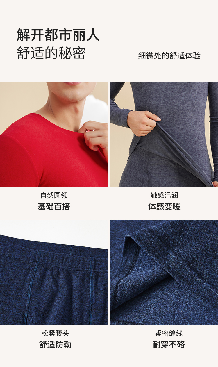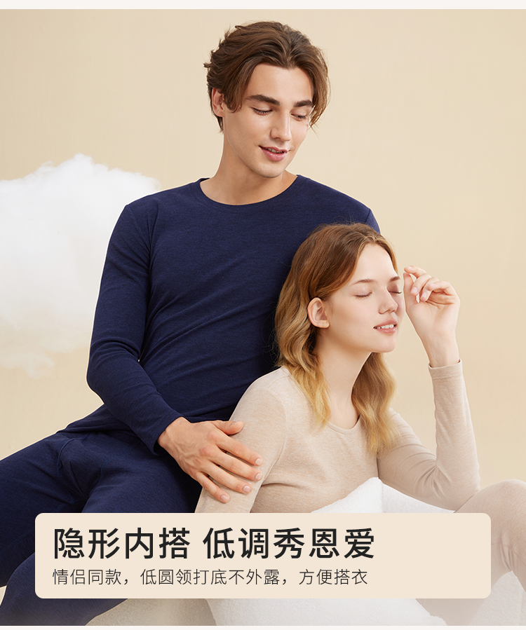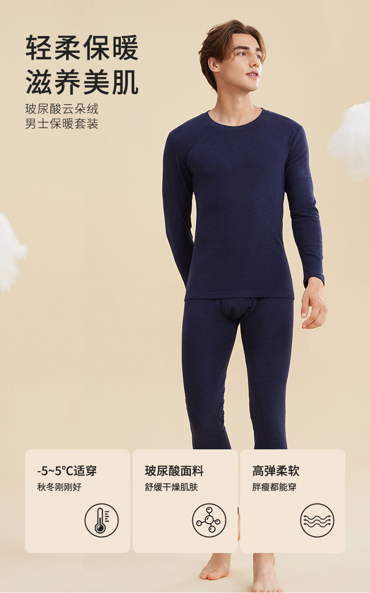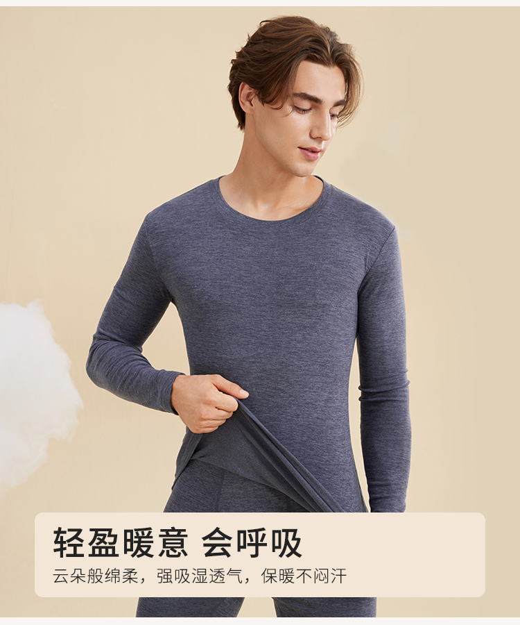 都市丽人男士特殊面料套装圆领云朵绒保暖衣4W31A2