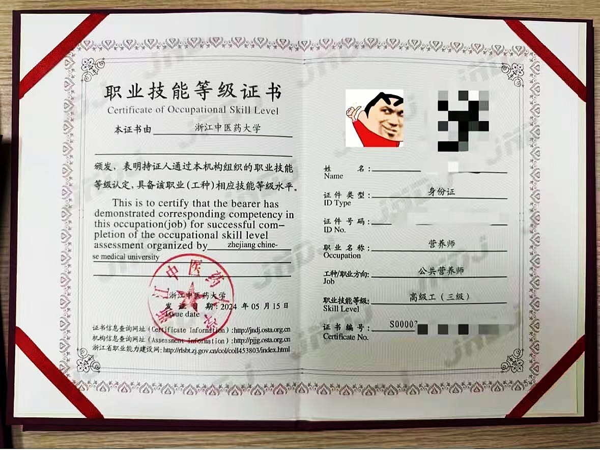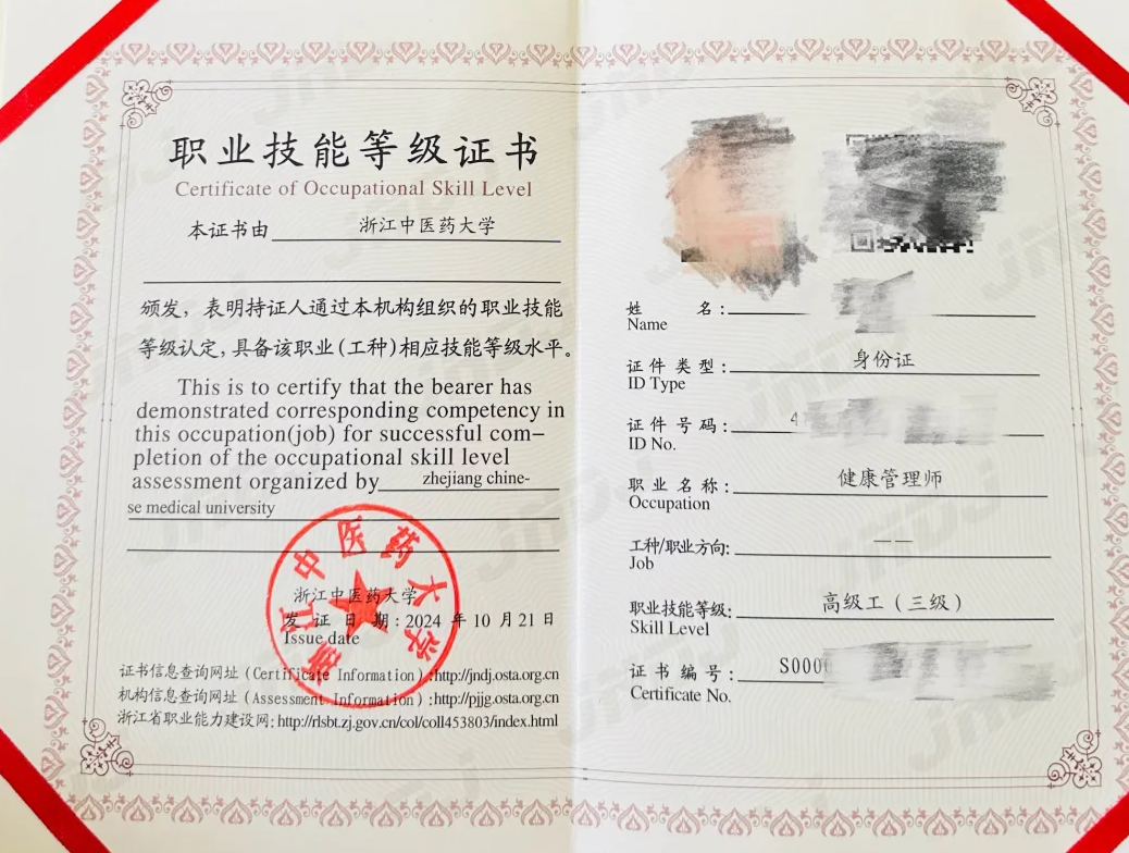 由杭州人社局监制,浙江中医药大学发证,考试考理论+实操两门,理论是考选择判断,实操发试卷笔试