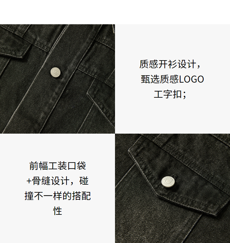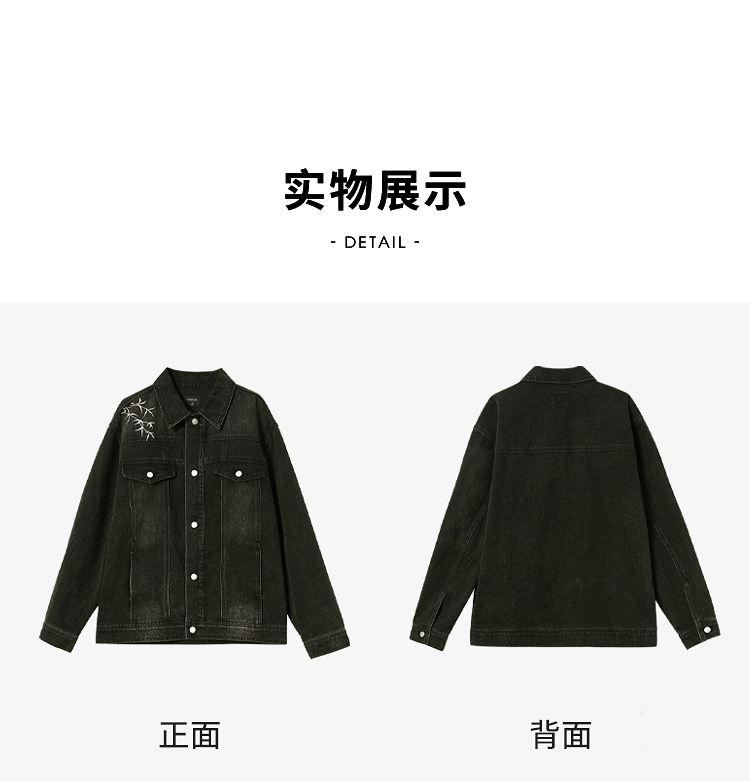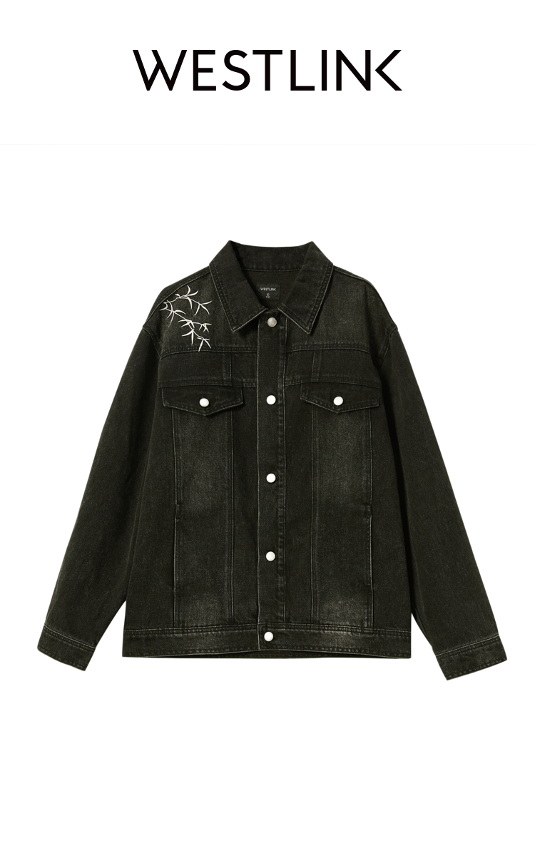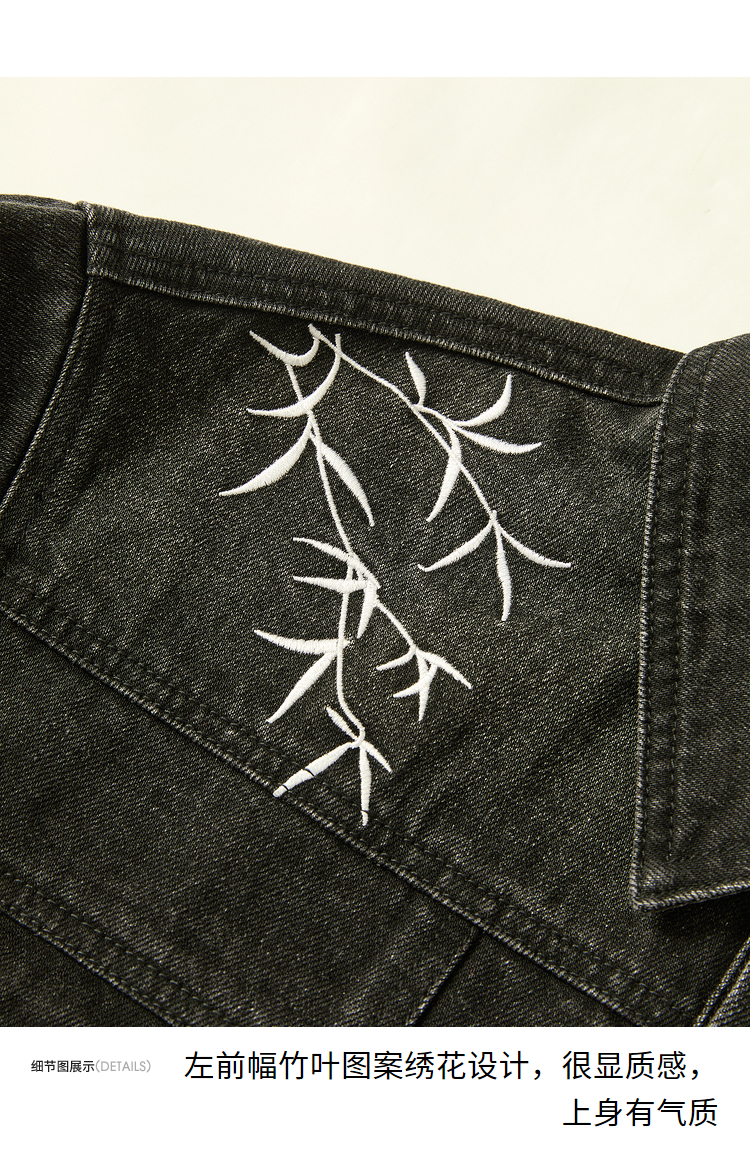 西遇黑色牛仔外套男新款新中式竹叶刺绣宽松版型夹克12945865