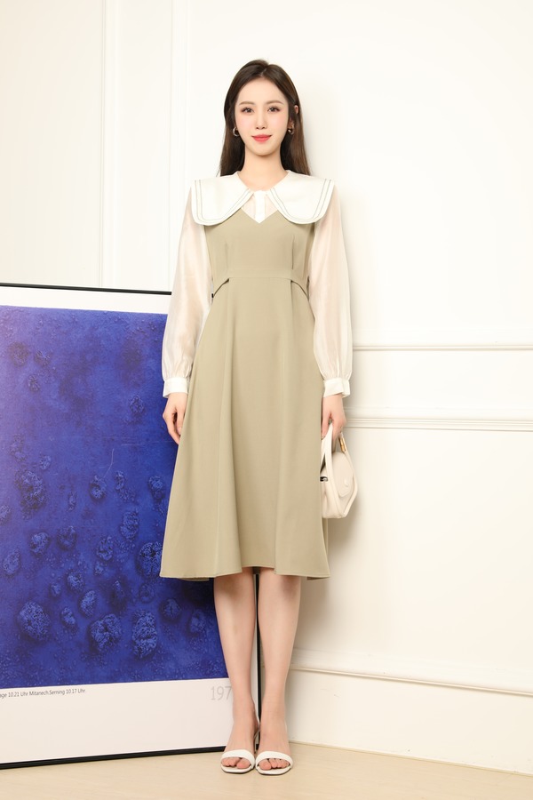 Stay2Weeks 撞色花瓣领温柔连衣裙 17868