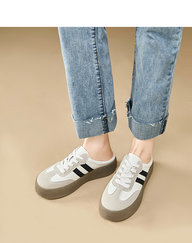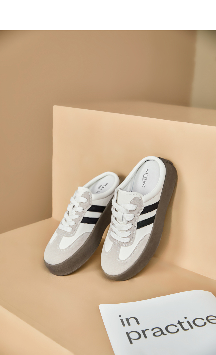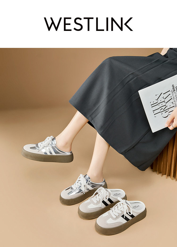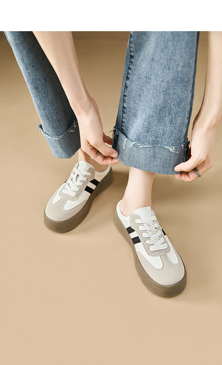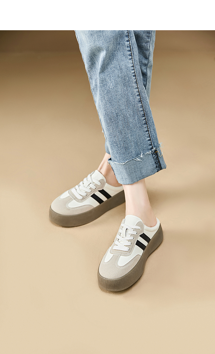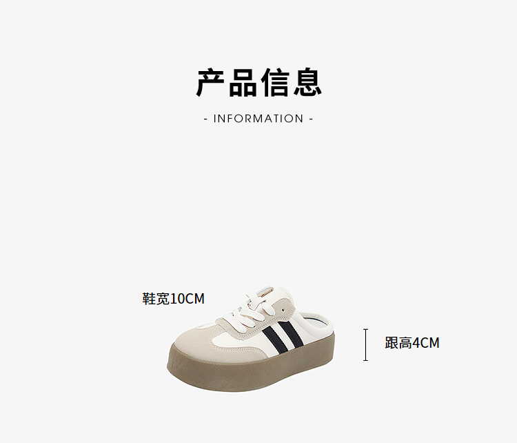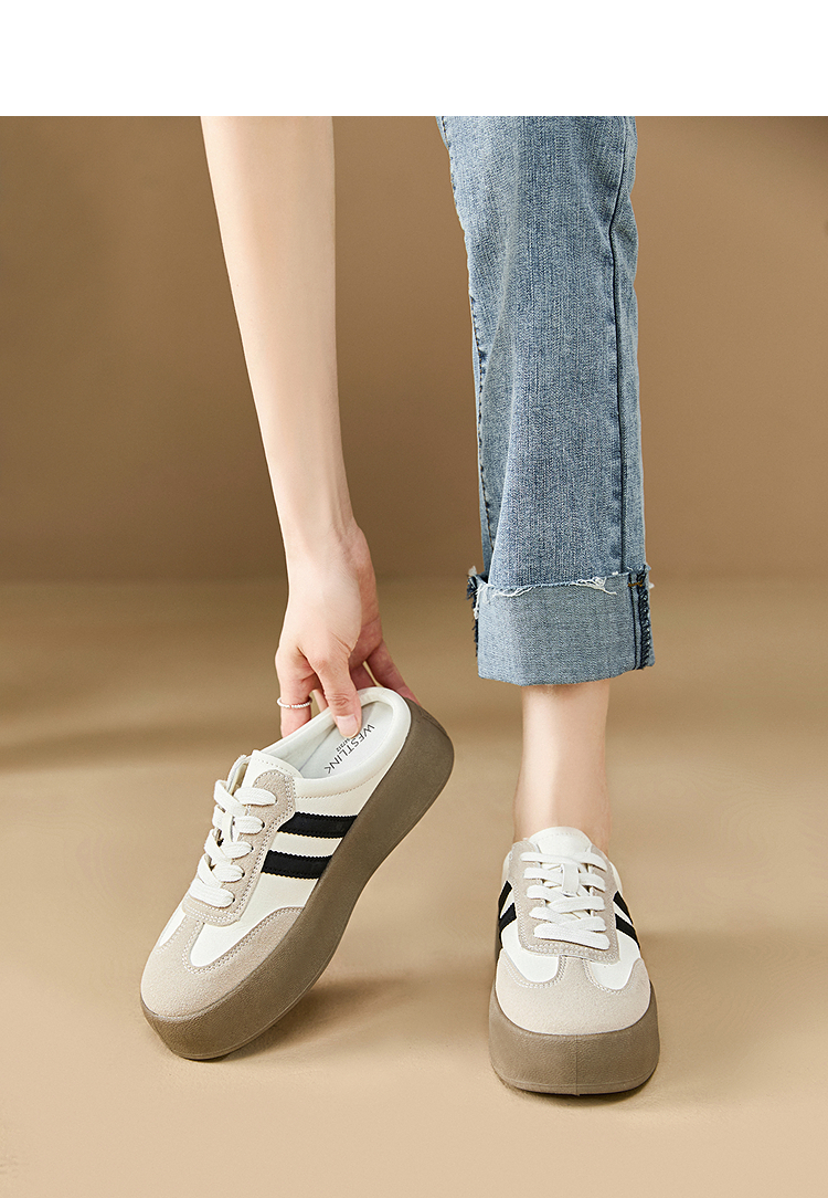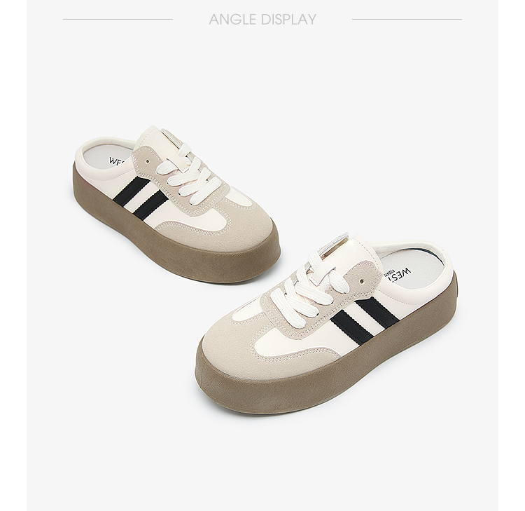【限时秒杀】西遇厚底半拖德训鞋女2026春季新款增高外穿超火一脚蹬包头小白鞋V0066320