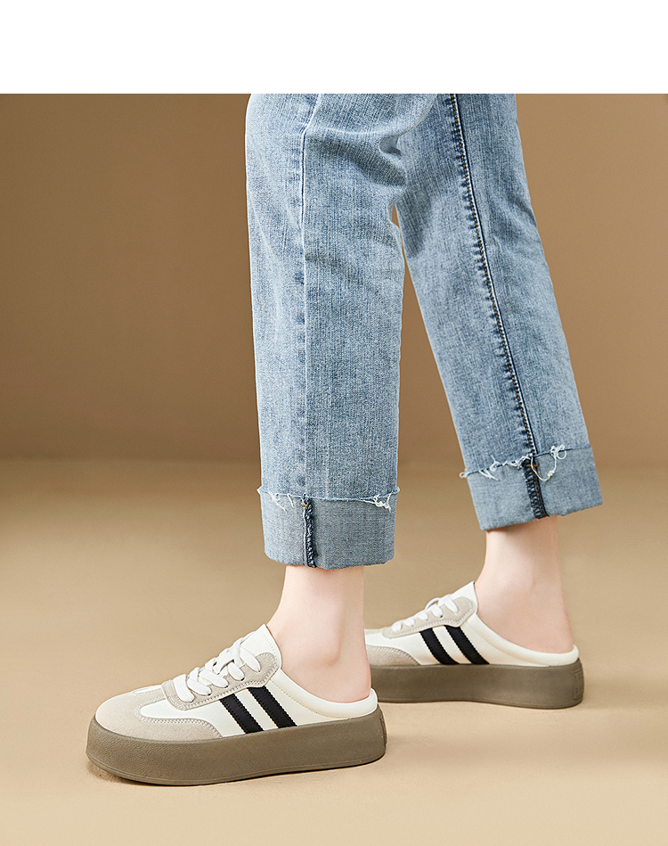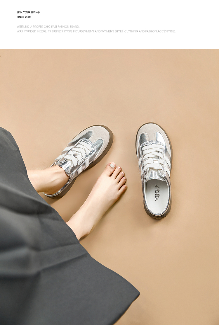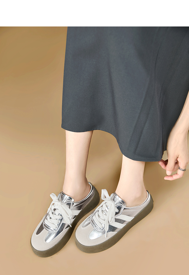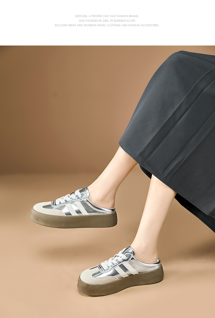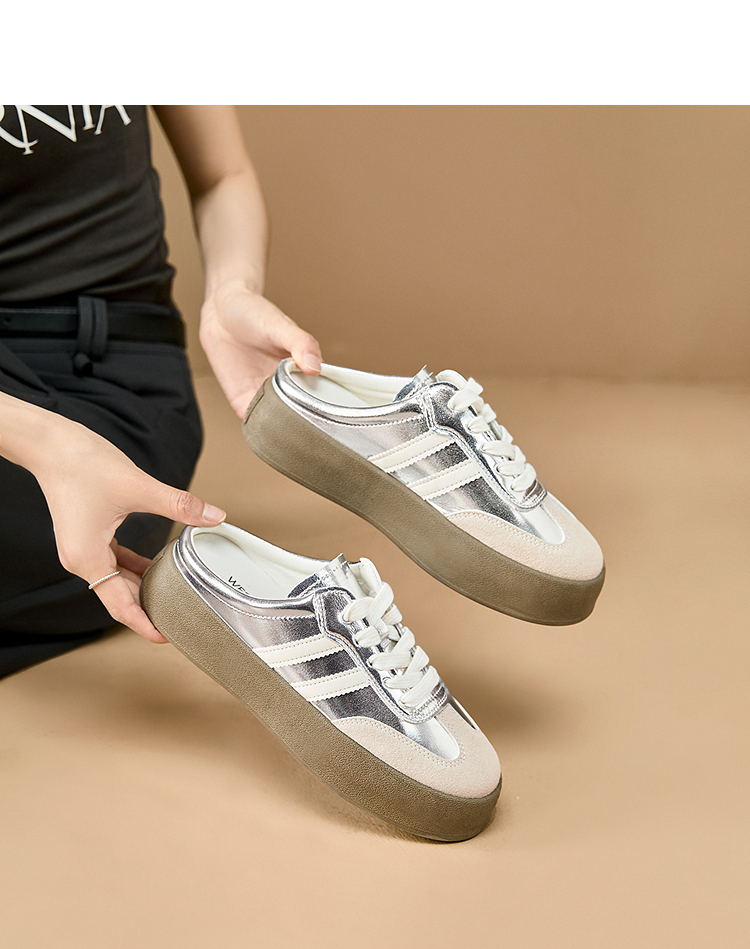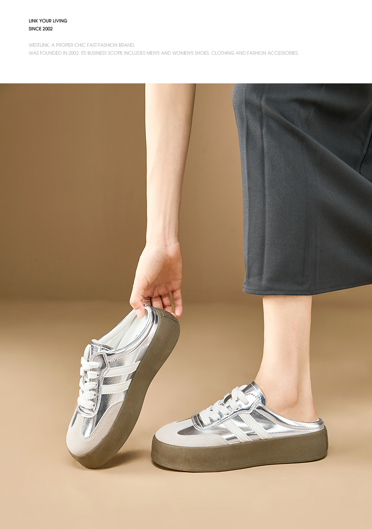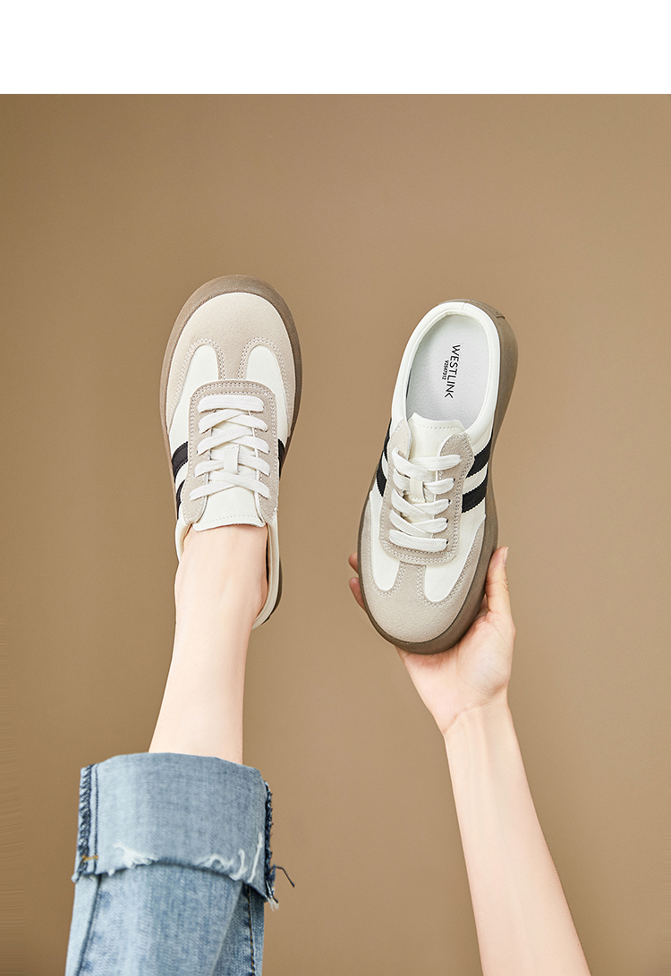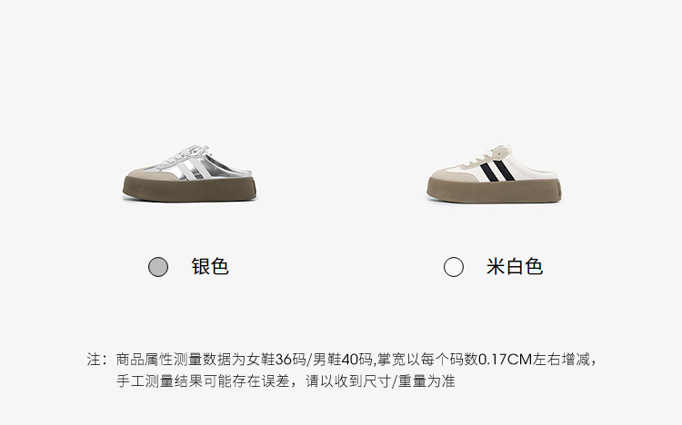 【限时秒杀】西遇厚底半拖德训鞋女2026春季新款增高外穿超火一脚蹬包头小白鞋V0066320