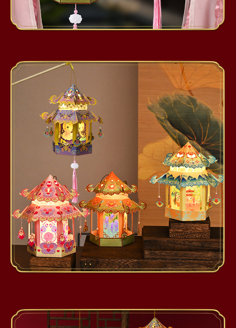 【灯笼祝福,手作圆满】灯笼里有五颜六色的错位花纹,童趣与古风相见;亲手制作,带你重温传统文化;陪伴儿童度过别样中秋佳节;傍晚亮起来,为你点亮幸福!