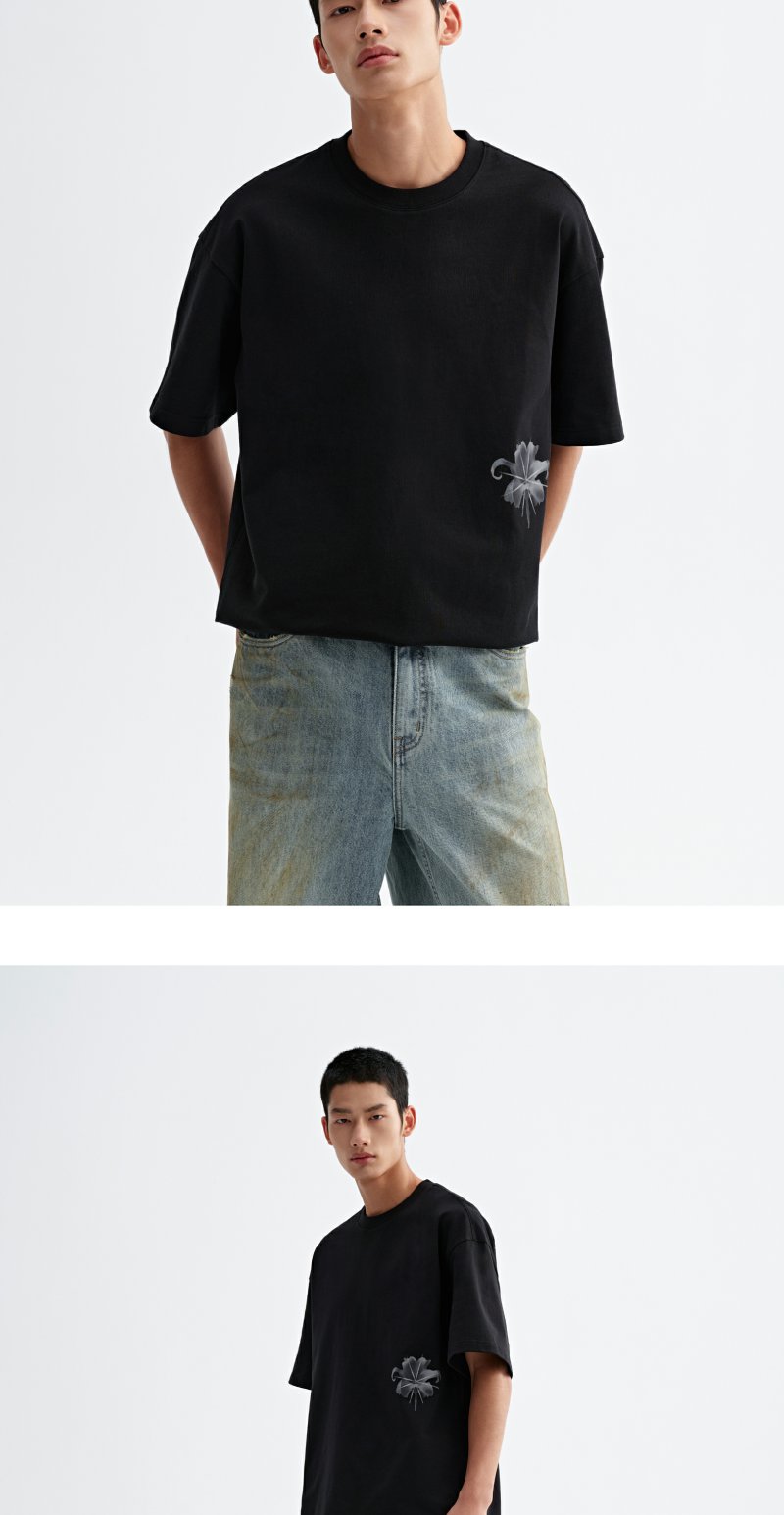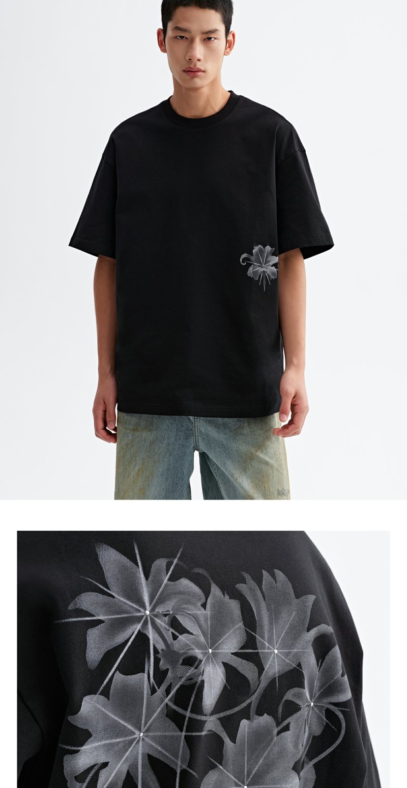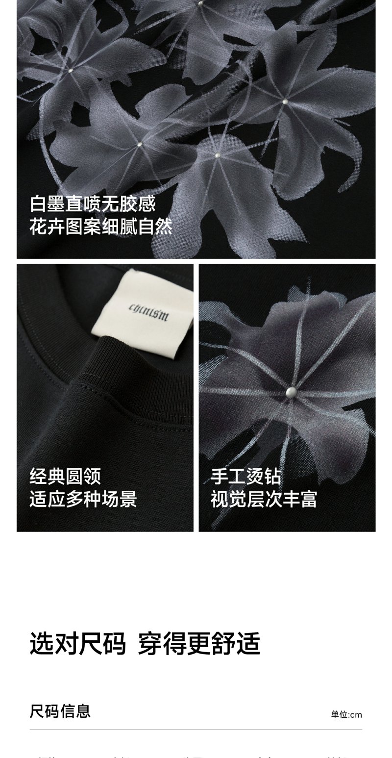 CHINISM赤尘 手工烫钻印花短袖T恤男2025夏季黑色宽松五分袖上衣