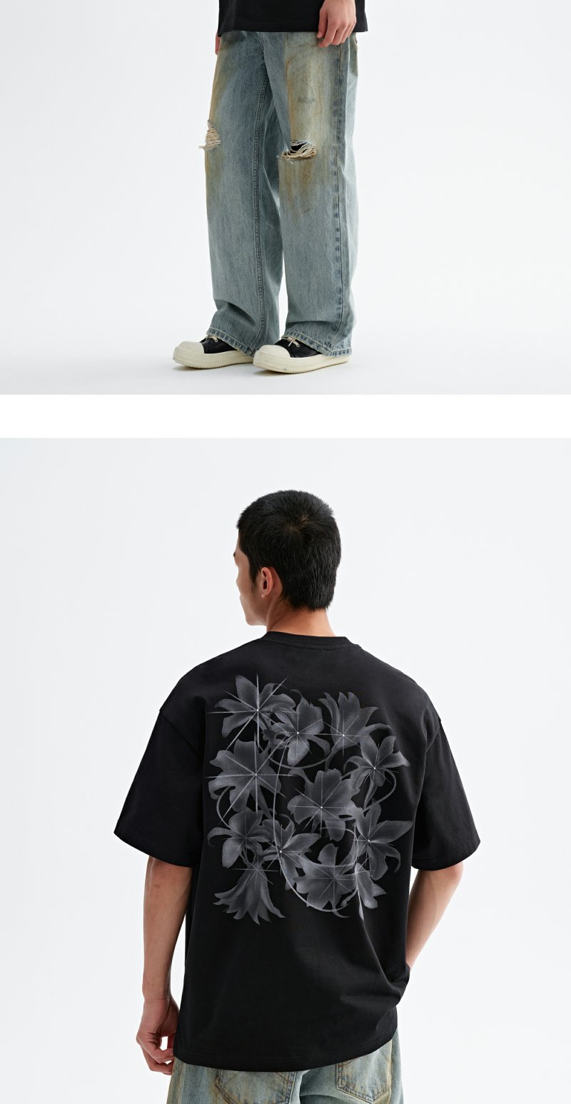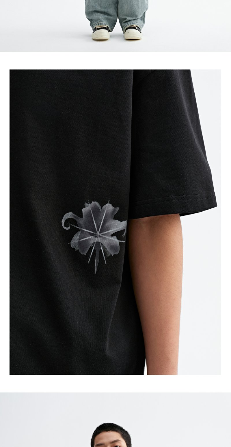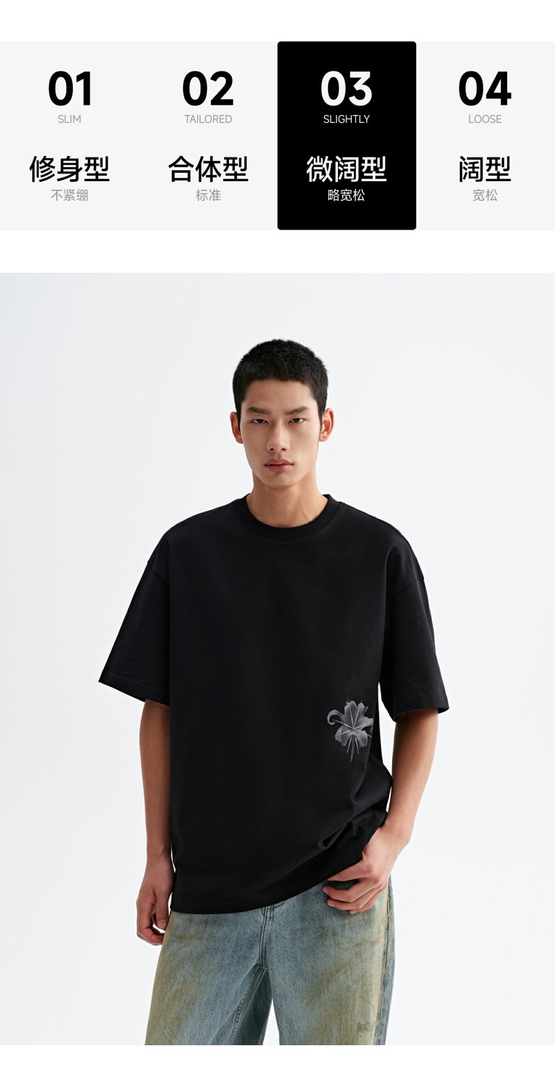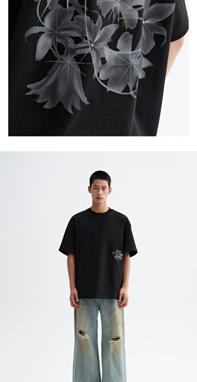 CHINISM赤尘 手工烫钻印花短袖T恤男2025夏季黑色宽松五分袖上衣