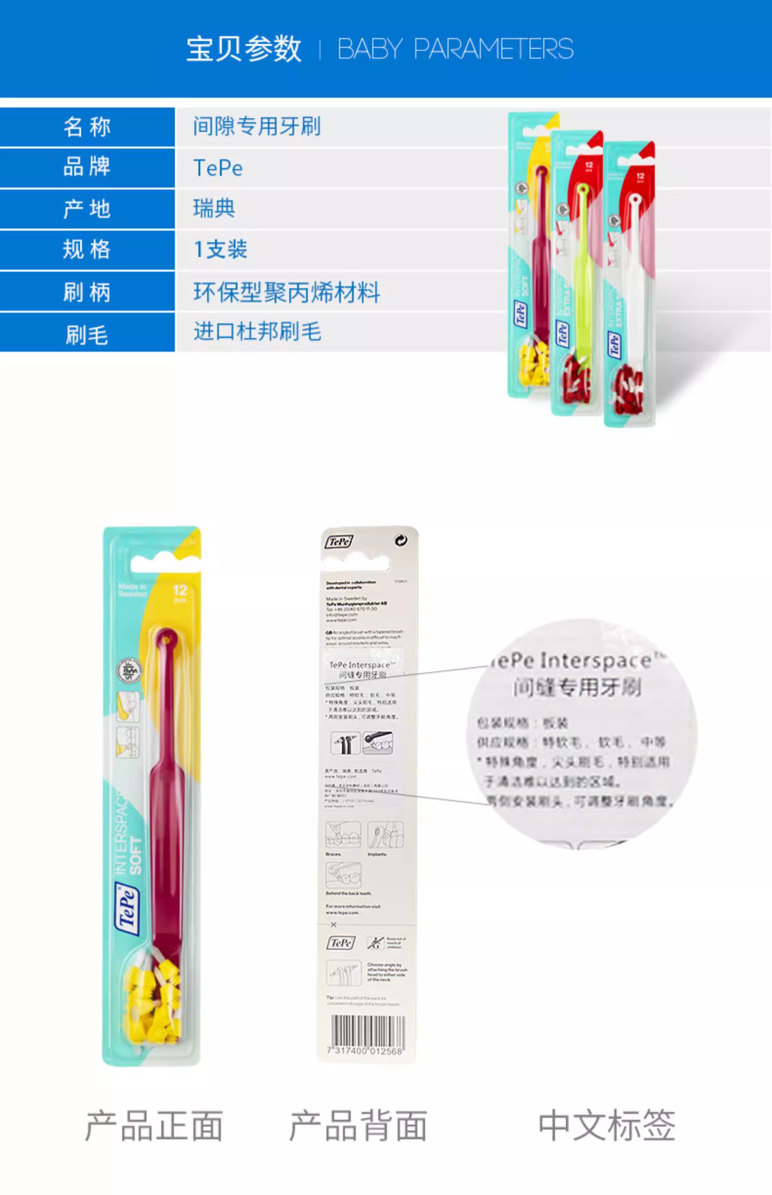瑞典tepe间隙清洁牙刷(中毛/12个替换头)