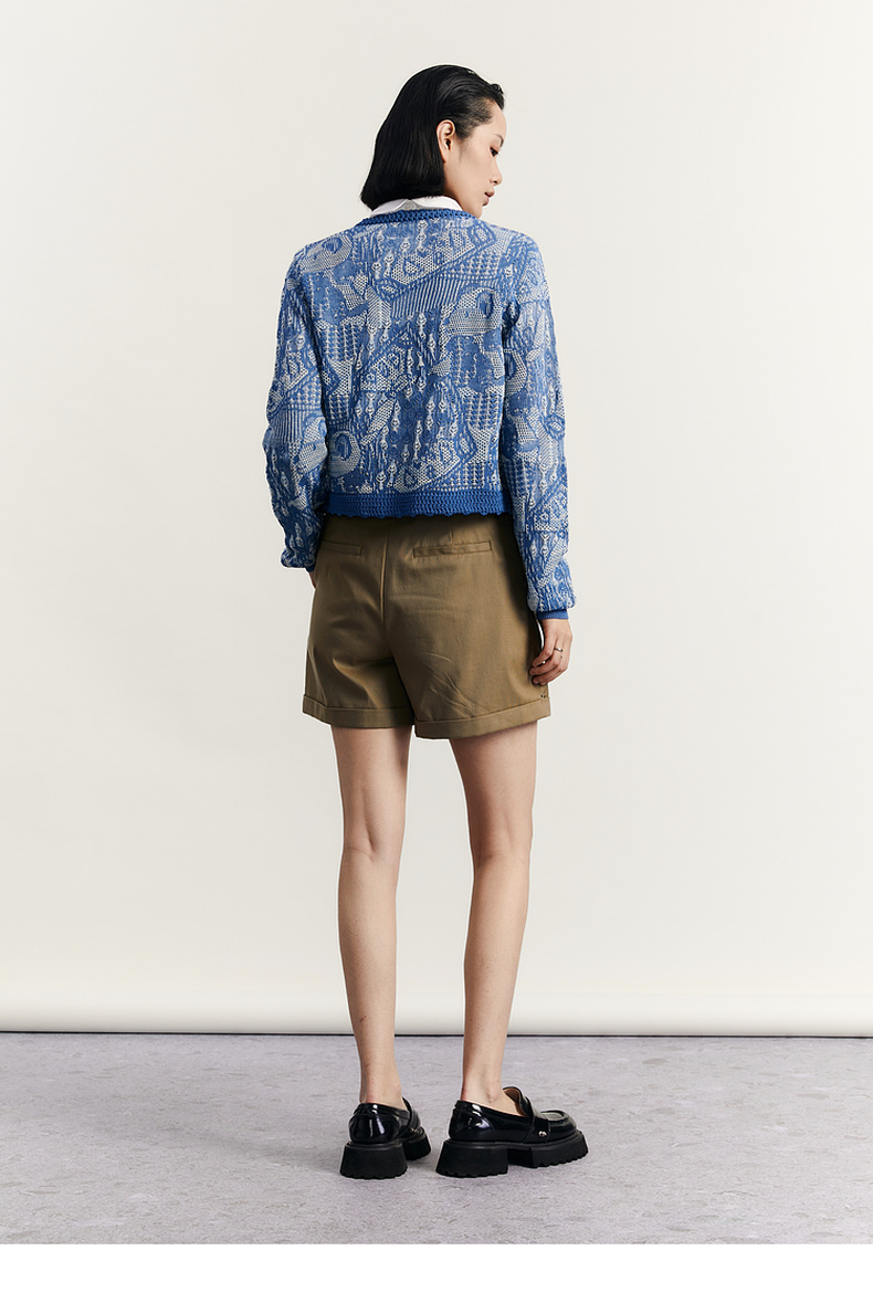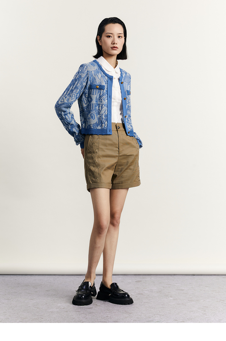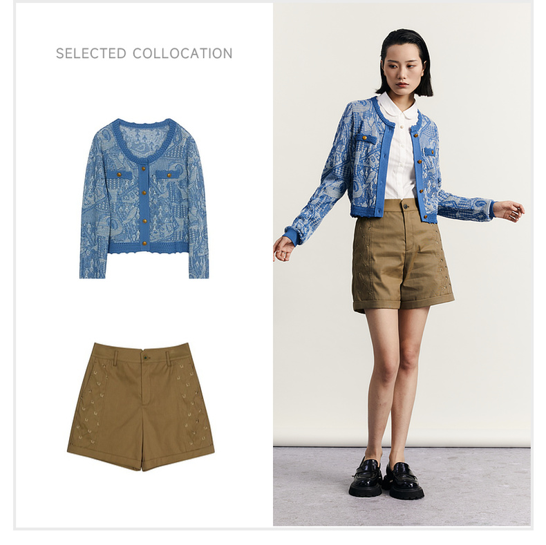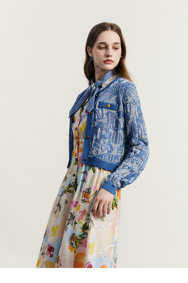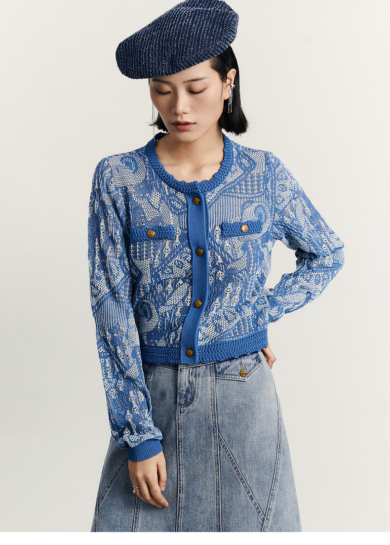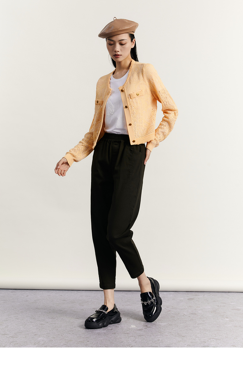 谜底针织开衫女2023秋季新款小香风圆领复古针织衫长袖233MZ1252